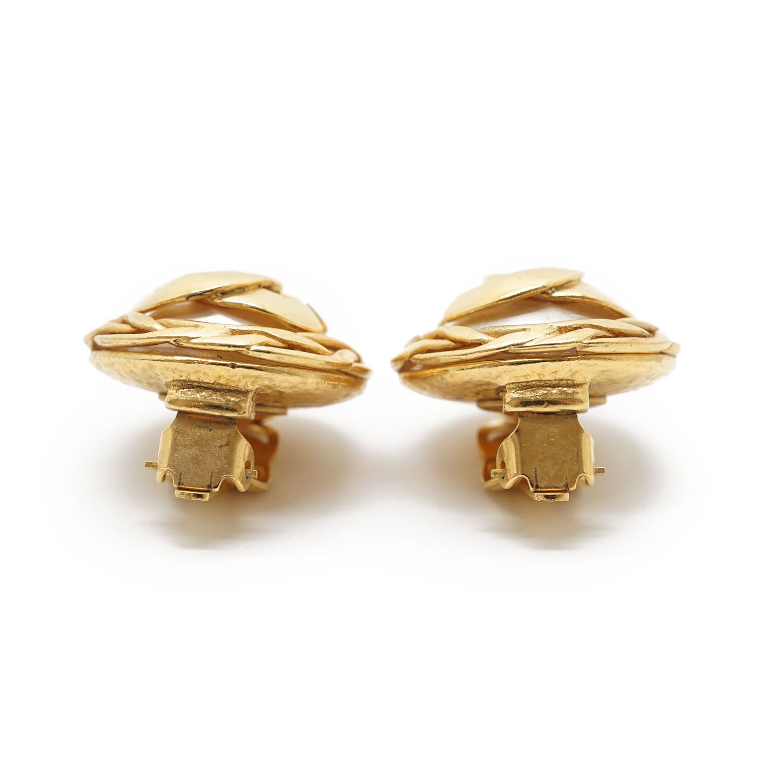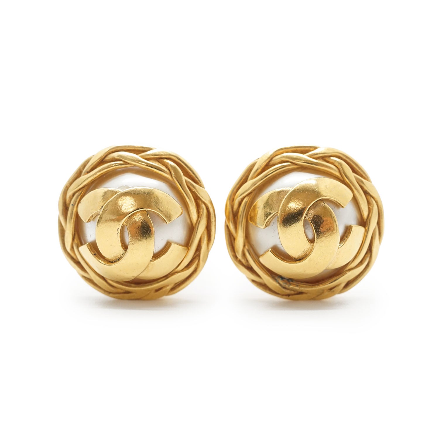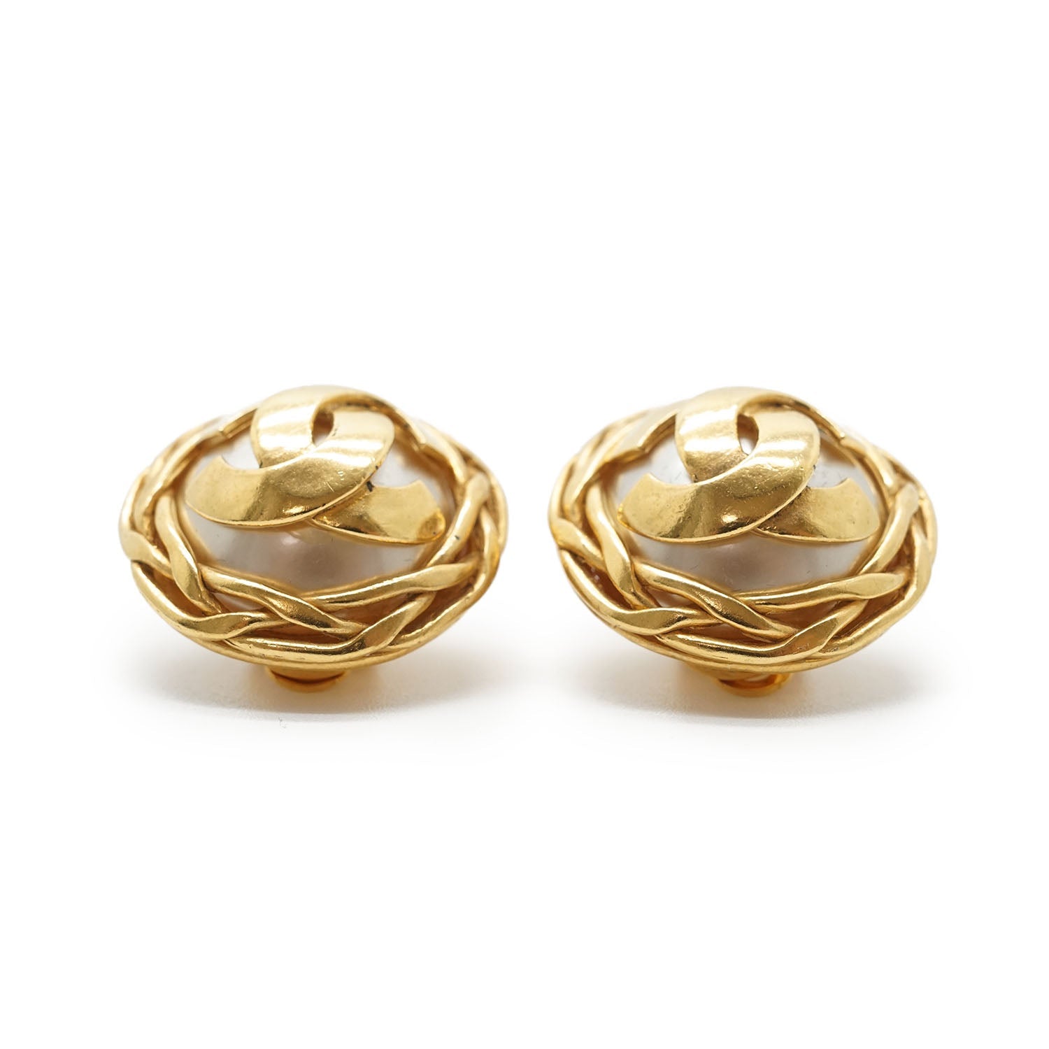 Chanel CC Logo Artificial Pearl Round Clip-On Earrings GP