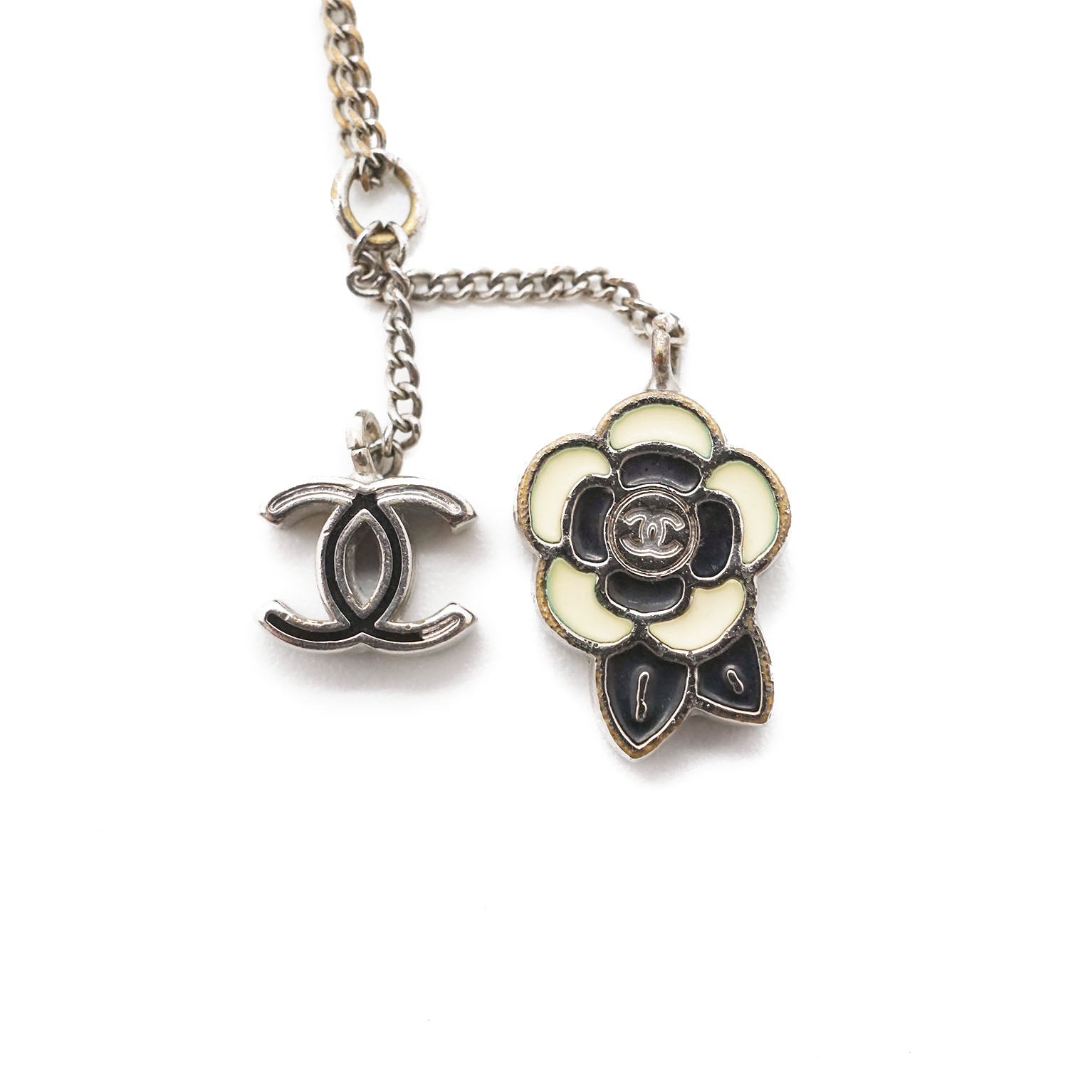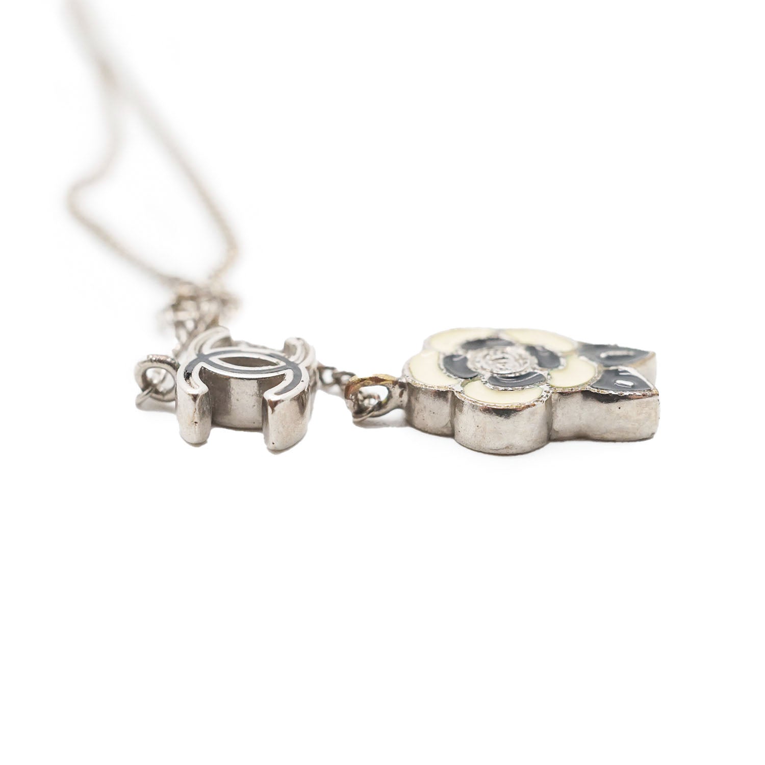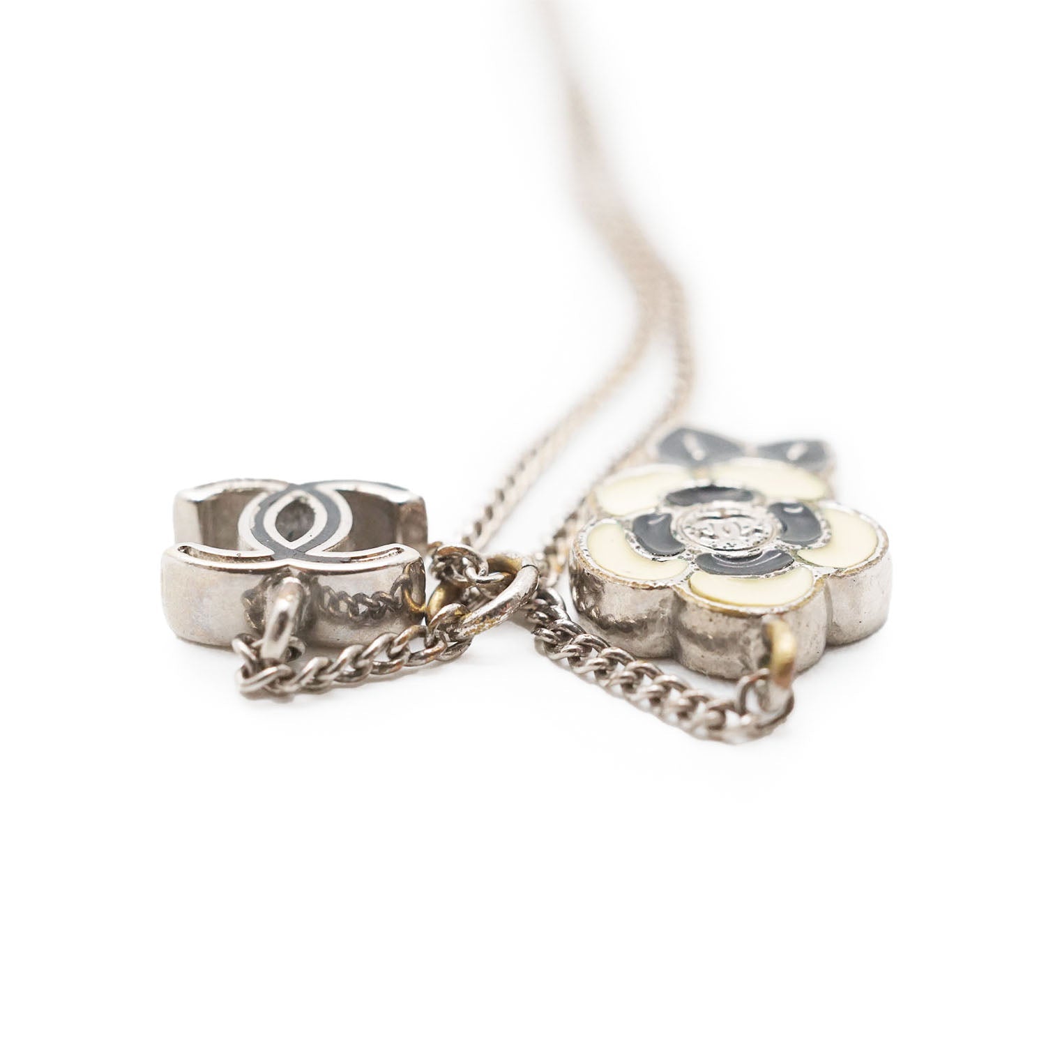 CC Logo Camellia Pendant Necklace Silver MetalDepth: 0.2cmHeight: 22cmWidth: 1cmDiscoloration: Some tarnish overallWorn: Minor signs of wearSerial code: 05PSKU: 7060129