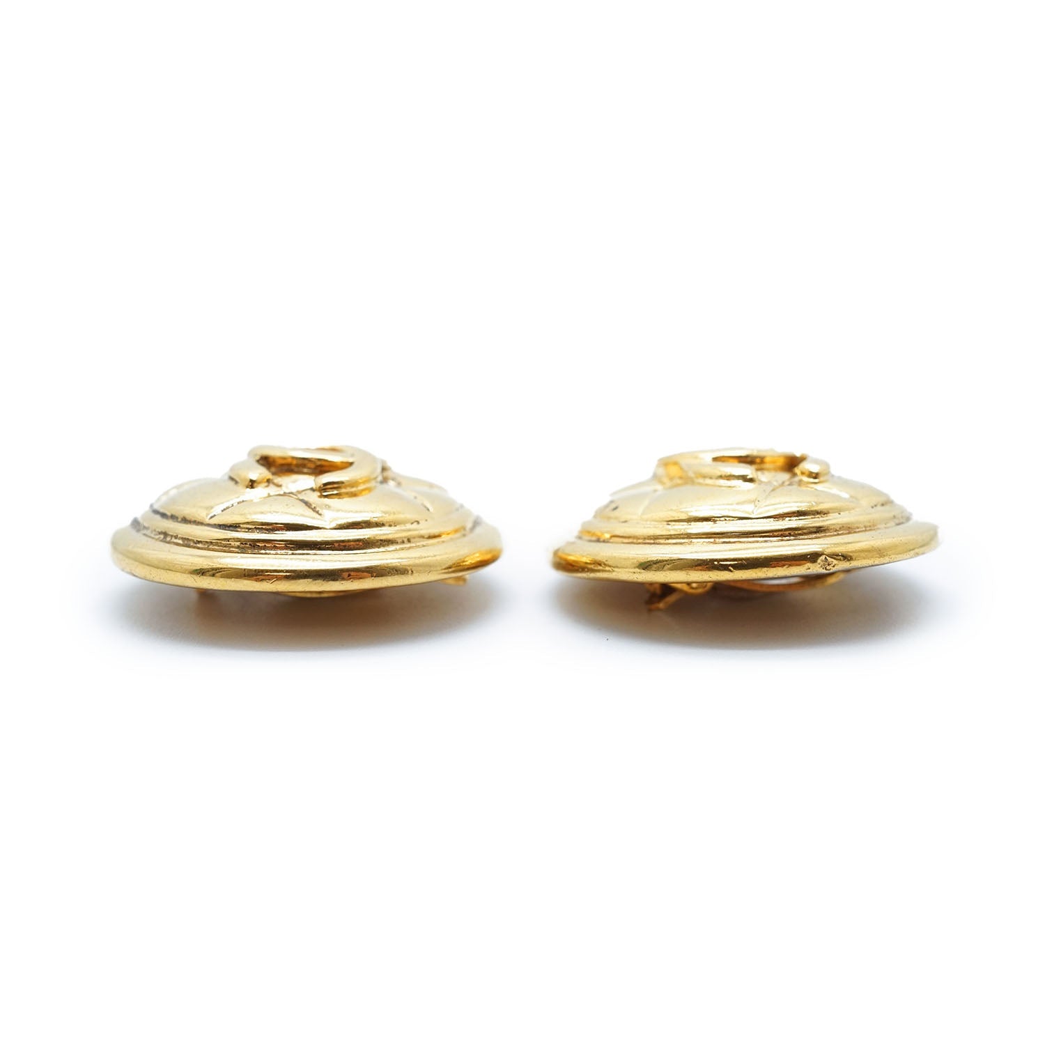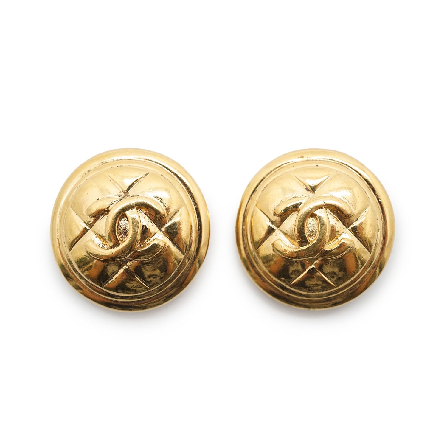 CC Logo Matelasse Button Clip Earrings GP Gold BrassDepth: 0.8cmHeight: 2.8cmWidth: 2.8cmDiscoloration: Some tarnish overallWorn: Minor signs of wearComments: The clip of one of the earrings is not firmly secured at its baseSerial code: 2389SKU: 7060168