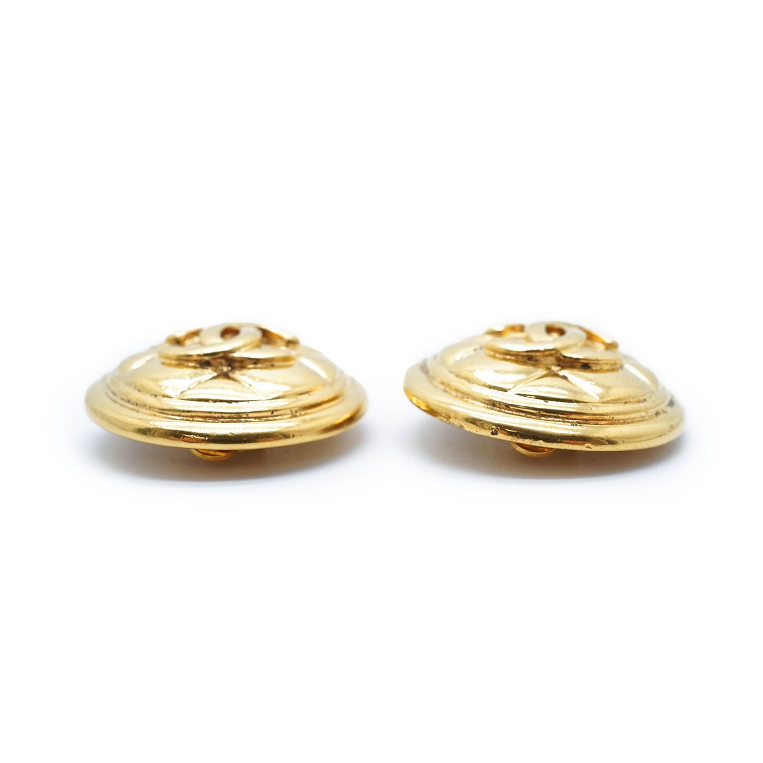 Chanel CC Logo Matelasse Button Clip Earrings GP