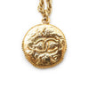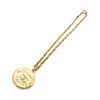 CC Logo Round Pendant Chain Necklace Gold BrassDepth: 0.1cmHeight: 25cmWidth: 3cmDiscoloration: Some tarnish on the chain, clasp and logo plate, minor tarnish on the back of the pendantScratch: Some scratches on the logo plateInclude: Jewelry box (cannot be entirely closed)Serial code: 93P A02448 X01060