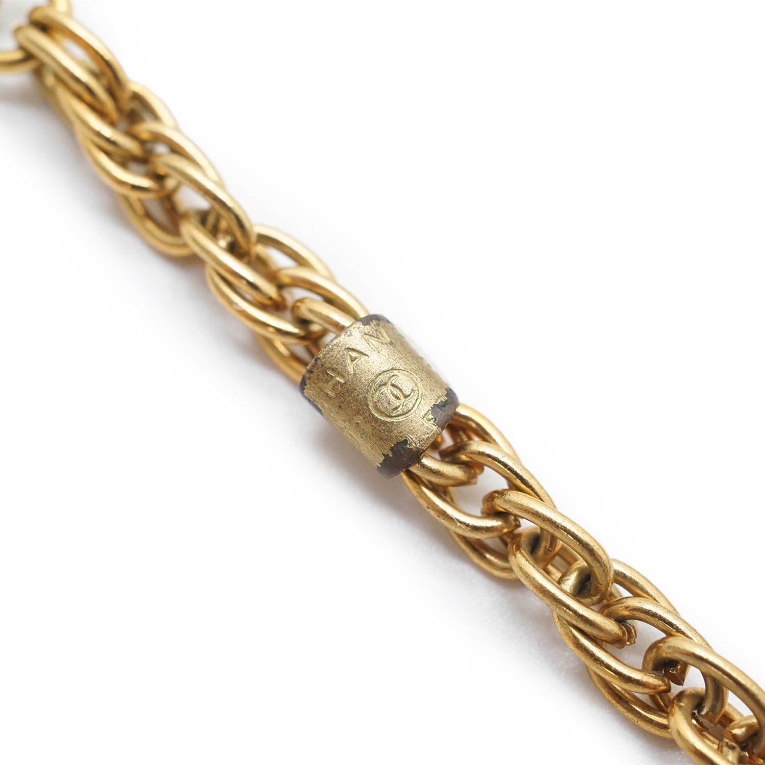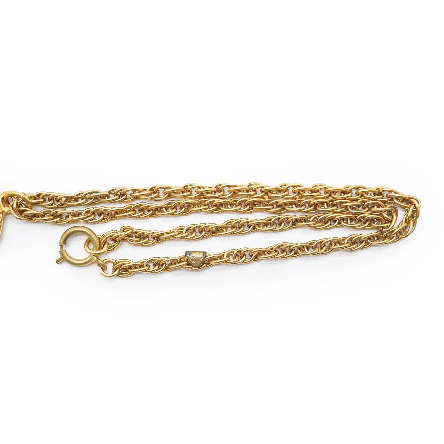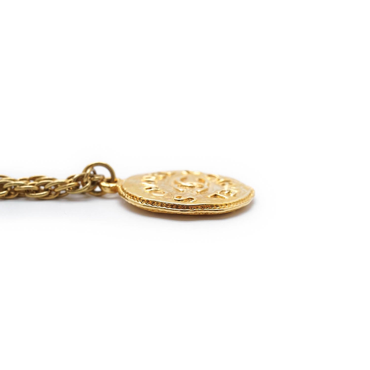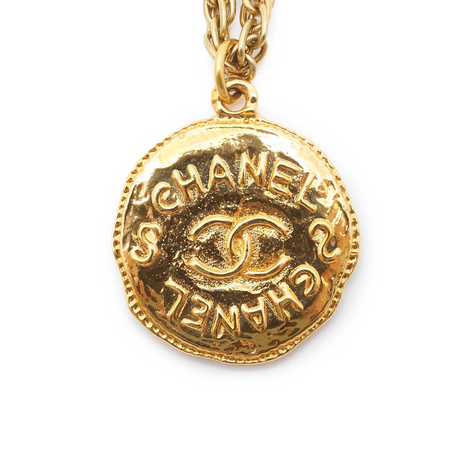CC Logo Round Pendant Chain Necklace Gold BrassDepth: 0.1cmHeight: 25cmWidth: 3cmDiscoloration: Some tarnish on the chain, clasp and logo plate, minor tarnish on the back of the pendantScratch: Some scratches on the logo plateWorn: Some signs of wear on the chainInclude: Jewelry box (cannot be entirely closed)Serial code: 93P A02448 X01060SKU: 7050143