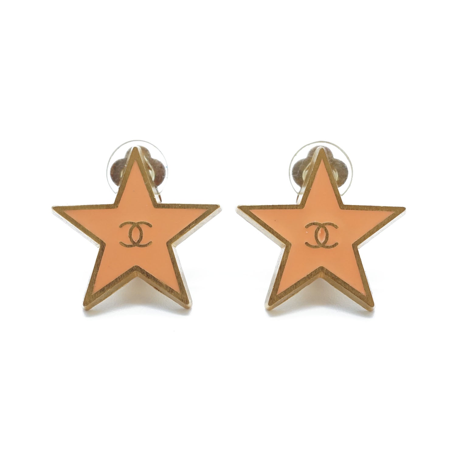 CC Logo Star Clip-On Earrings GP Salmon pink BrassDepth: 0.2cmHeight: 2cmWidth: 2.1cmDiscoloration: Some tarnish on the back of both earringsWorn: Some signs of wear on the back of both earringsSerial code: 01PSKU: 7070115