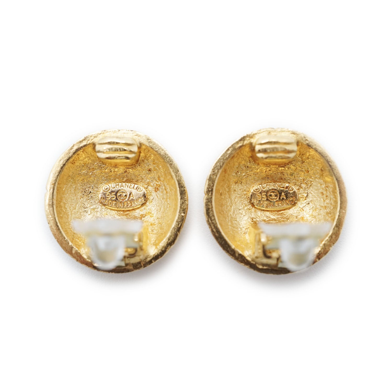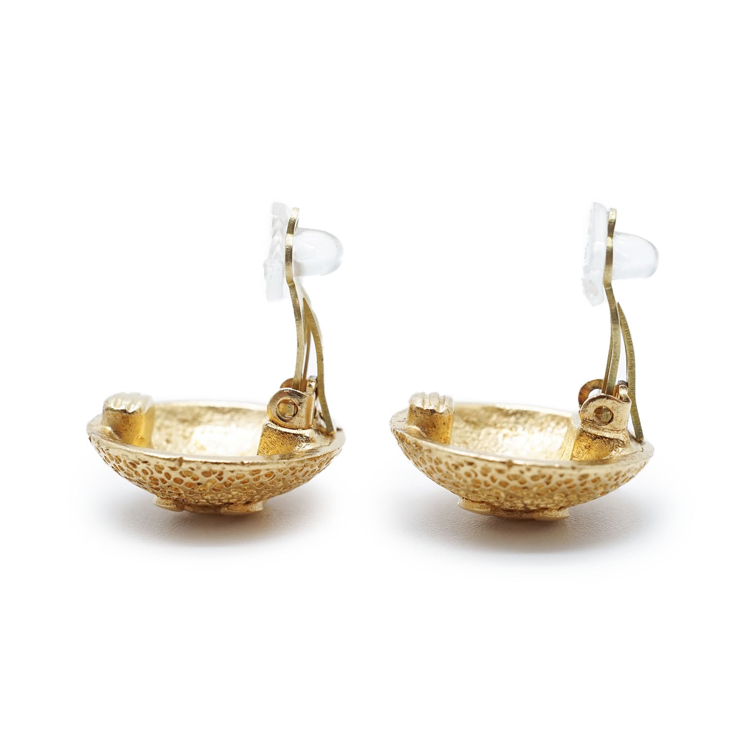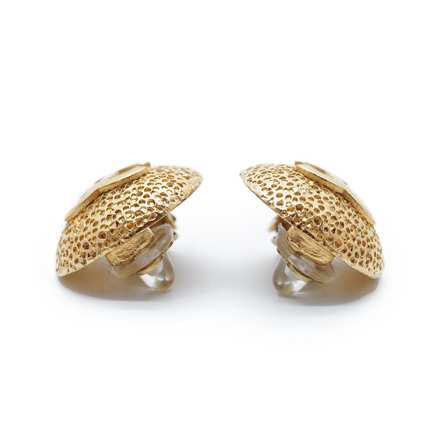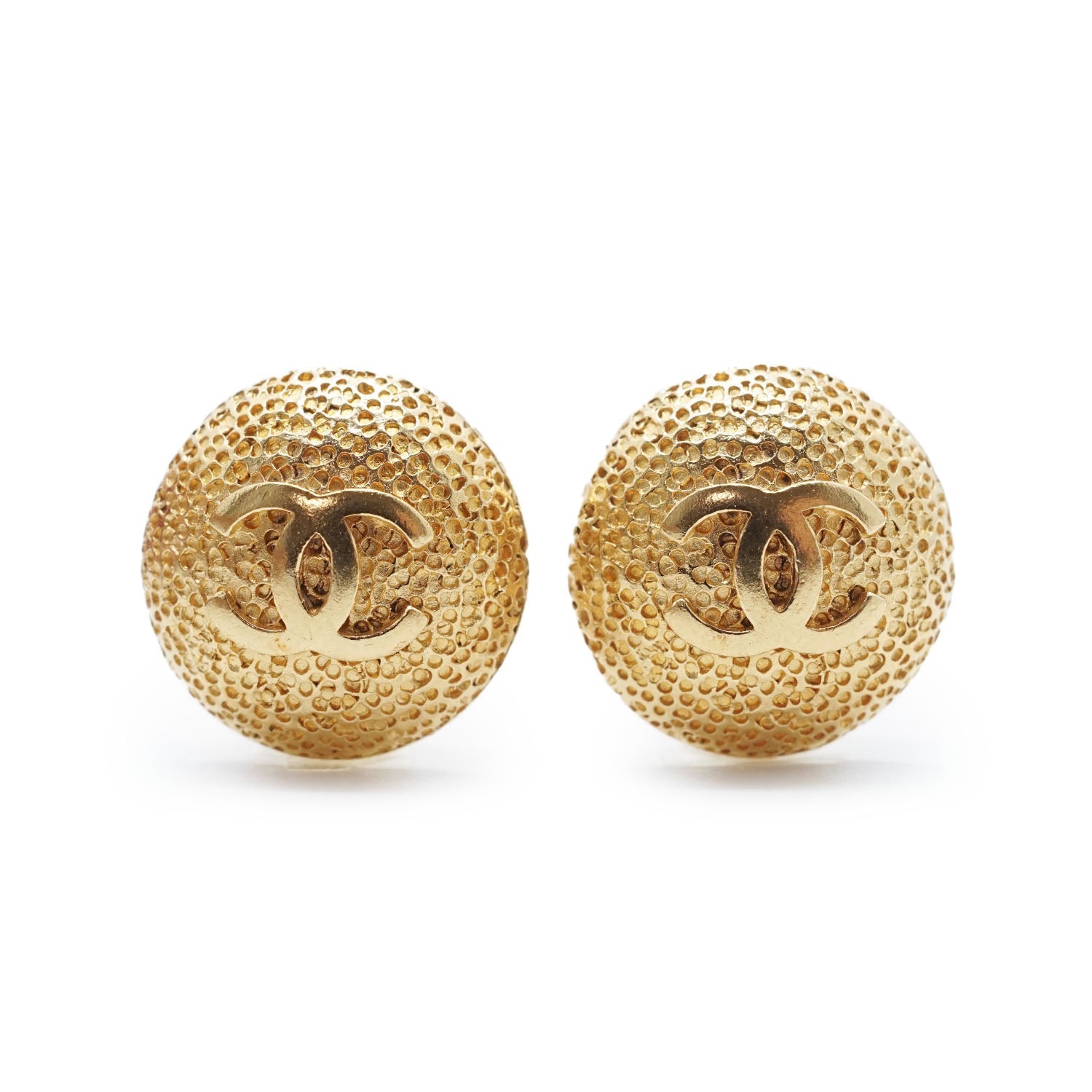 Chanel CC Logo Textured Dome Round Clip-On Earrings GP