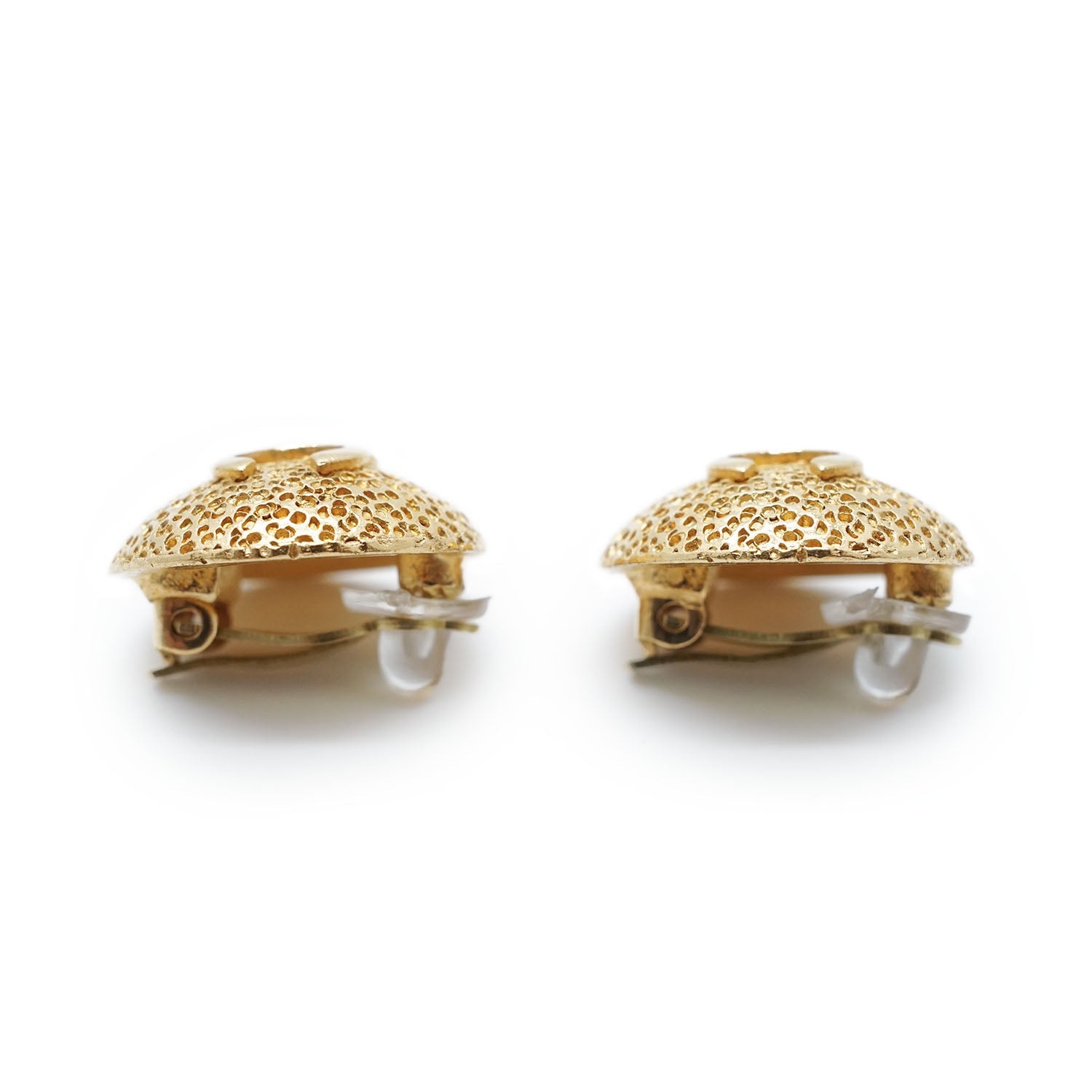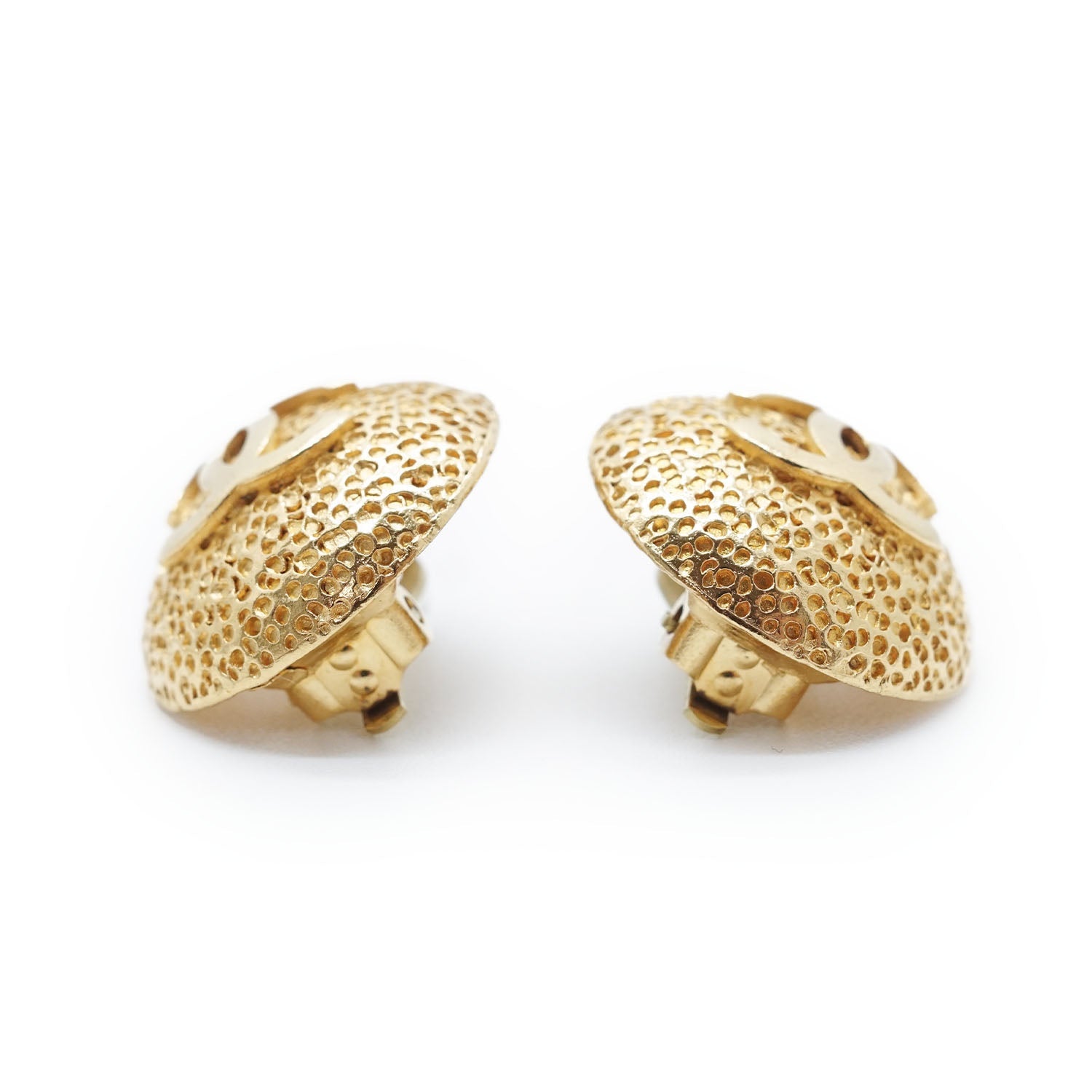 CC Logo Textured Dome Round Clip-On Earrings GP Gold BrassDepth: 0.7cmHeight: 1.7cmWidth: 1.7cmDiscoloration: Slight tarnish on the back of both earringsWorn: Minimal signs of wearComments: One clip pad is slightly damagedSerial code: 95ASKU: 7070126