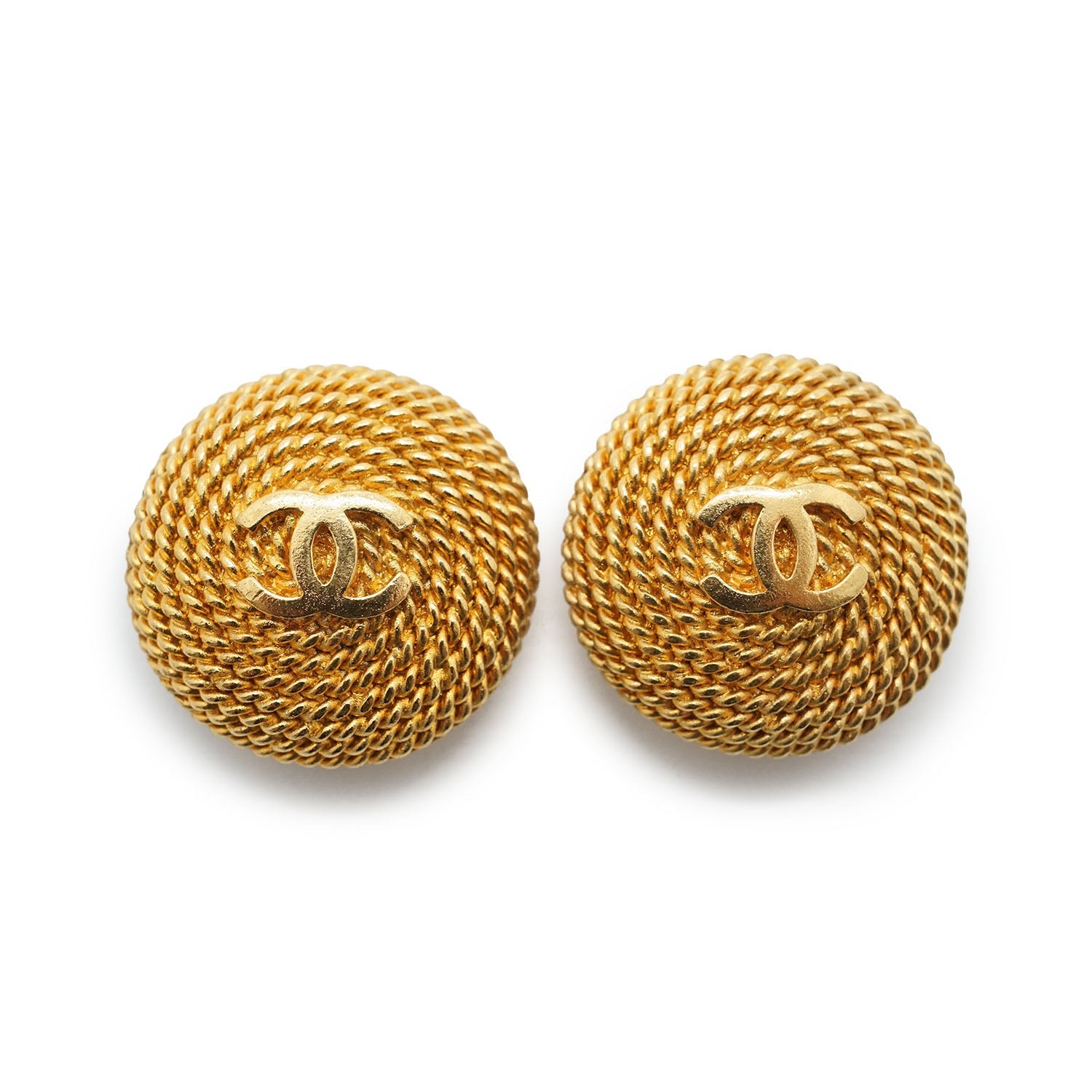 Chanel CC Logo Twisted Rope Round Clip-On Earrings GP