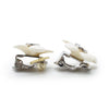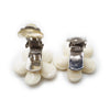CC Logo White Flowers Clip Earrings White MetalDepth: 0.4cmHeight: 1.7cmWidth: 1.7cmStain: Minor stains/discoloration on the back of both earringsDiscoloration: Some metal tarnishingMissing: Earring pad missing on the clasp of one of the earringsComments: The clasp missing the earring pad is slightly looseSerial code: 05P