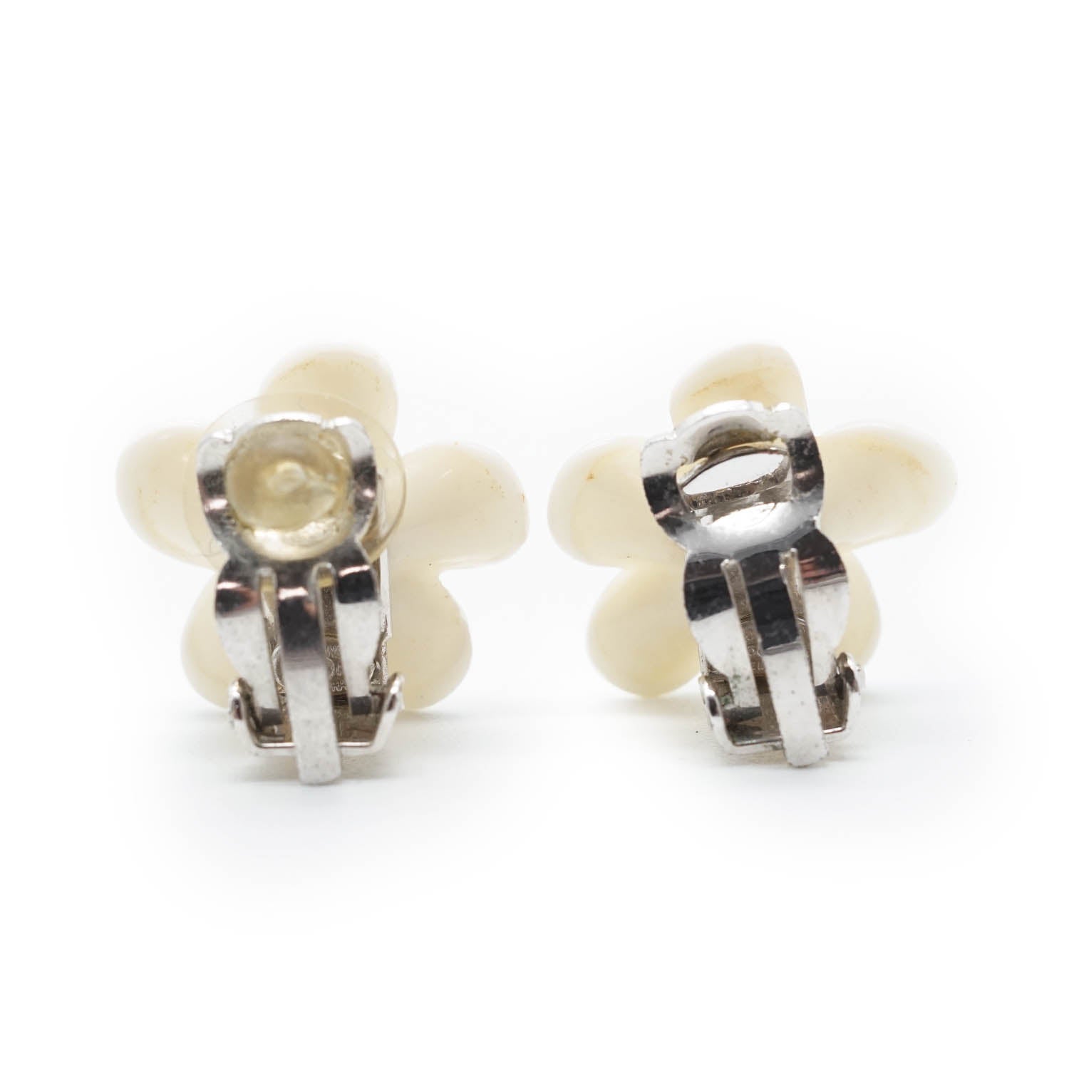 Chanel CC Logo White Flowers Clip Earrings
