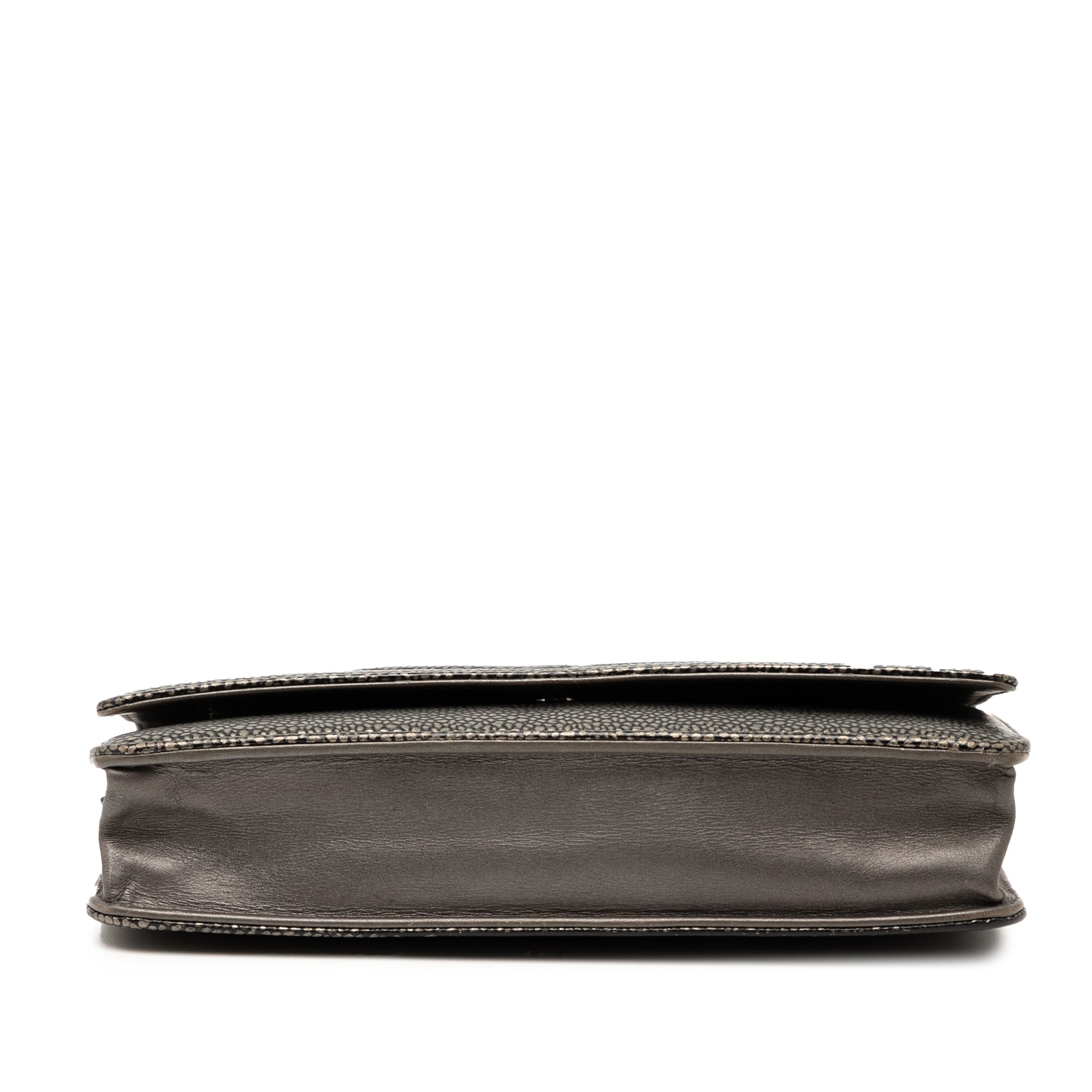 This wallet on chain features a caviar leather body, a silver-tone leather woven chain link strap, a front flap with snap button closure, an interior zip compartment, and interior zip and slip pockets. Inclusion: Dust bag. Retail Price: 3320.00