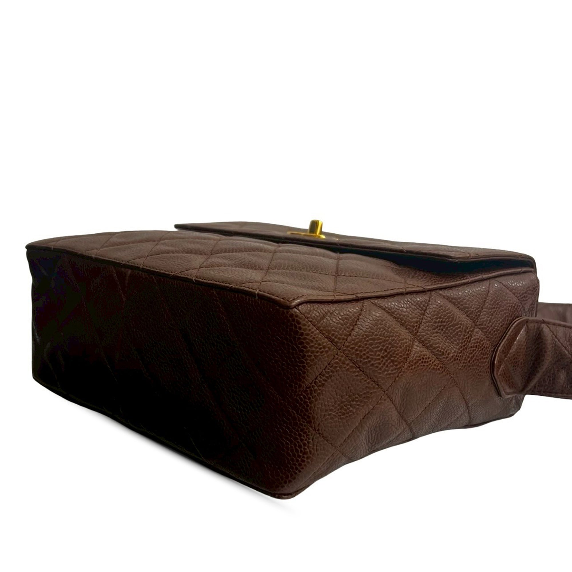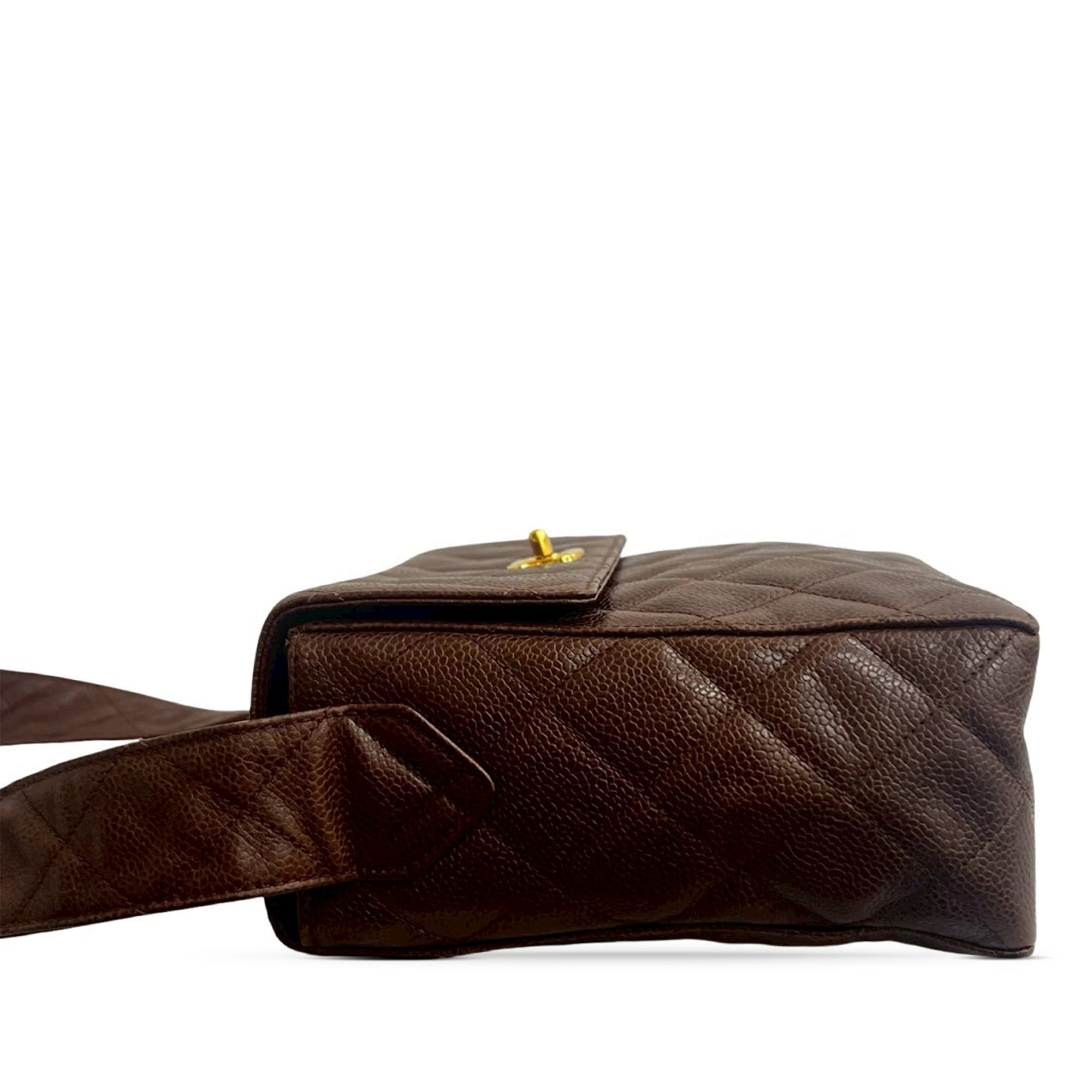 This crossbody bag features a quilted caviar leather body, a flat leather strap, a flap with twist lock closure, an exterior back slip pocket, interior zip and slip pockets, and an interior mirror. Inclusion: authenticity card. Retail Price: 3750.00