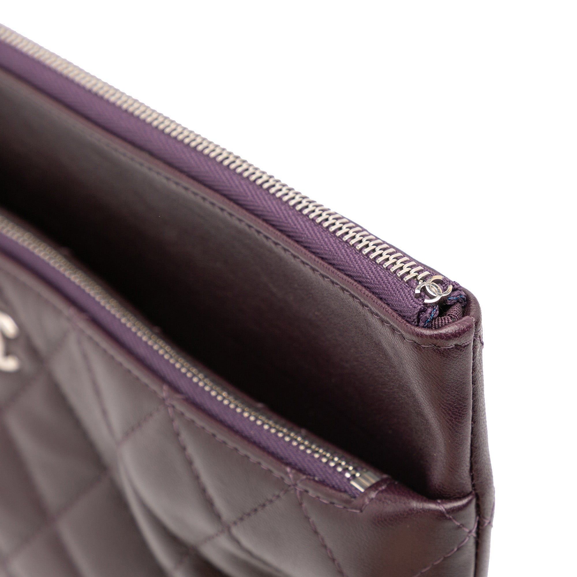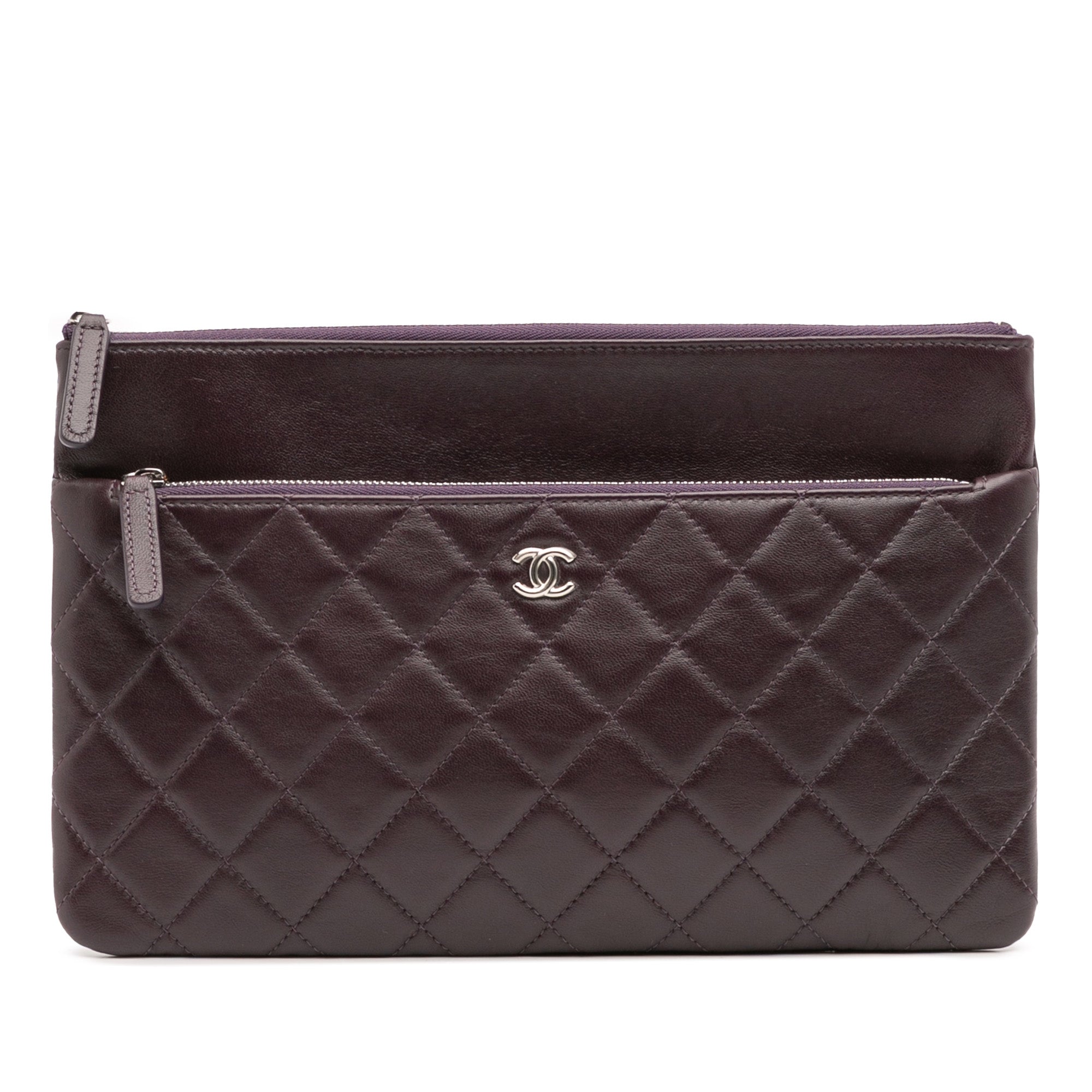 Chanel CC Quilted Lambskin Double Zip Clutch