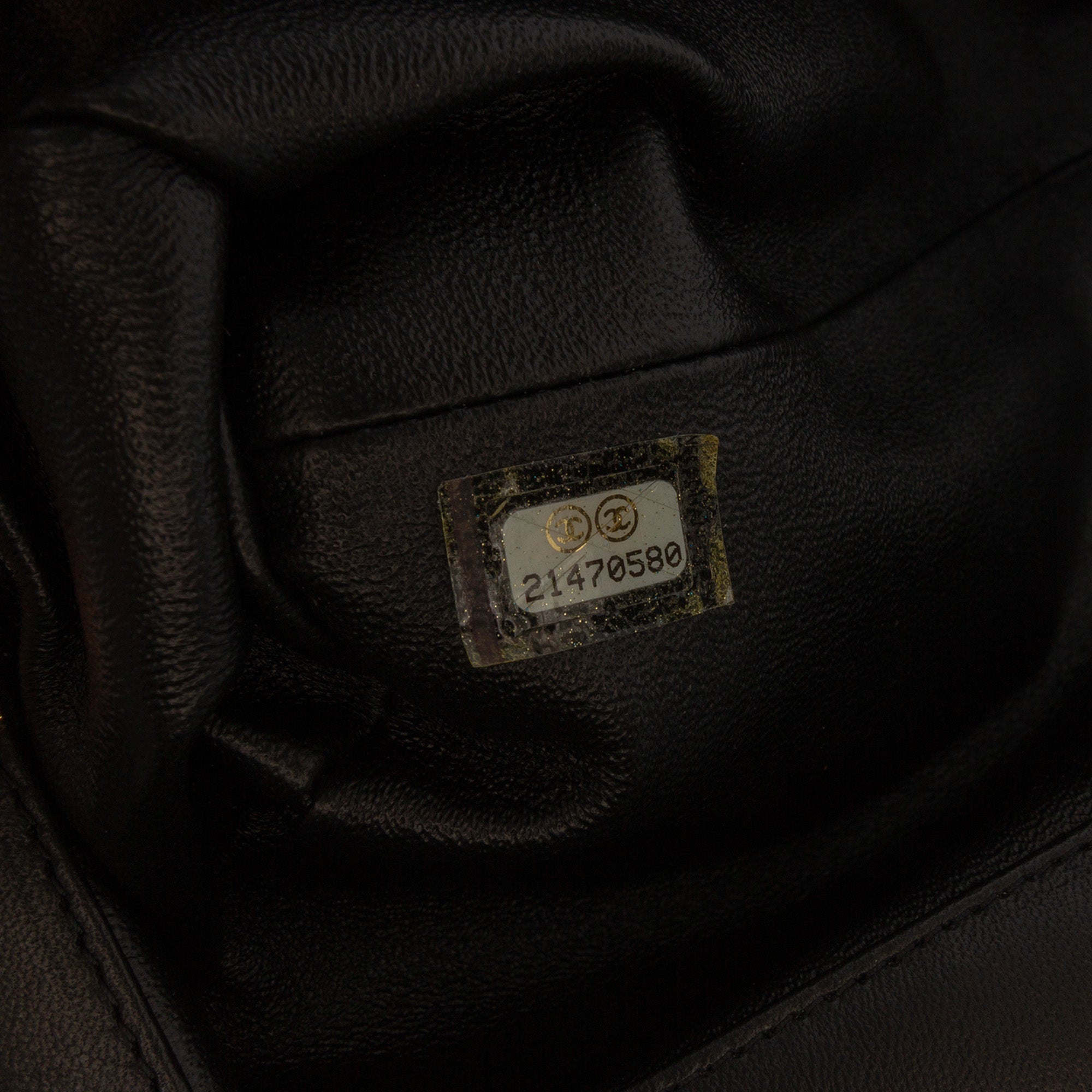 This clutch bag features a lambskin leather body, an open top with snap closure, and an interior zip pocket. Inclusion: authenticity card. Retail Price: 2450.00