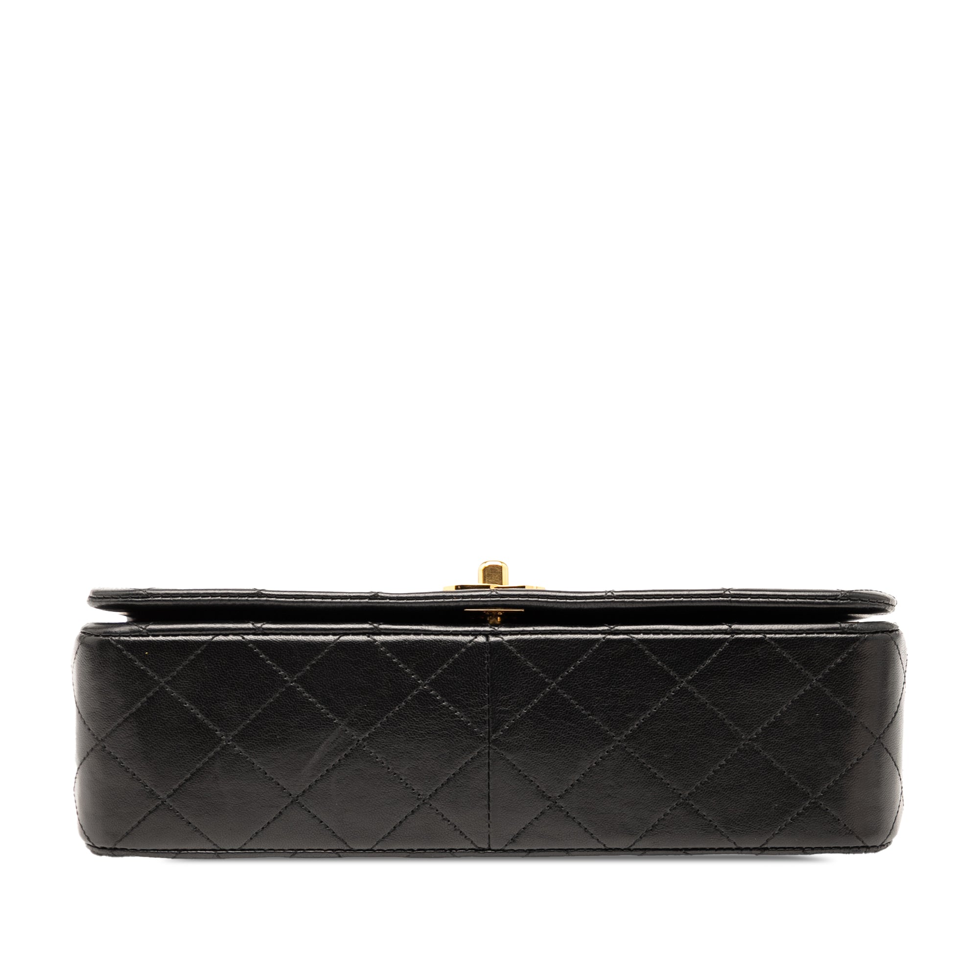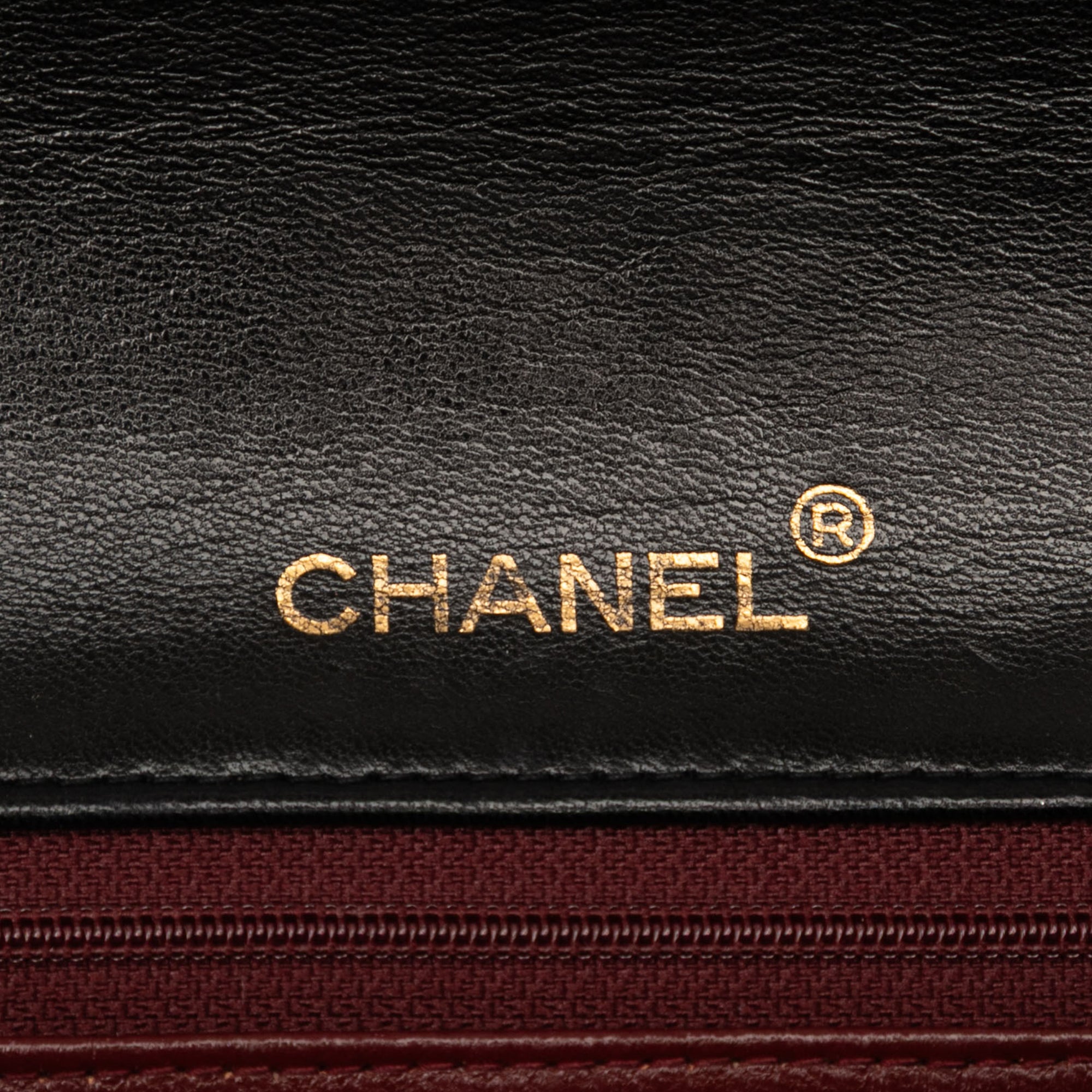 This crossbody bag features a quilted lambskin leather body, a leather-woven chain strap, a front flap with interlocking Cs and twist lock closure, and interior zip and slip pockets. Retail Price: 4894.00
