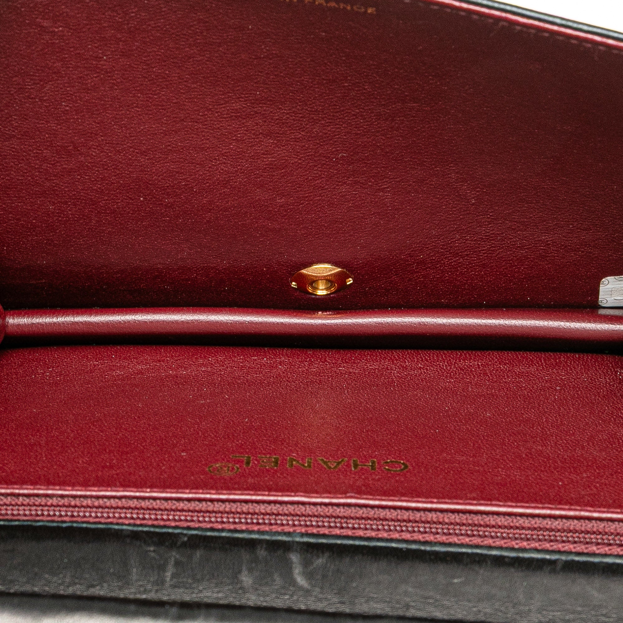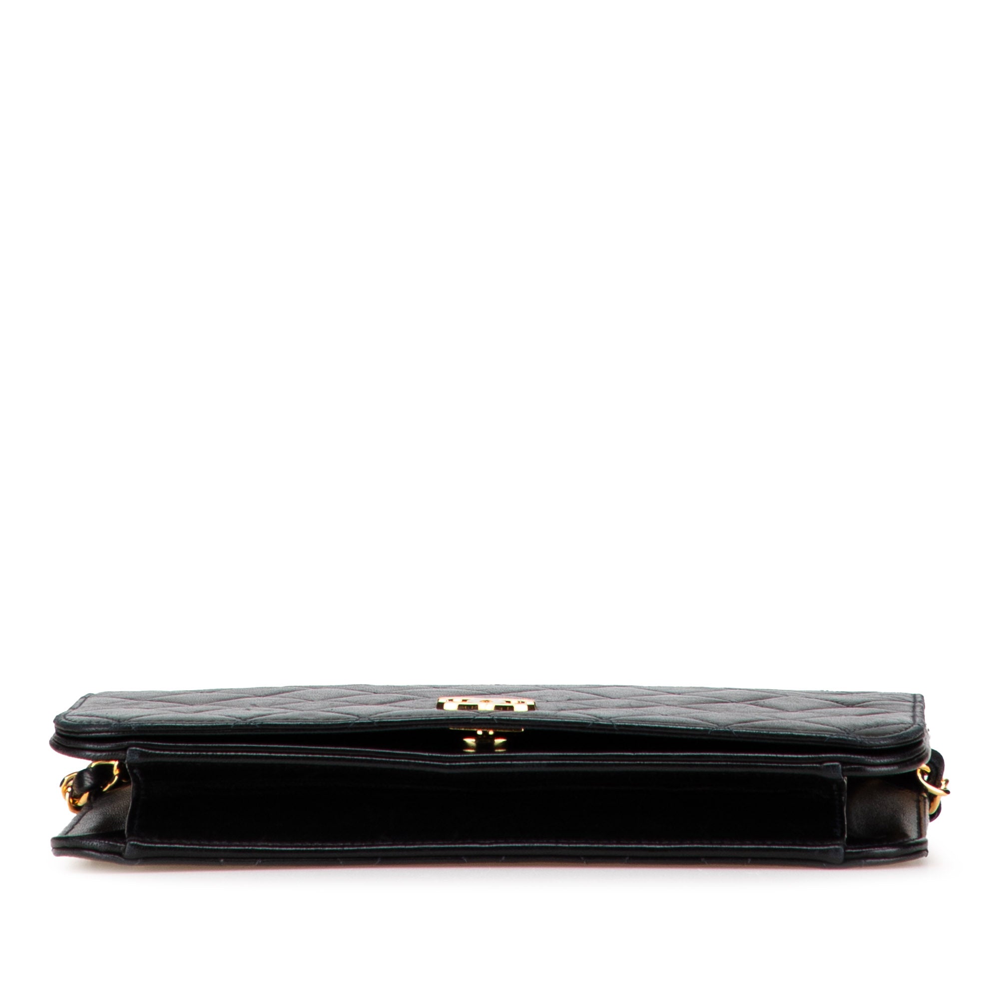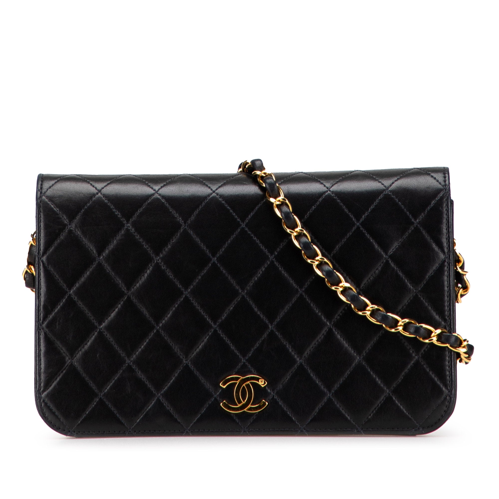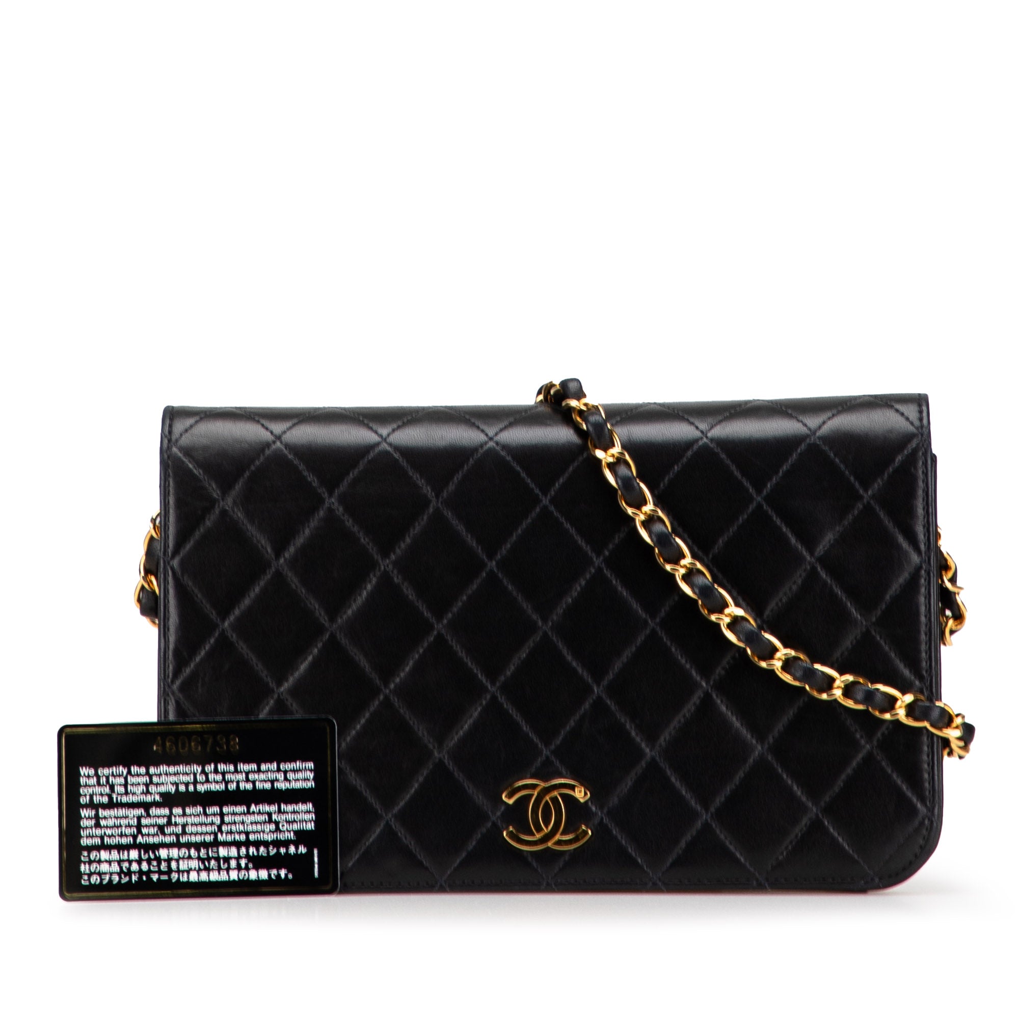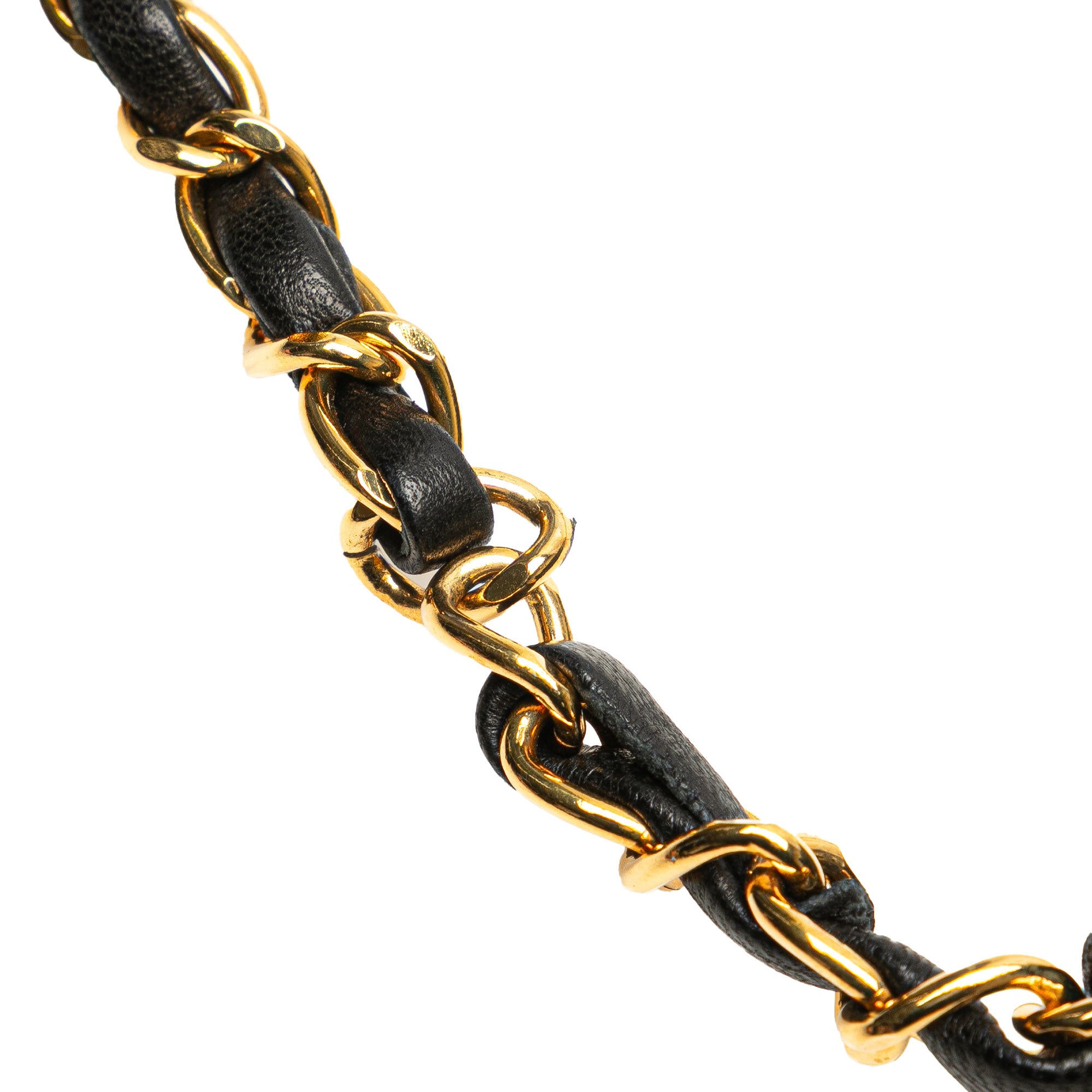 This crossbody bag features a quilted lambskin leather body, a leather woven chain strap, a front flap with a magnetic snap closure, and an interior zip pocket. The leather strap is restitched. Inclusion: authenticity card. Retail Price: 4000.00