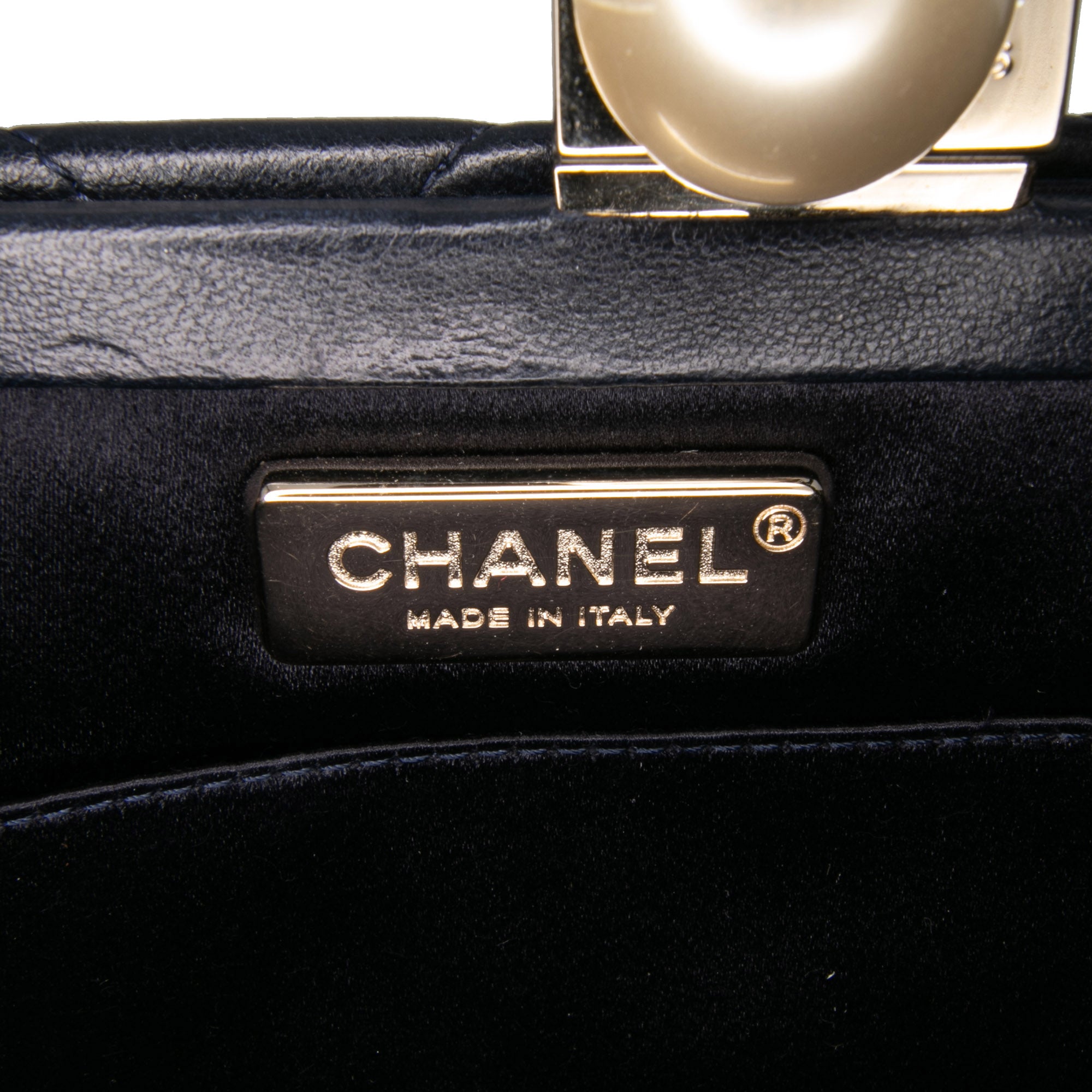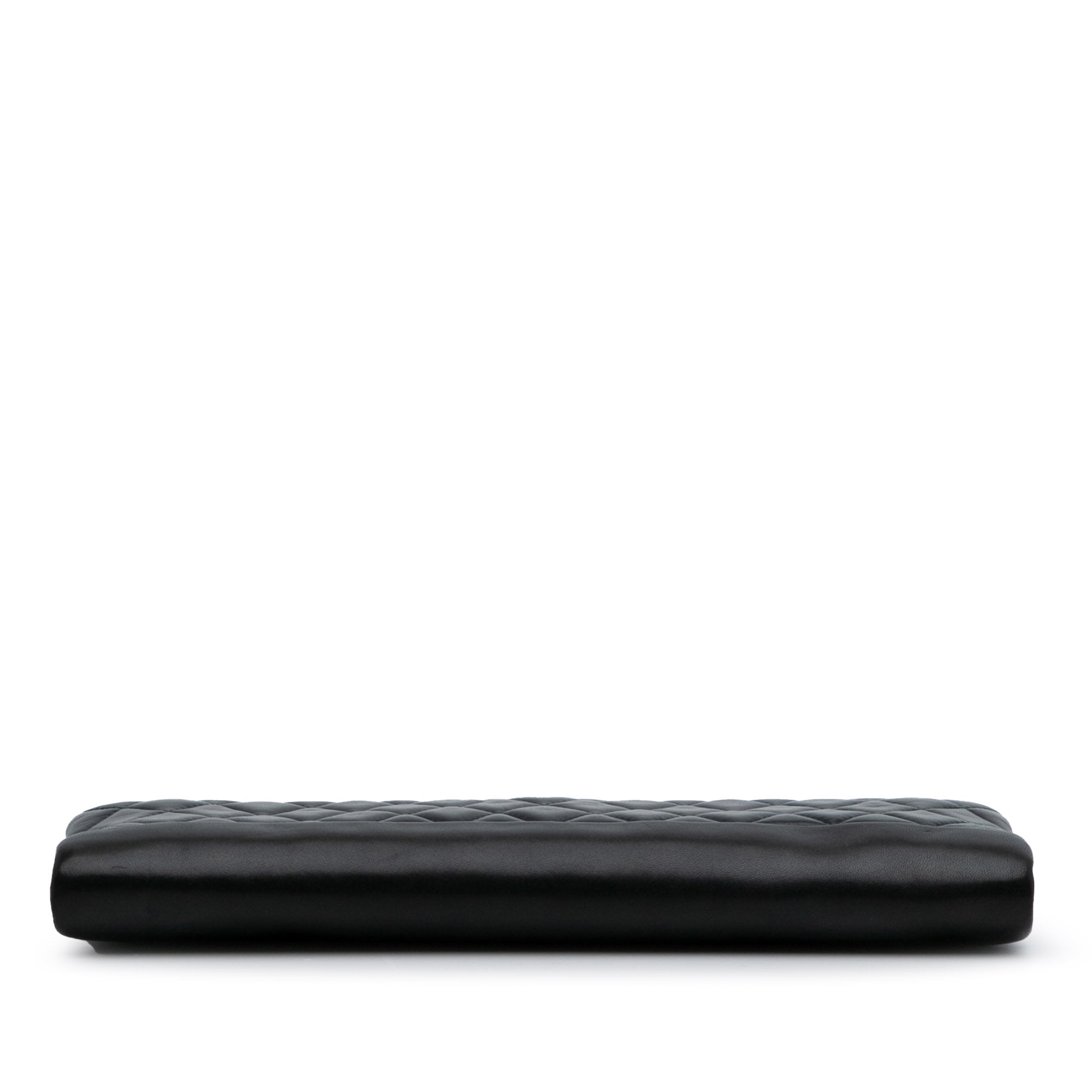 This Clutch bag features a quilted lambskin body, a top push lock closure, and an interior slip pocket. Retail Price: 2335.00
