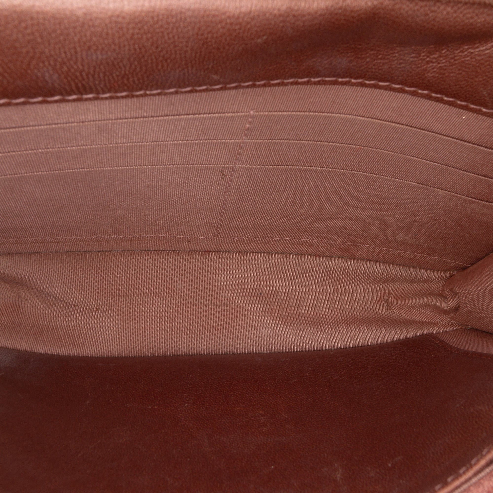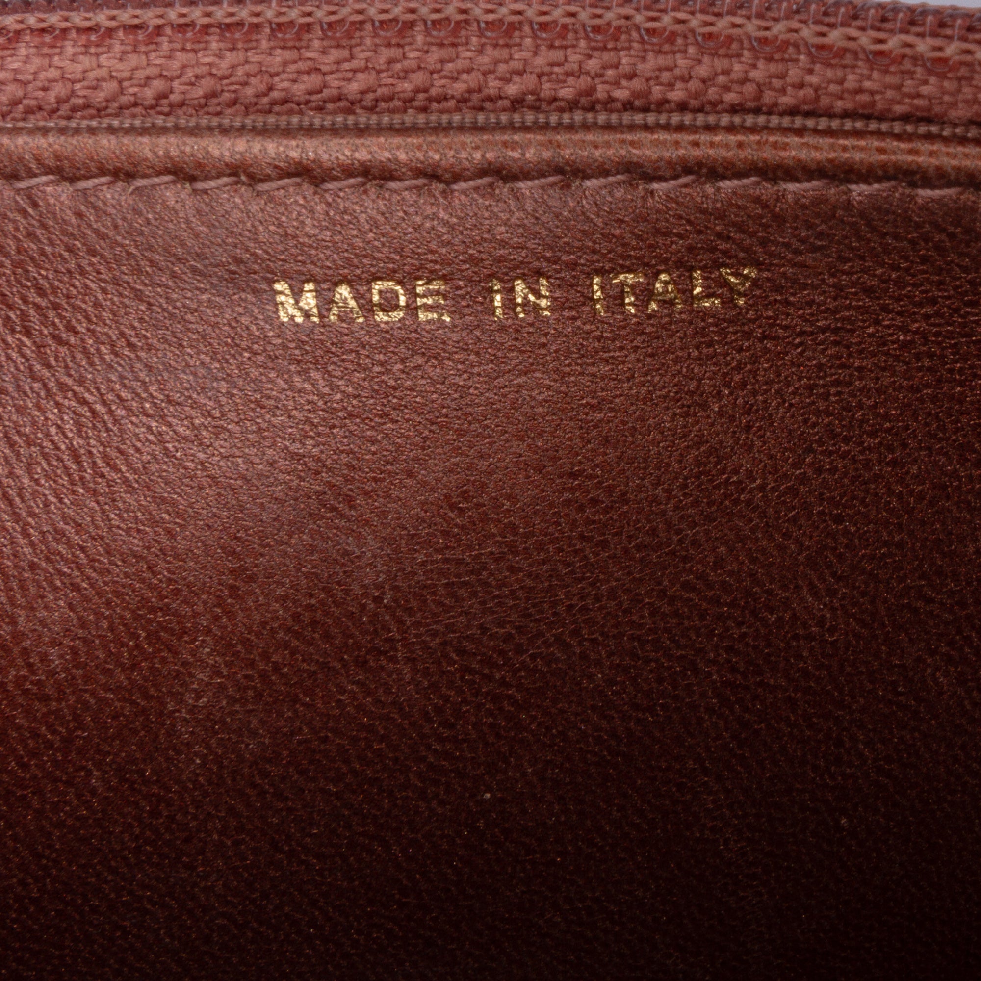 This wallet on chain features a quilted lambskin leather body, a leather woven chain shoulder strap, a front flap with enamel CC and magnetic closure, and interior zip and slip compartments. Retail Price: 3350.00