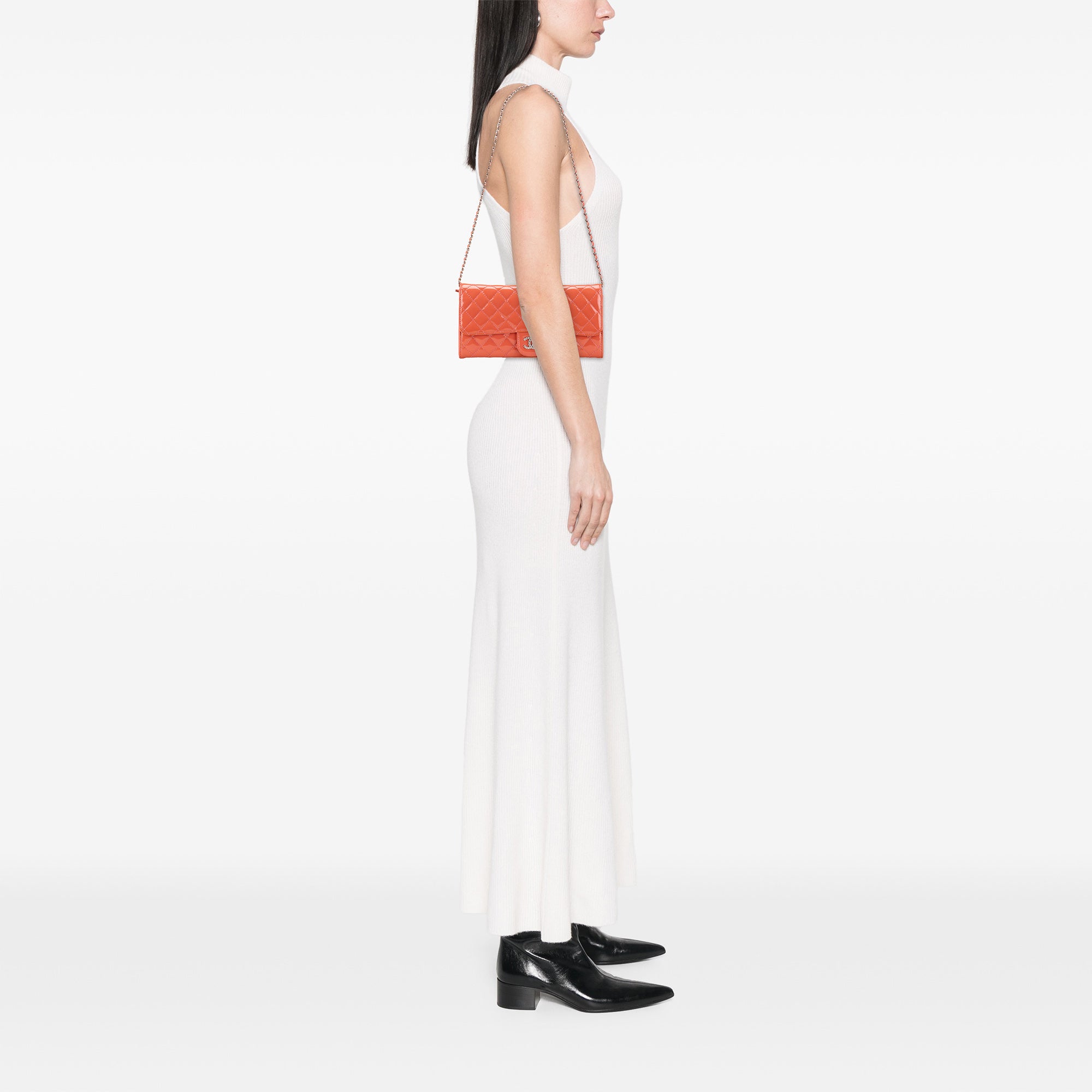 Chanel CC Quilted Patent Brilliant East West Wallet On Chain