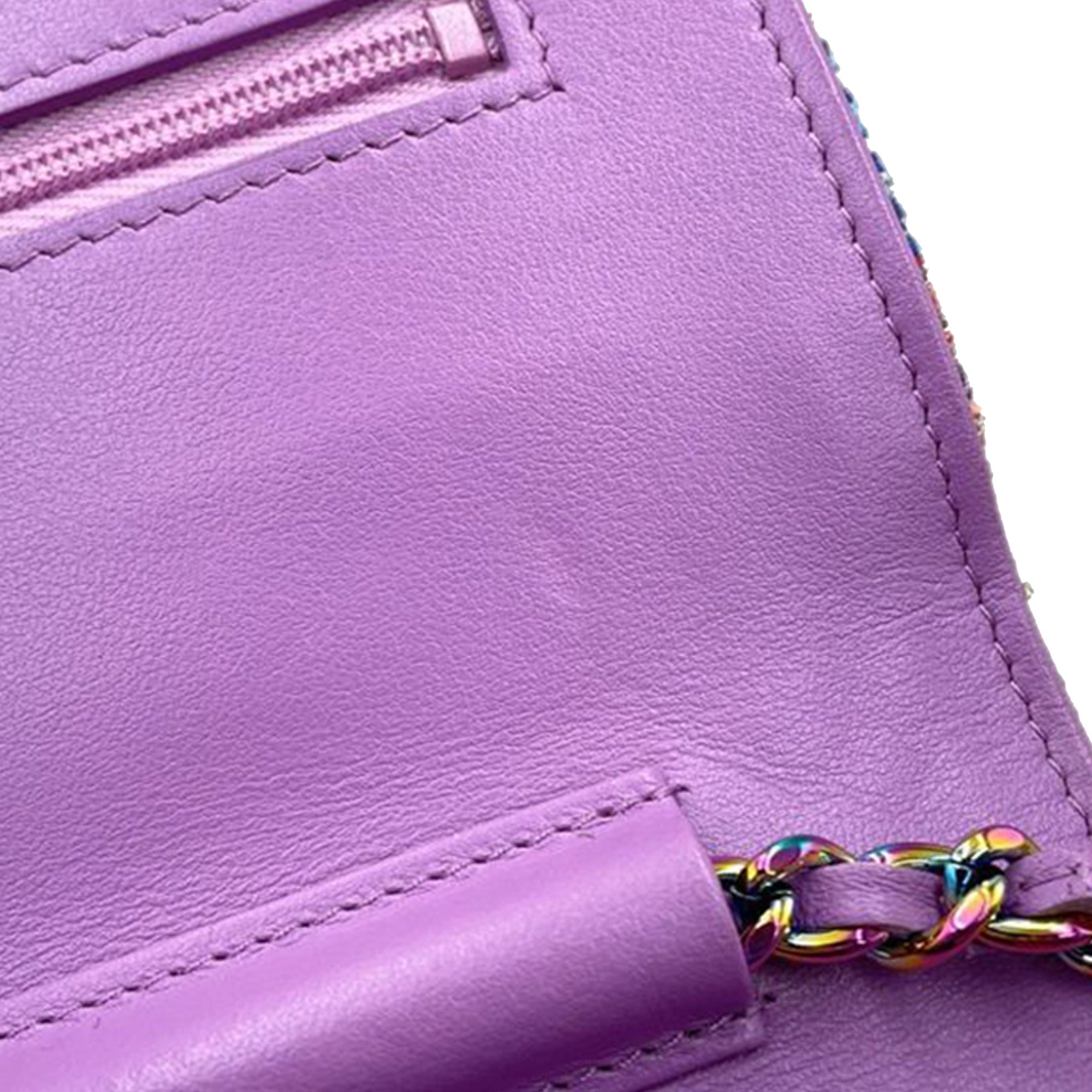 Chanel CC Quilted Tweed Rainbow Hardware Wallet on Chain
