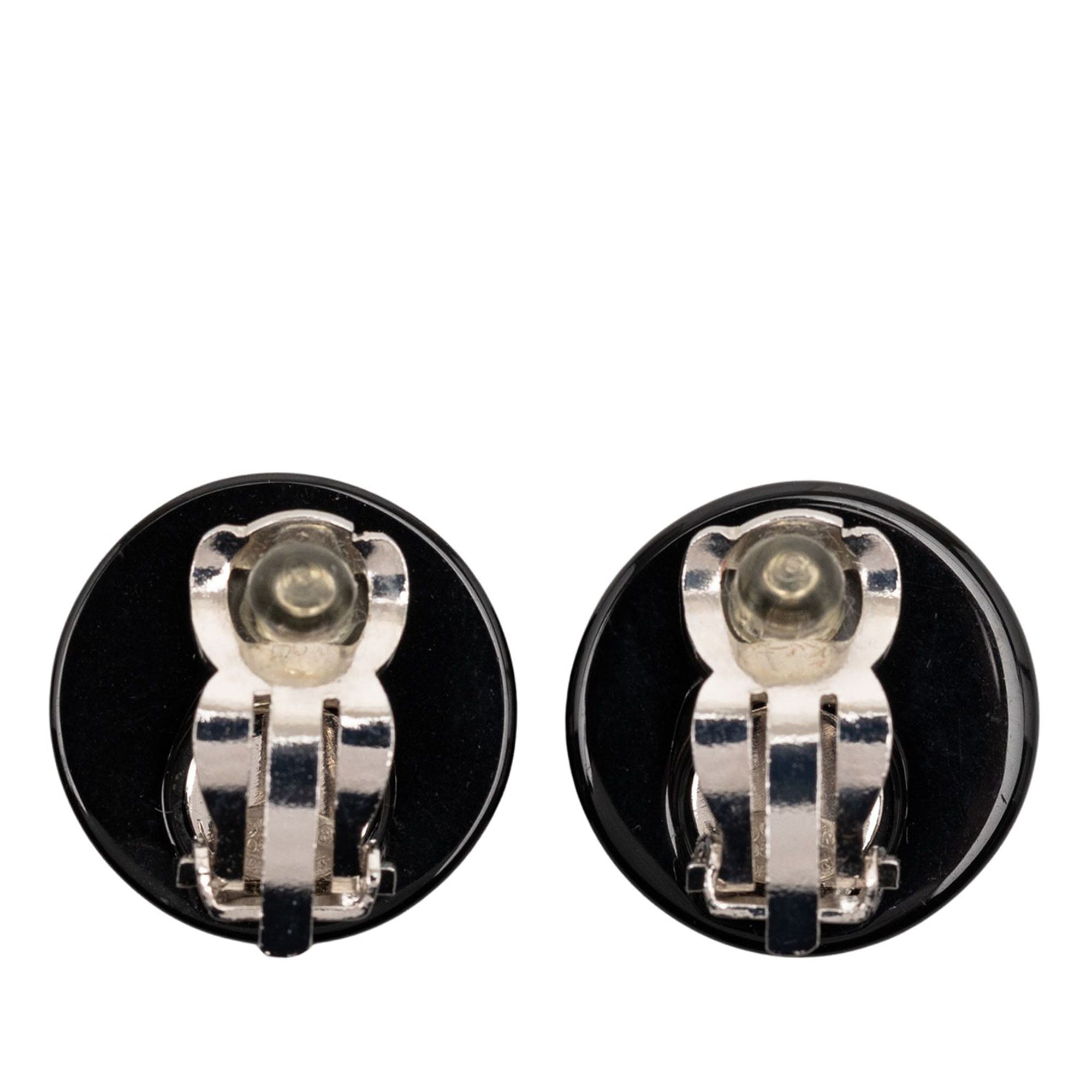 These earrings feature a silver-tone metal and resin body with crystal embellishments, and a clip on closure. Retail Price: 960.00