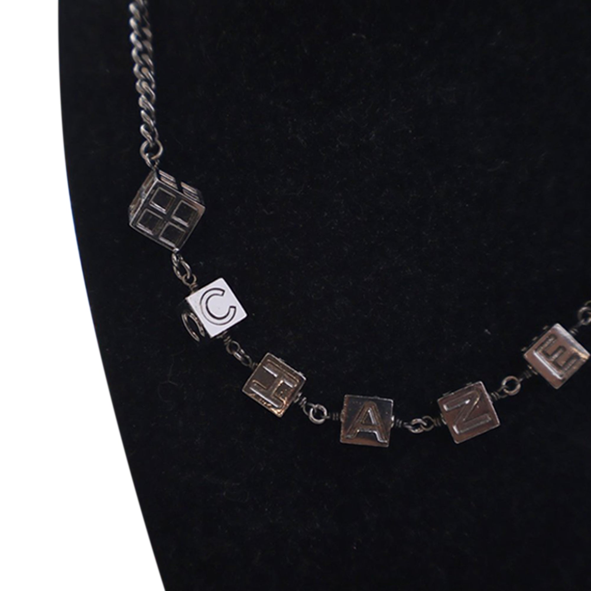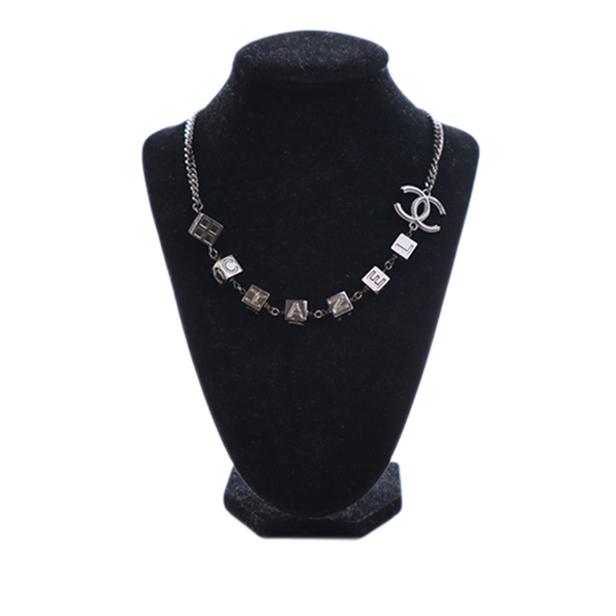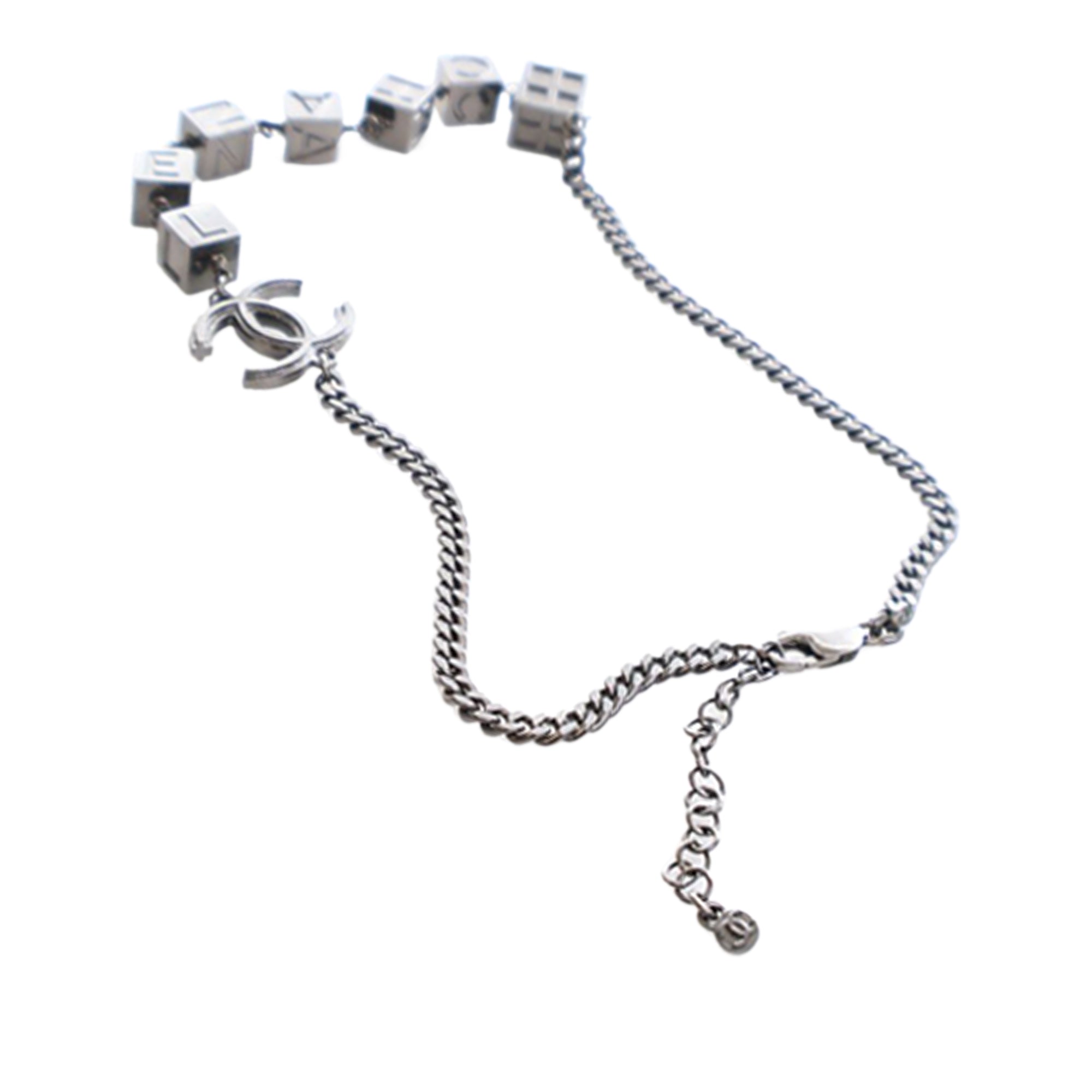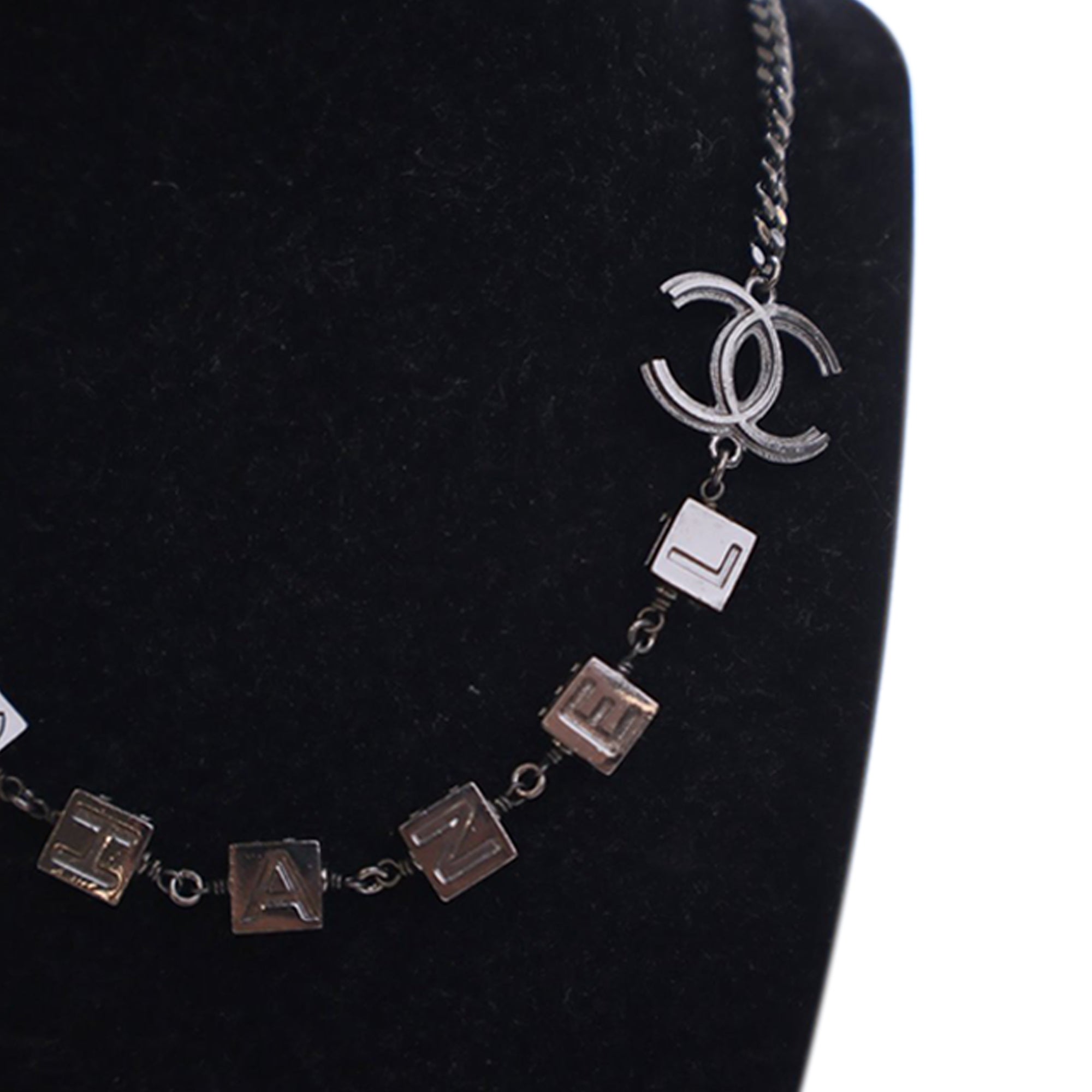 Chanel CC Ruthenium Plated Logo Chain Choker Necklace