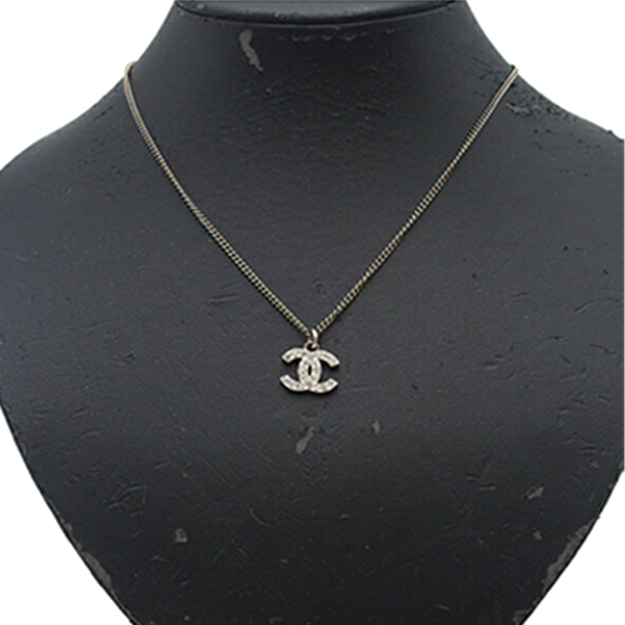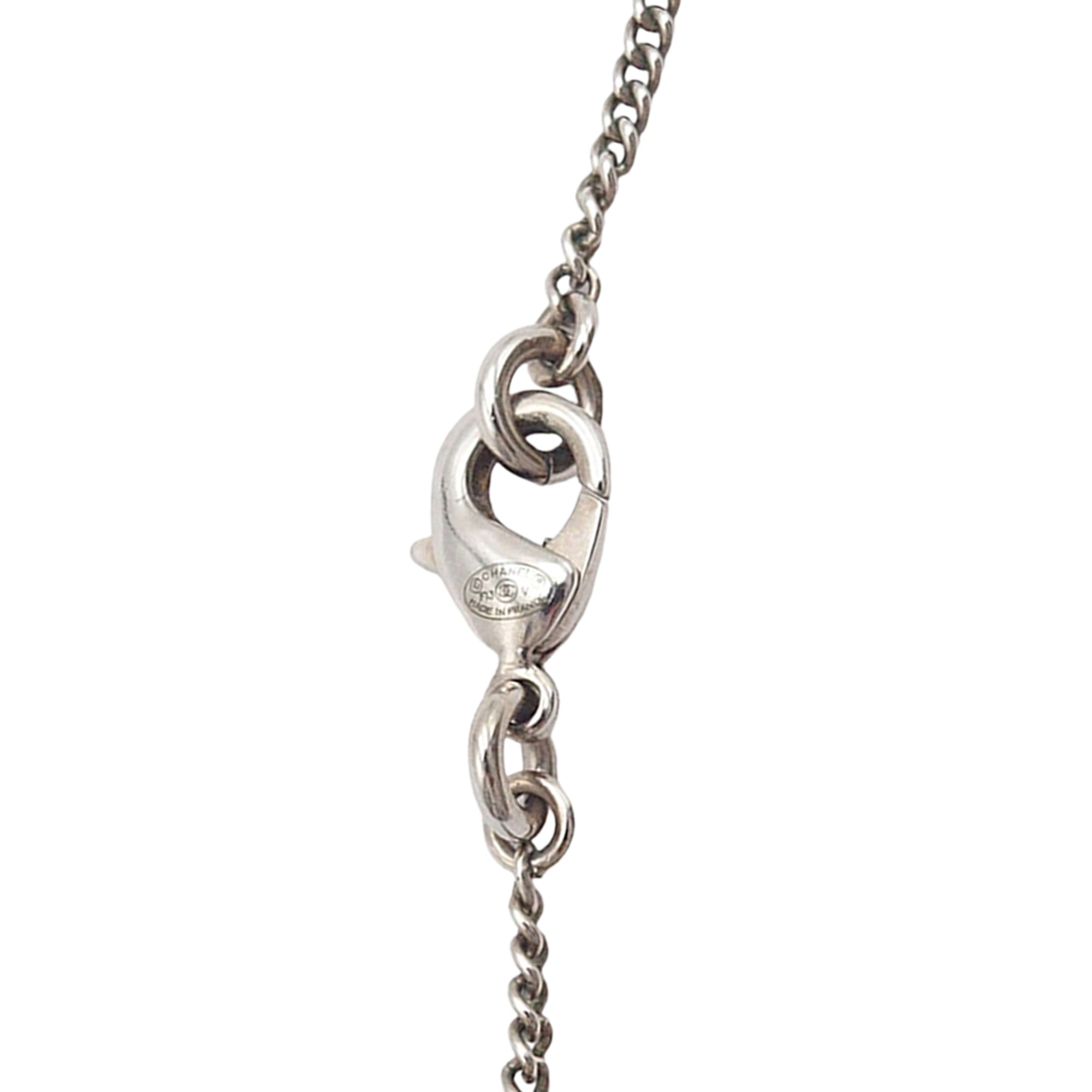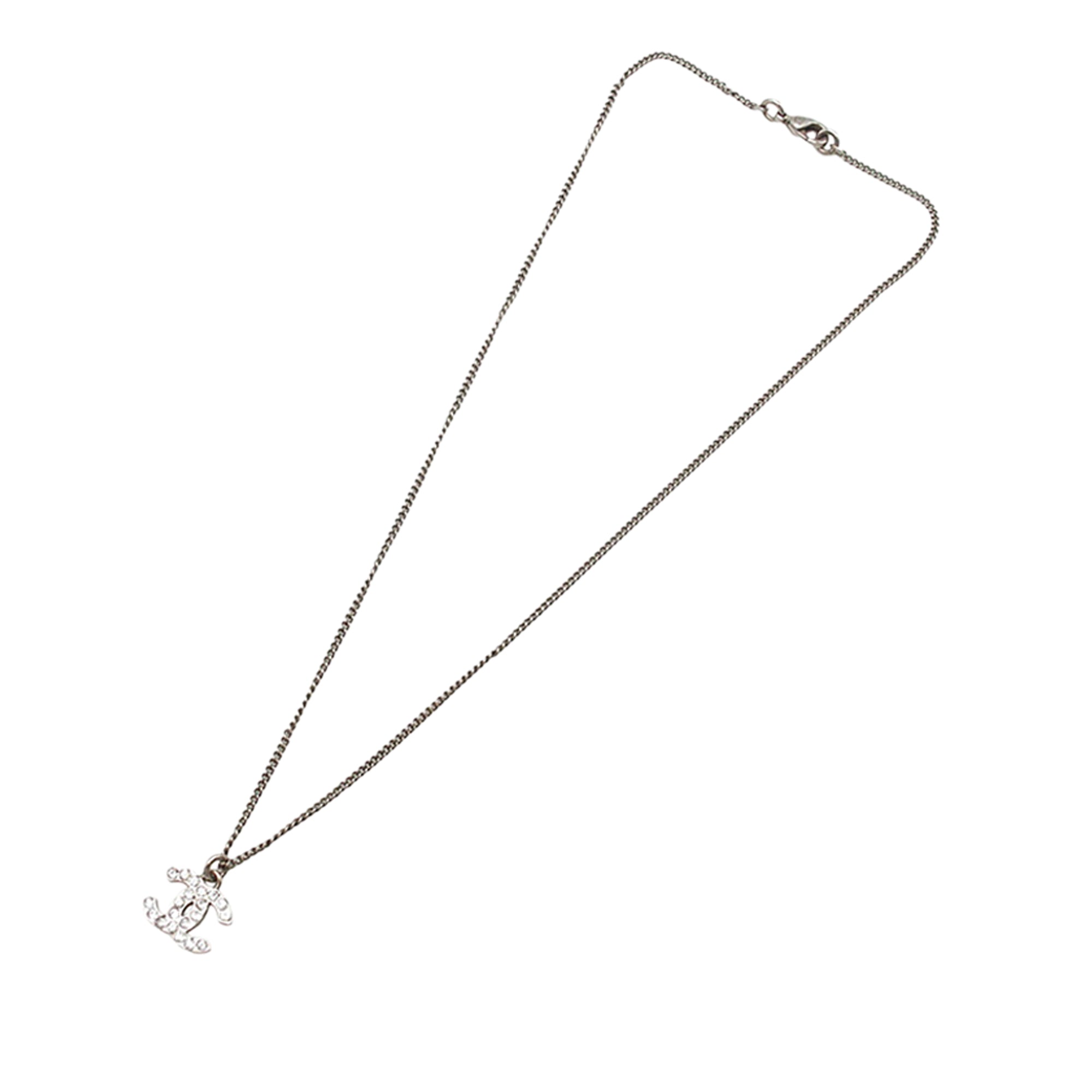Chanel CC Silver Plated Rhinestone Pendant Necklace