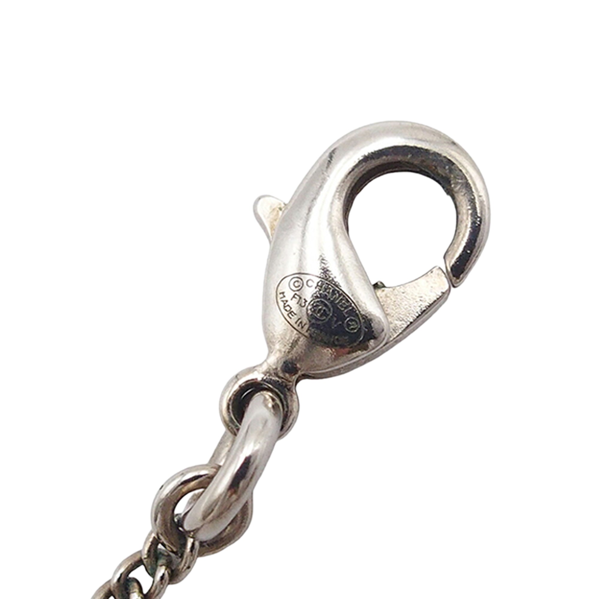 This necklace features a silver plated body, a CC logo pendant with rhinestones, and a lobster claw clasp closure. Motif Measurements: W1.40cm x H1.30cm Retail Price: 1182.00