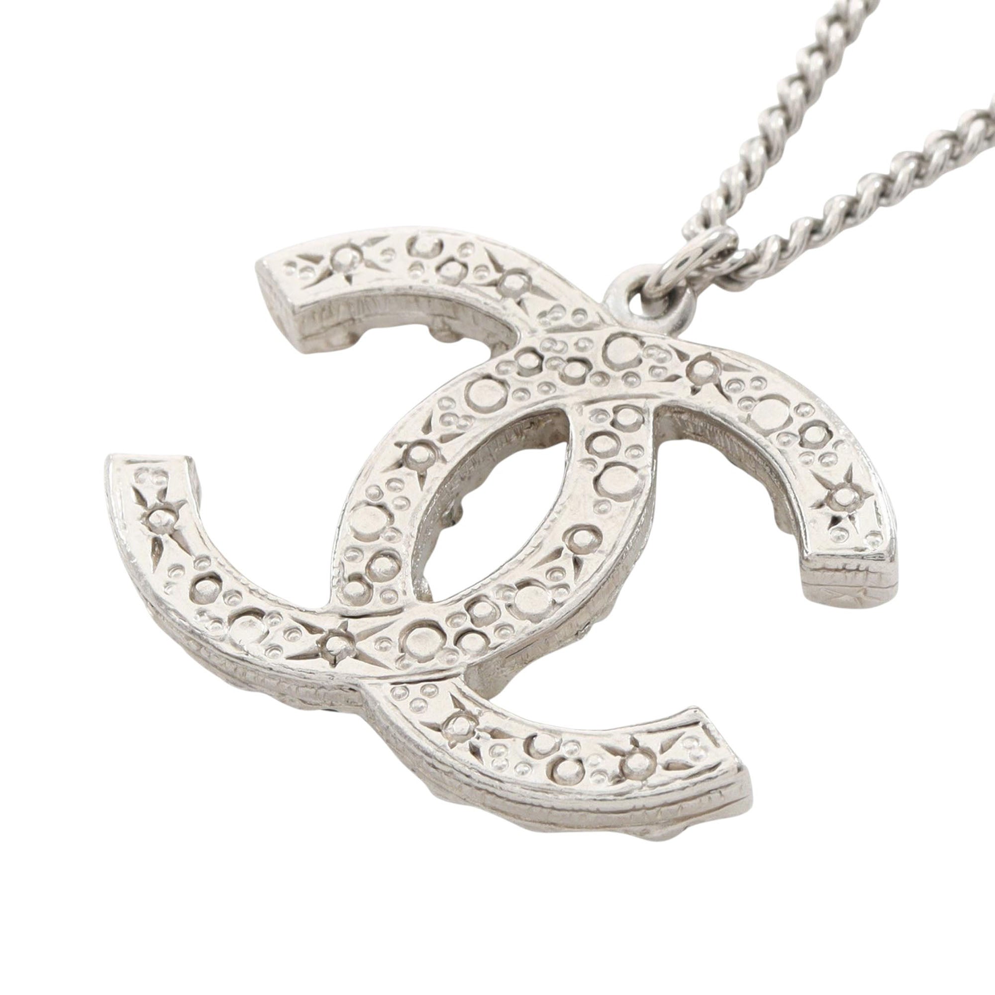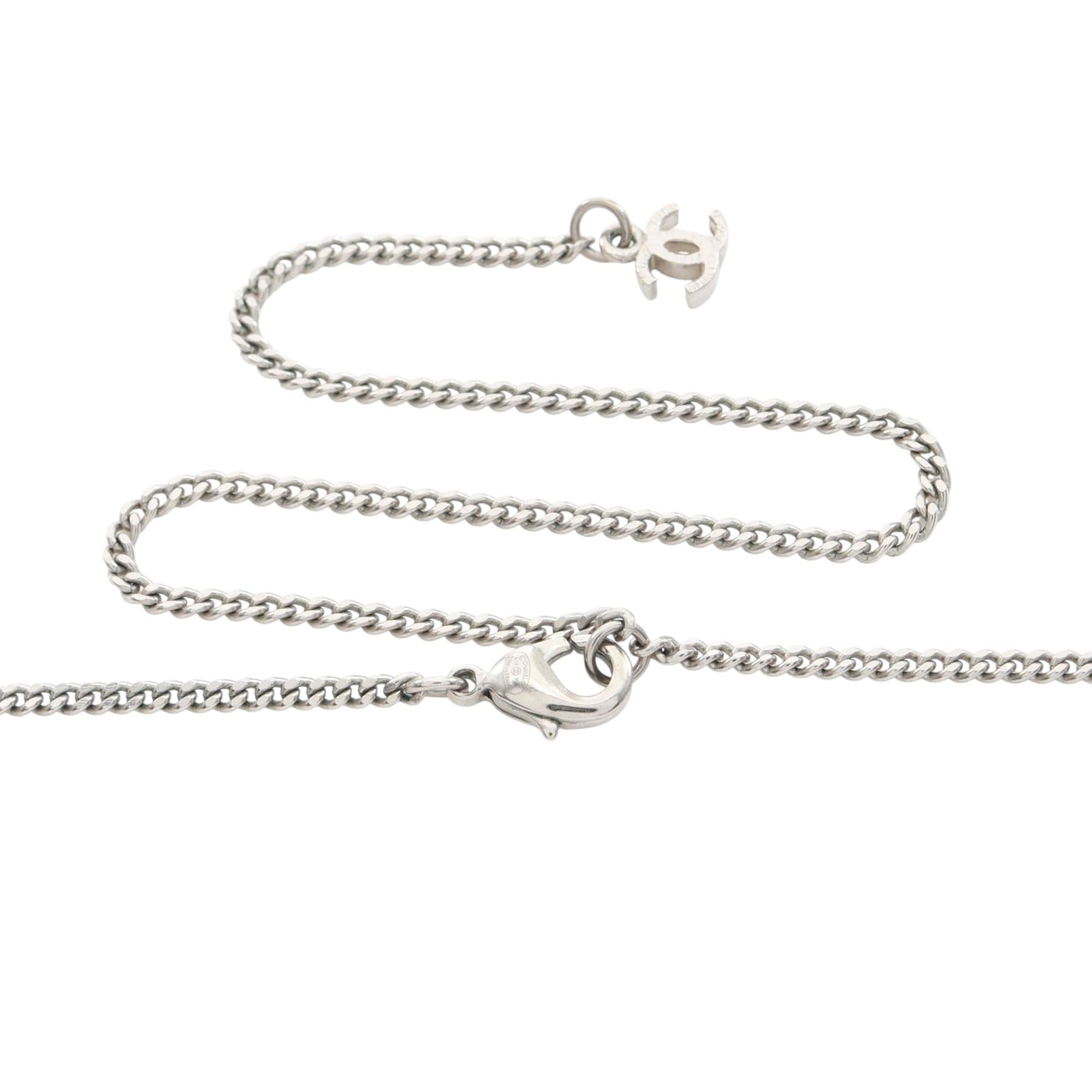 Chanel CC Stainless Steel Rhinestone Pendant Necklace