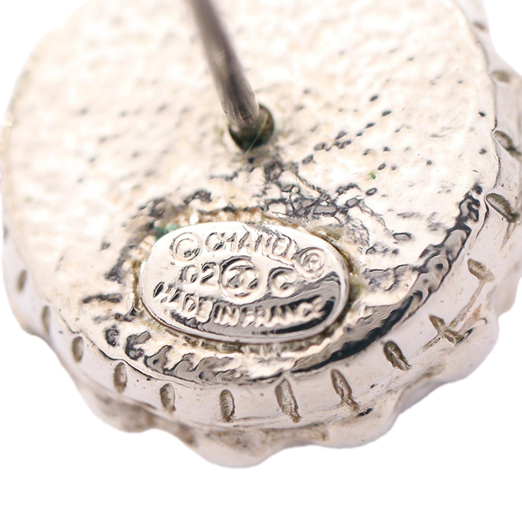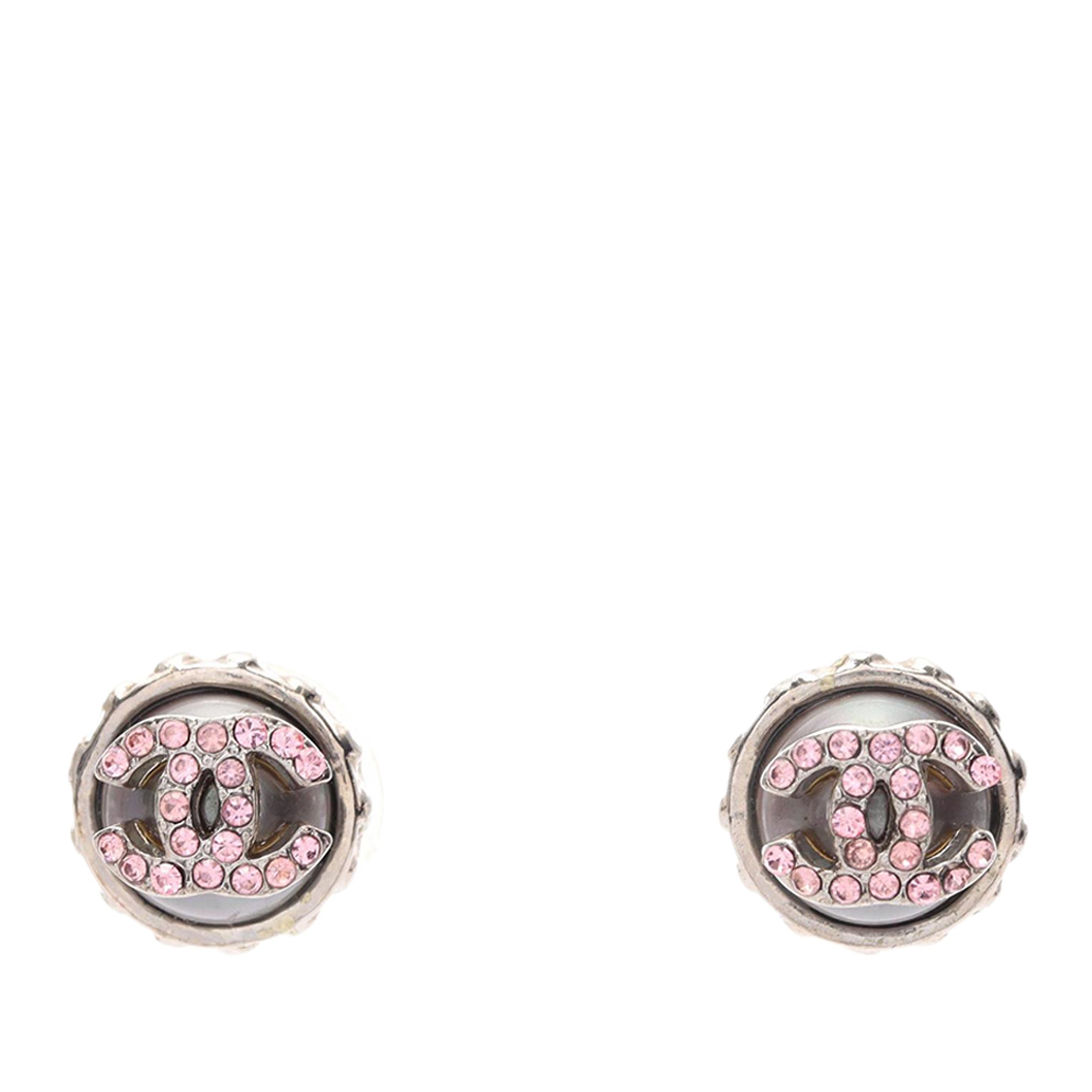 Chanel CC Stainless Steel Rhinestones Push Back Earrings Secondhand