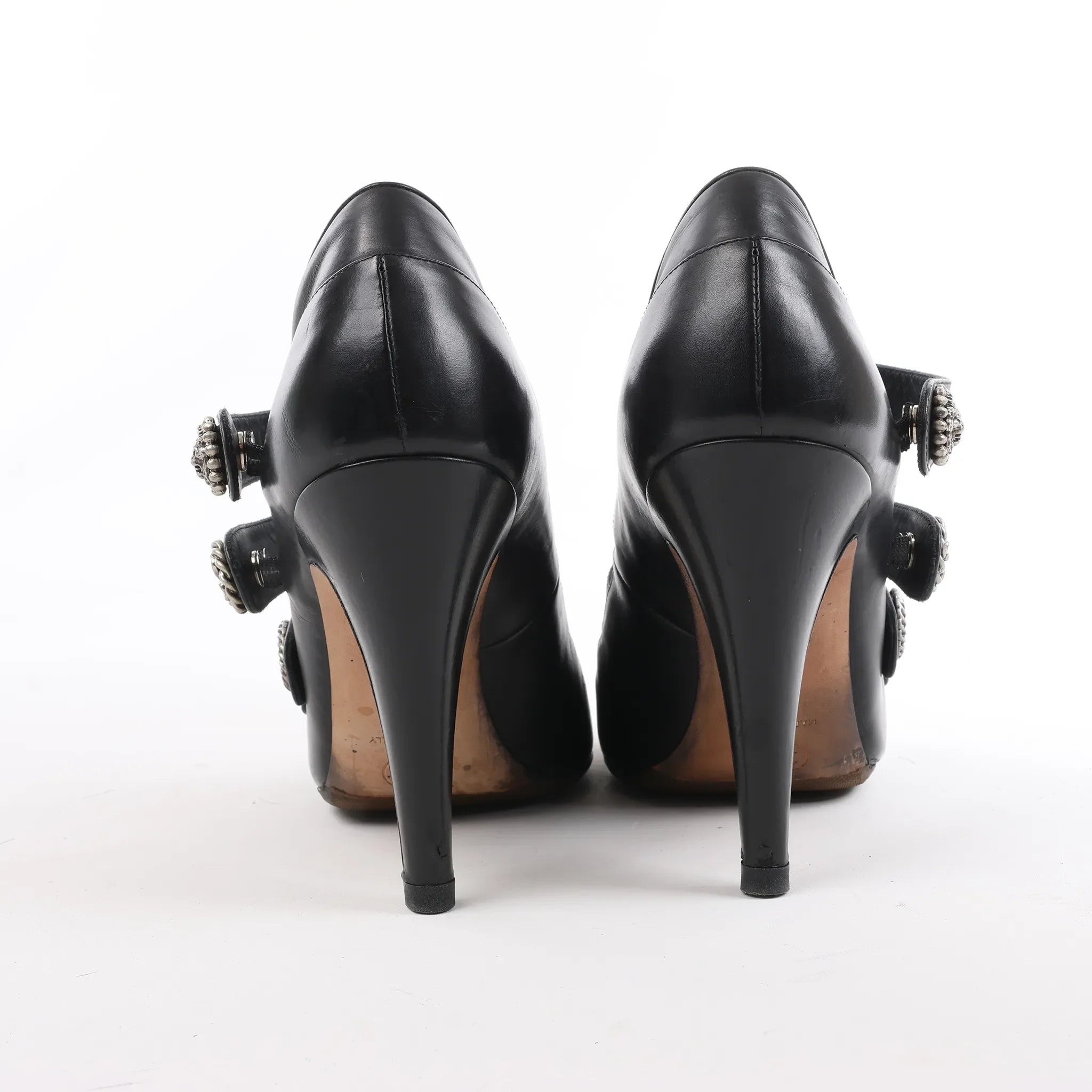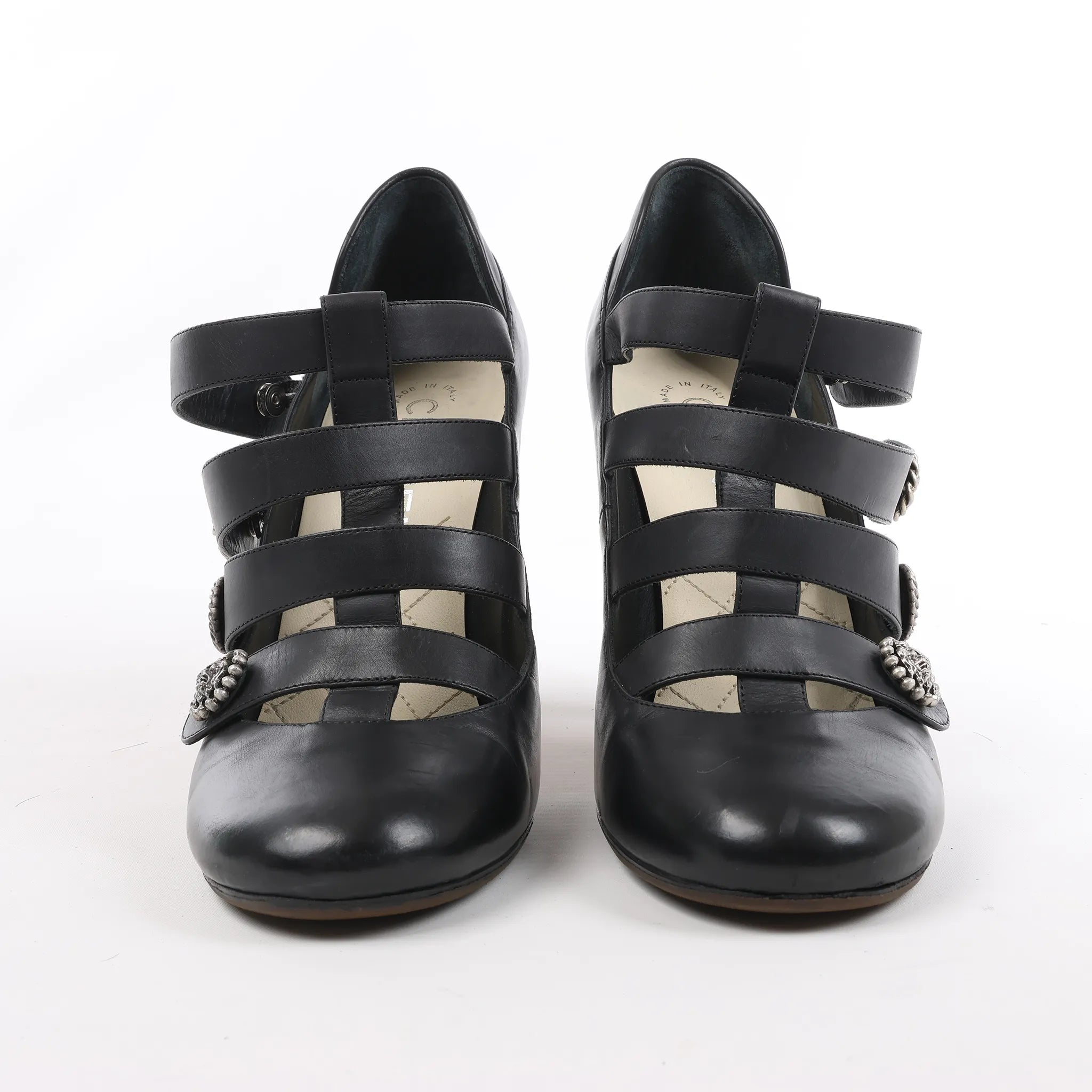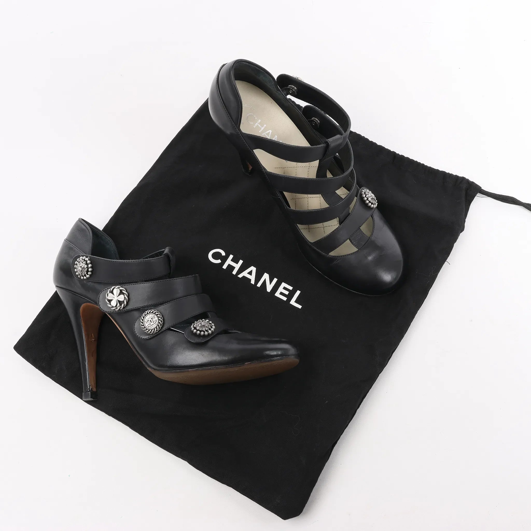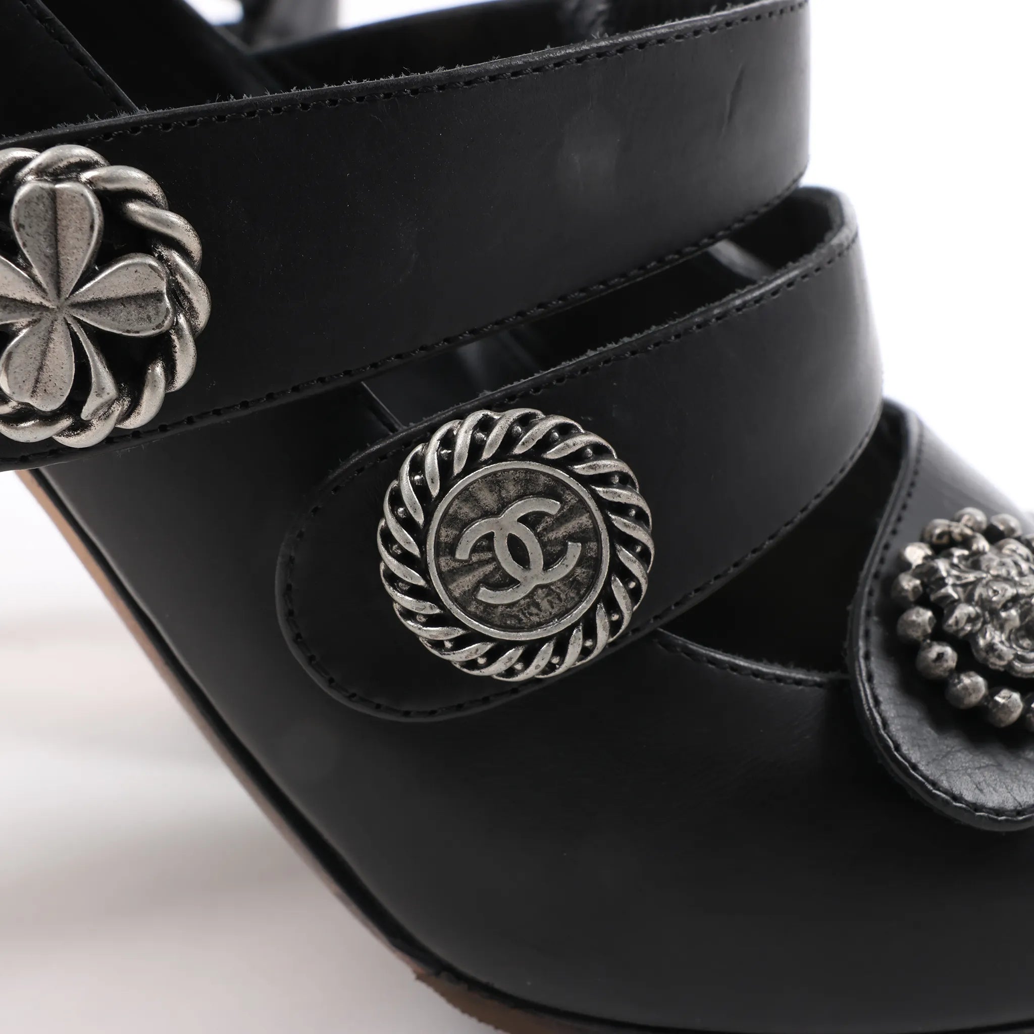 Chanel Chanel Coco Mark Lion Clover Buttons Leather Pumps in Black, Size 38 EU