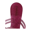 The Chanel Jelly Camellia Flip-Flop is designed with a glitter finish, boasting a camellia flower and a signature gold-tone CC logo emblem. Its pink jelly PVC construction is complemented by a quilted sole, complete with an interlocking CC logo at the heel.