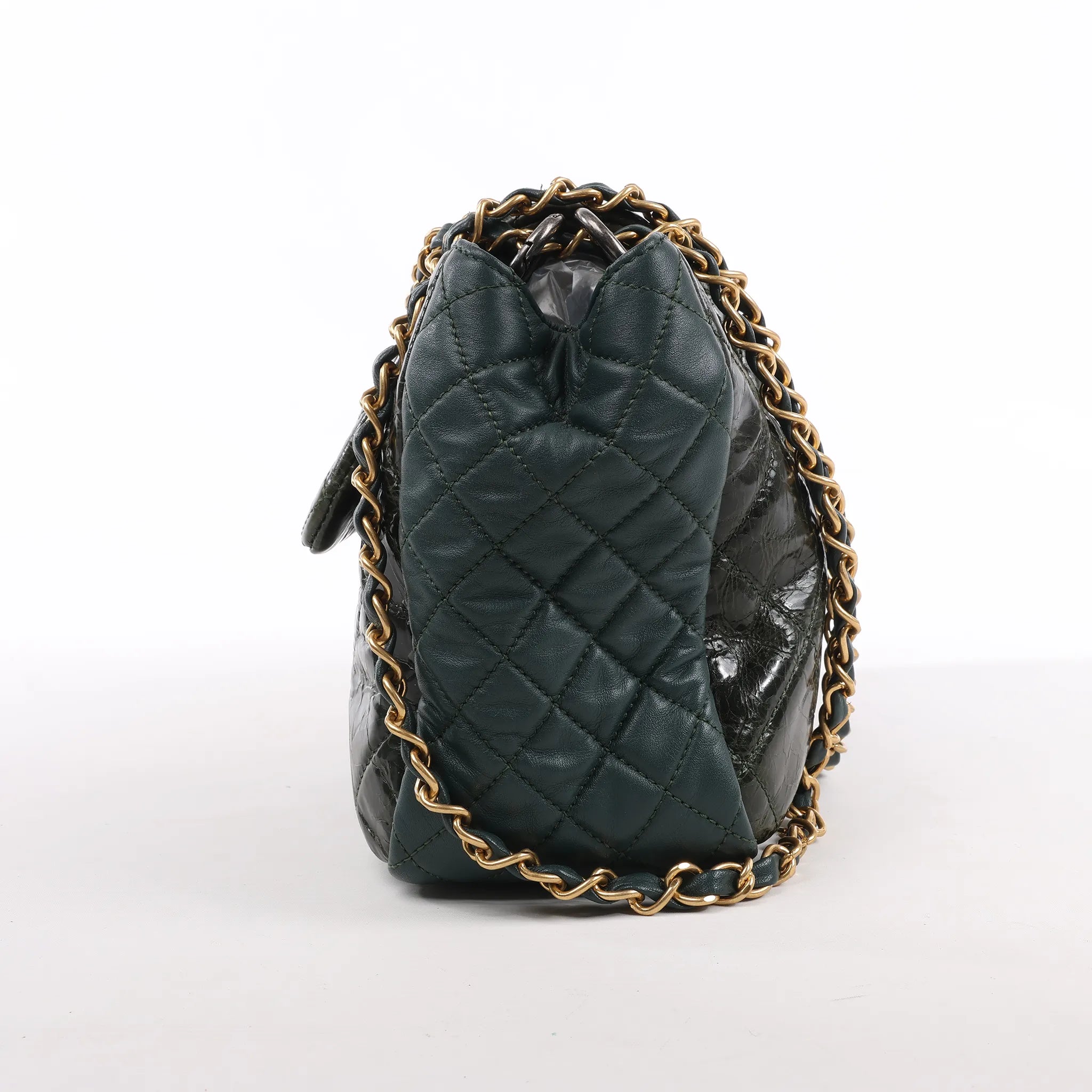 Elevate your style with the Chanel Reissue Accordion Shoulder Bag in Green. Crafted from luxurious quilted leather mix, this iconic model features aged gold-tone hardware and a signature chain strap—perfect for timeless elegance and everyday sophistication.