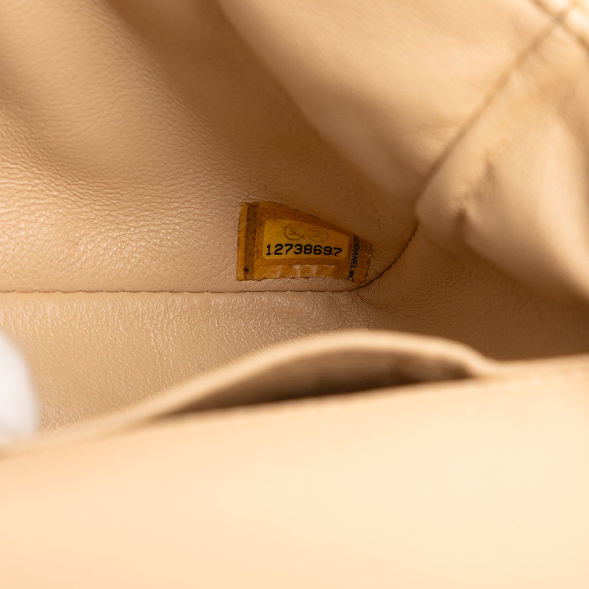 The Classic East West Flap features a quilted caviar leather body, a leather woven chain strap, a front flap with a CC turn lock closure, an exterior back slip pocket, and interior slip pockets. Inclusion: authenticity card. Retail Price: 4195.00