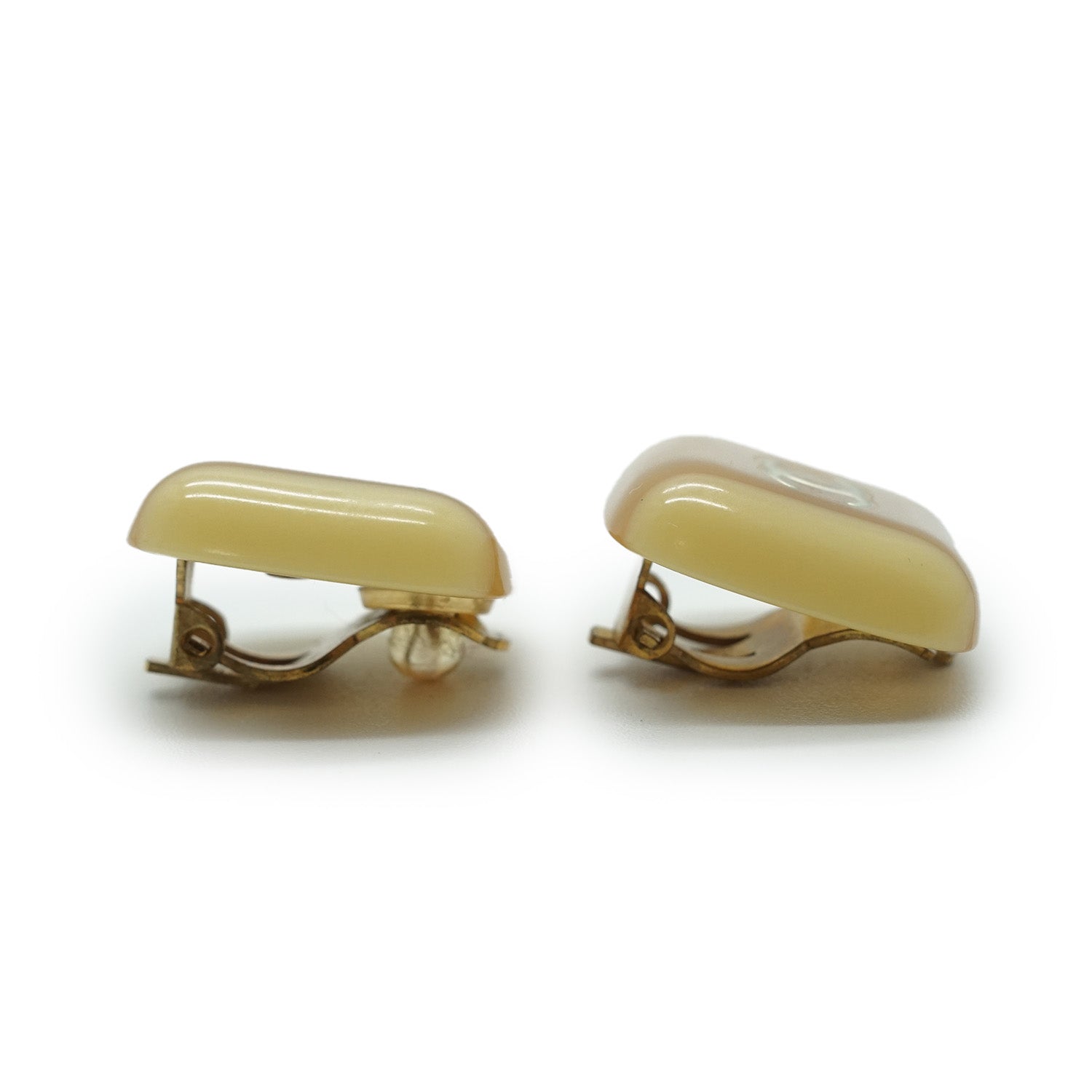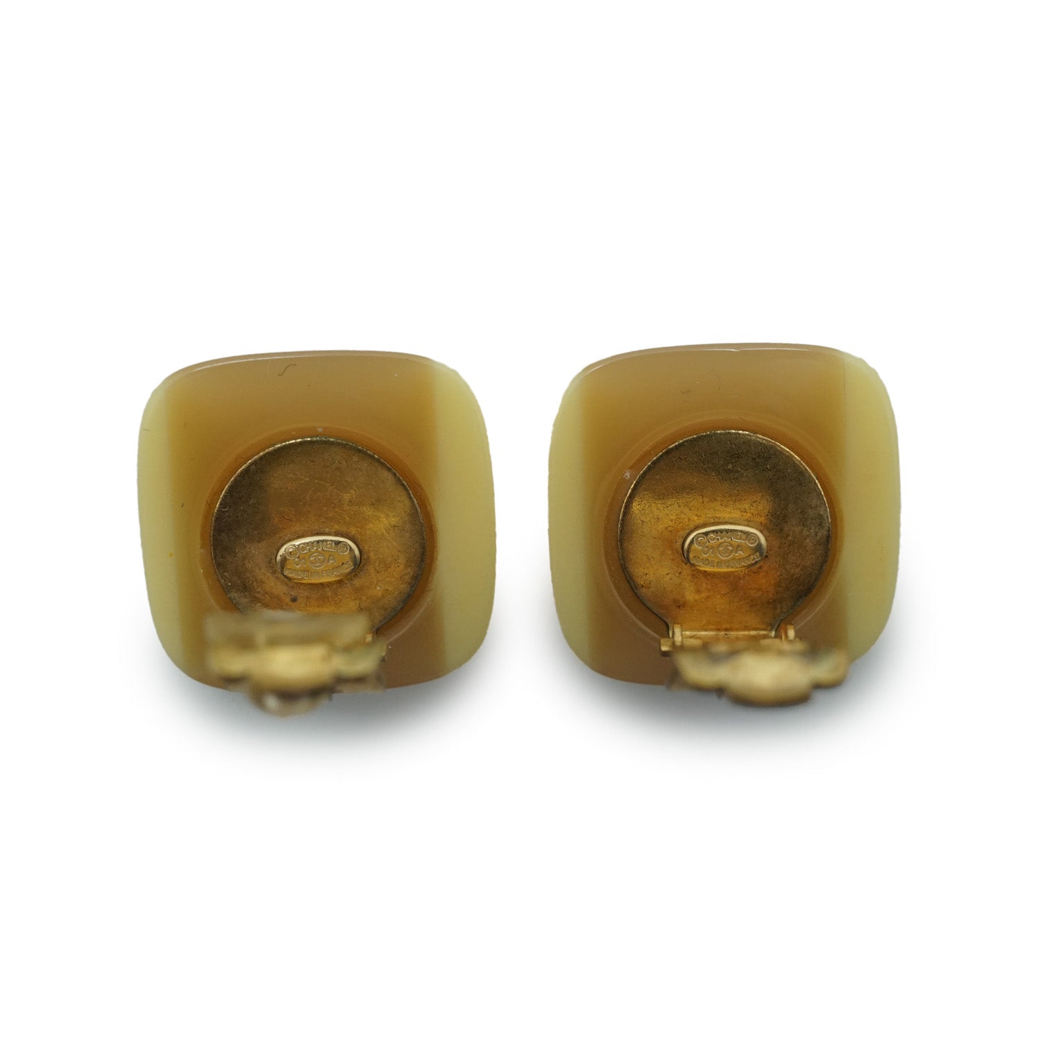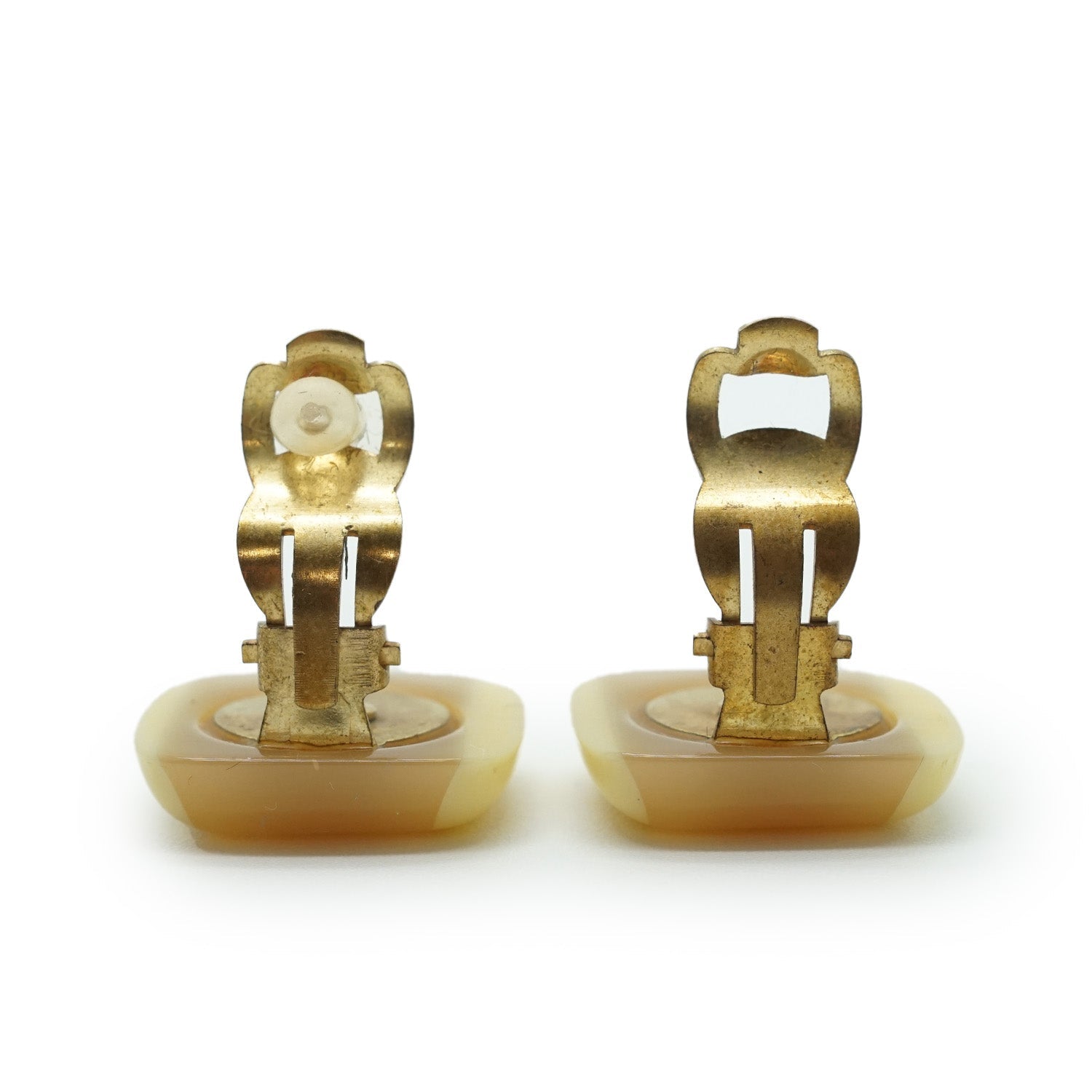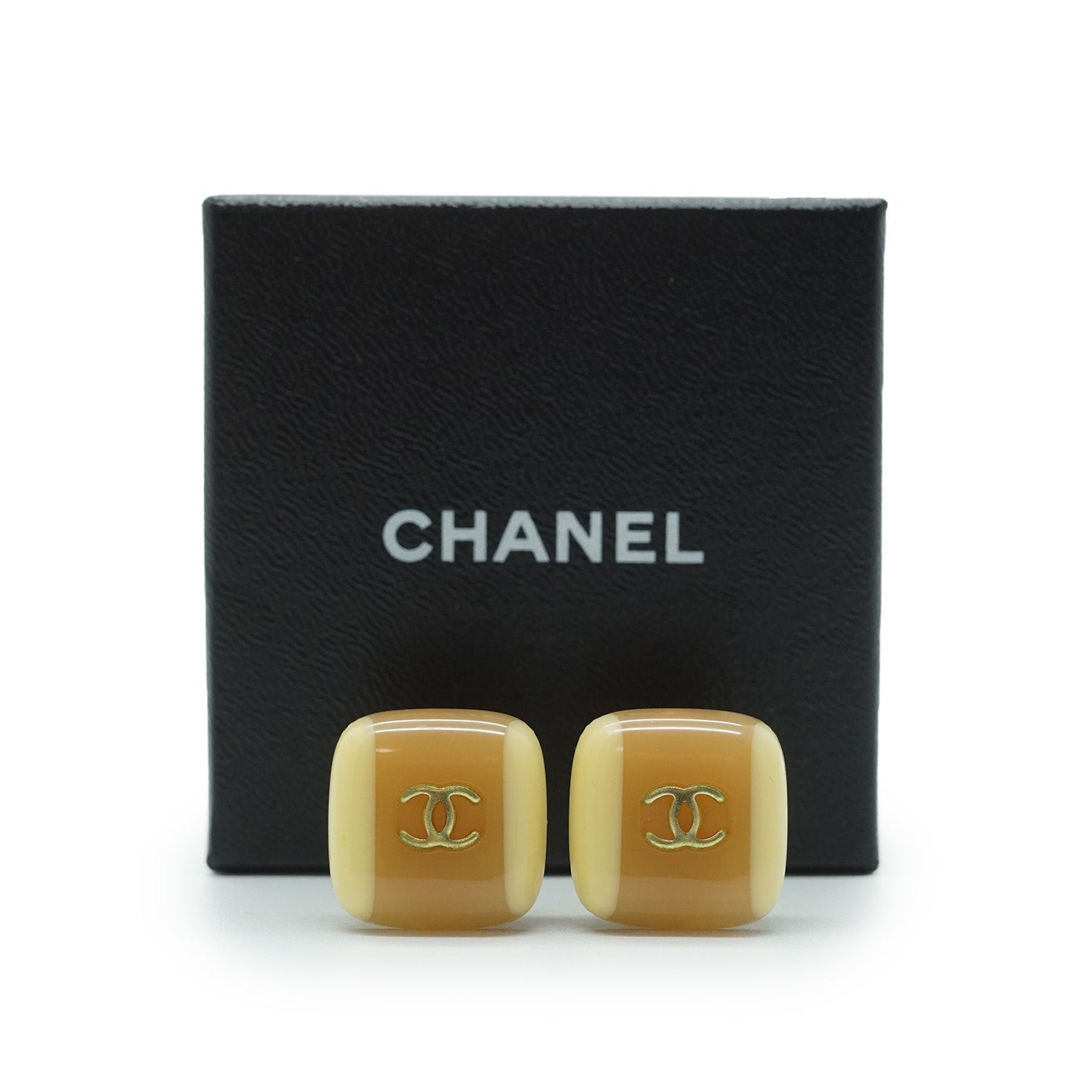 Chanel Coco Mark Bicolor Square Button Clip Earrings