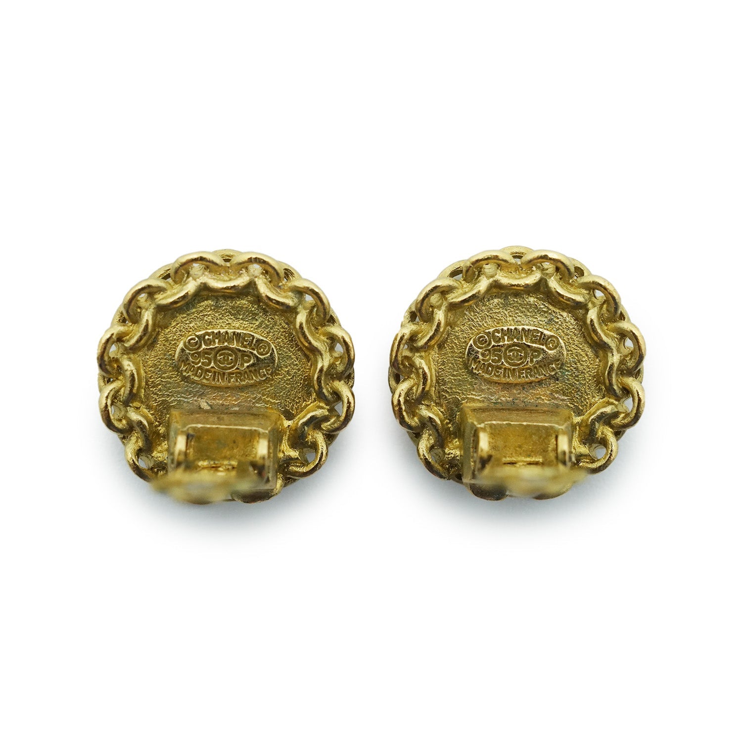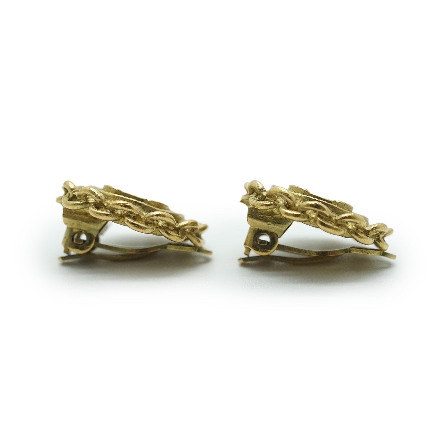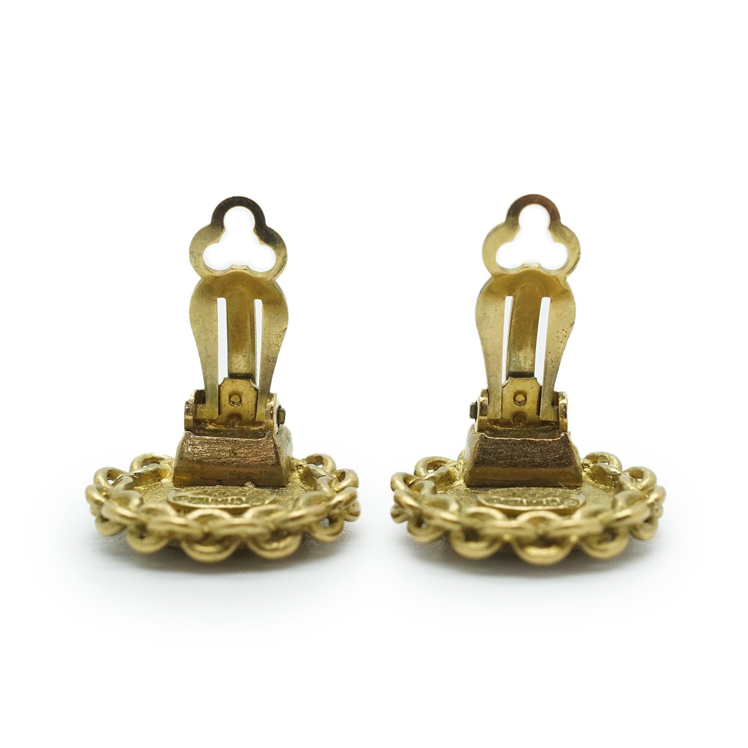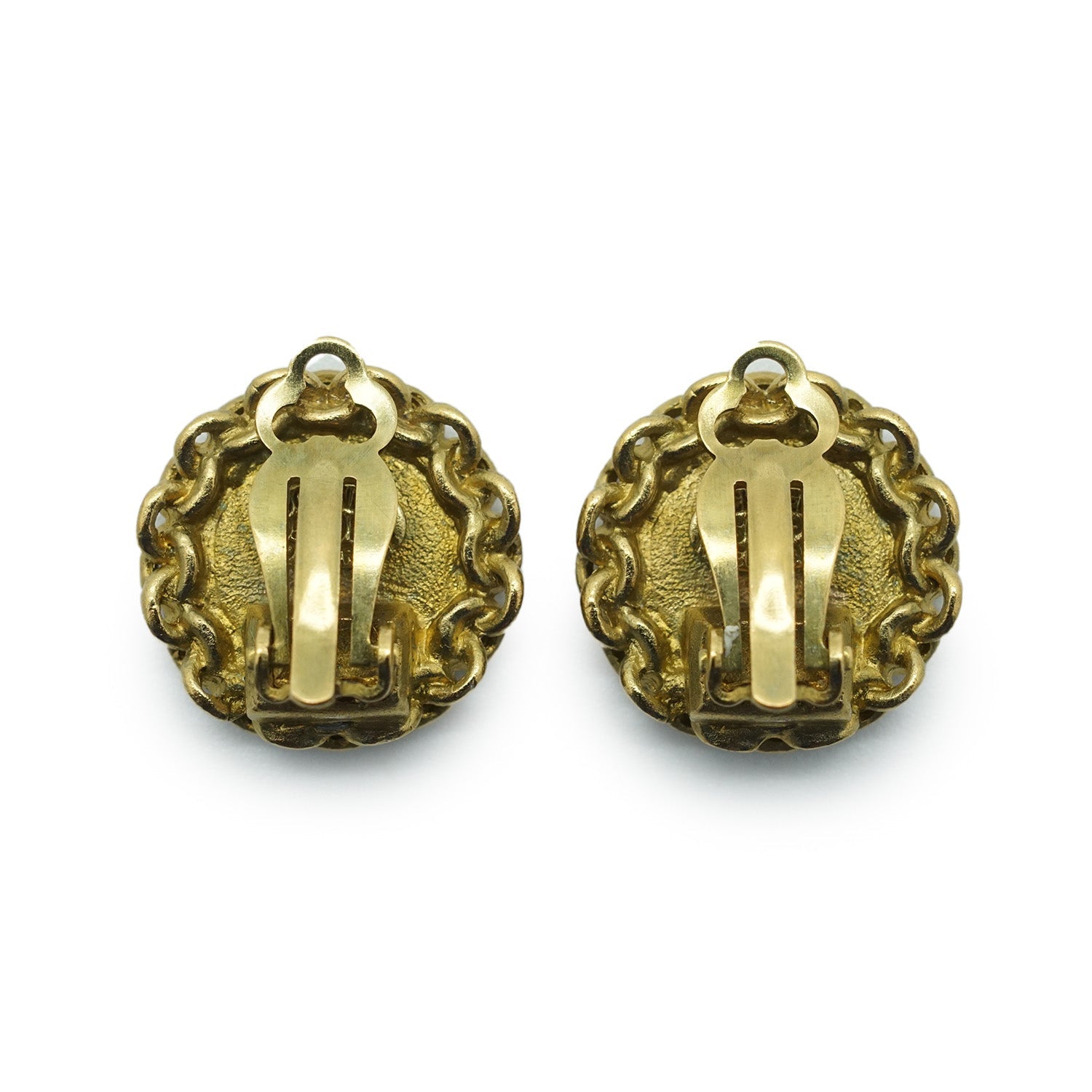 Chanel Coco Mark Chain Round Clip Earrings GP