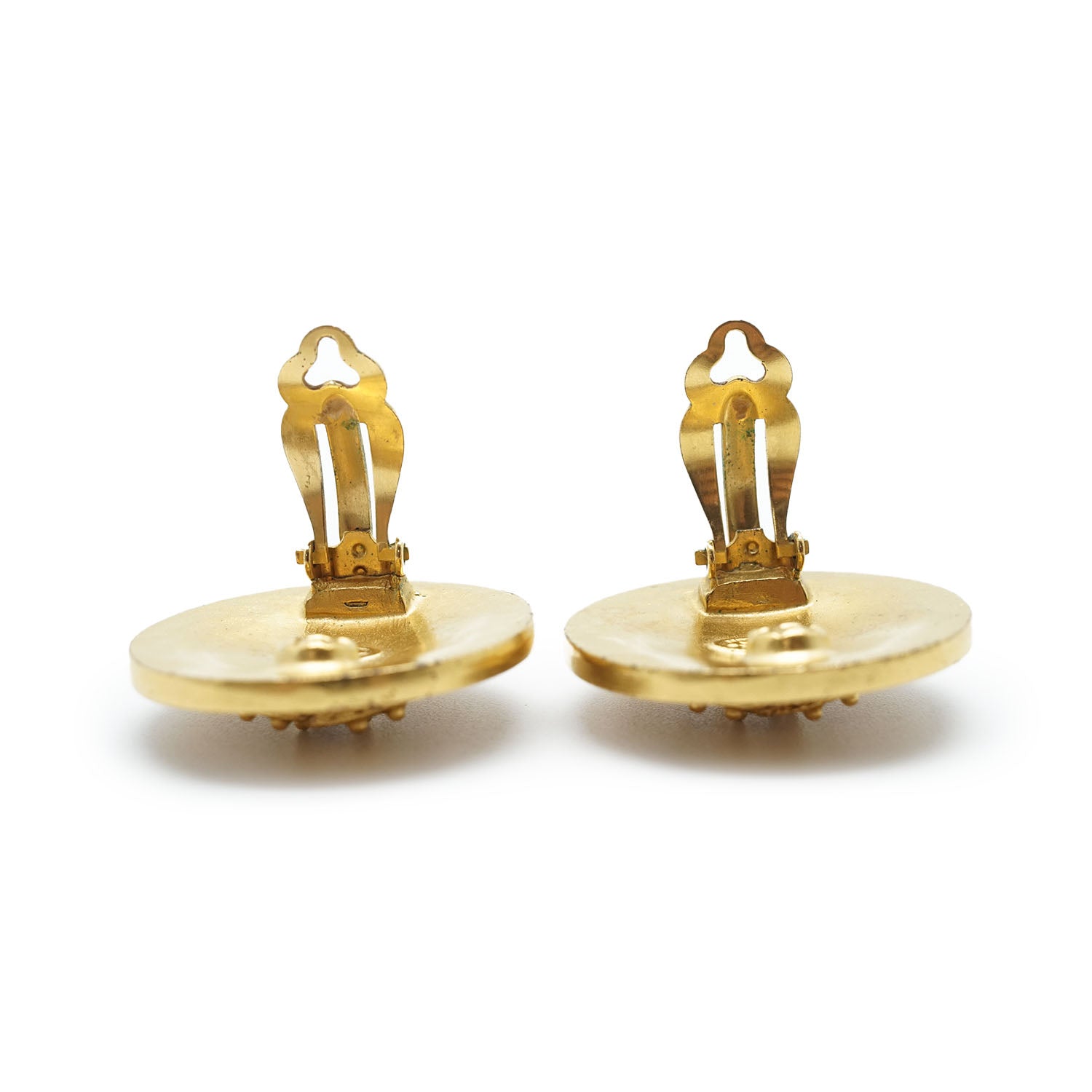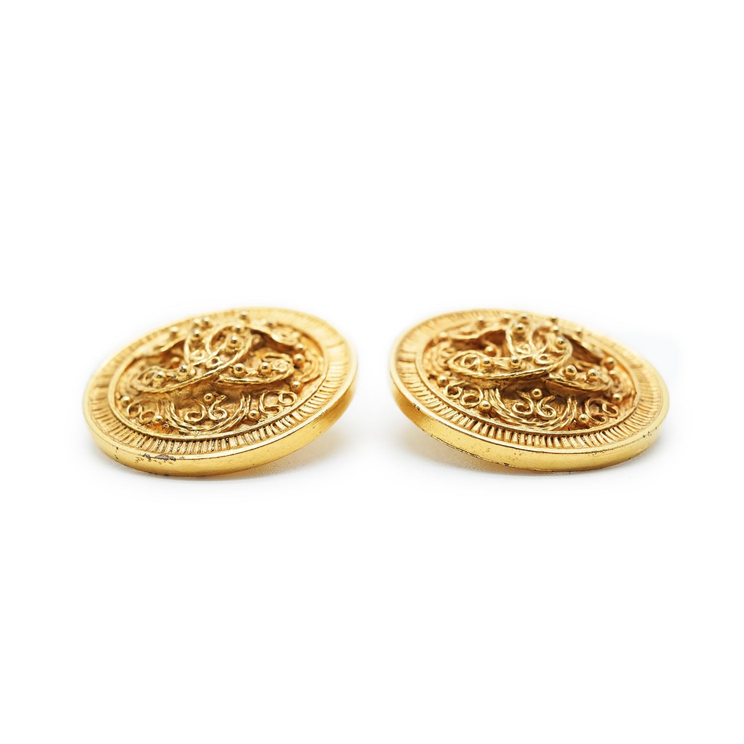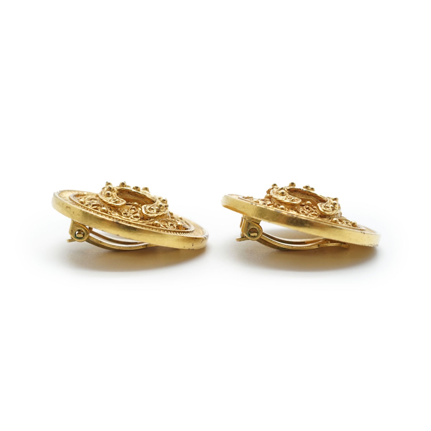 Chanel Coco Mark Filigree Round Clip Earrings GP
