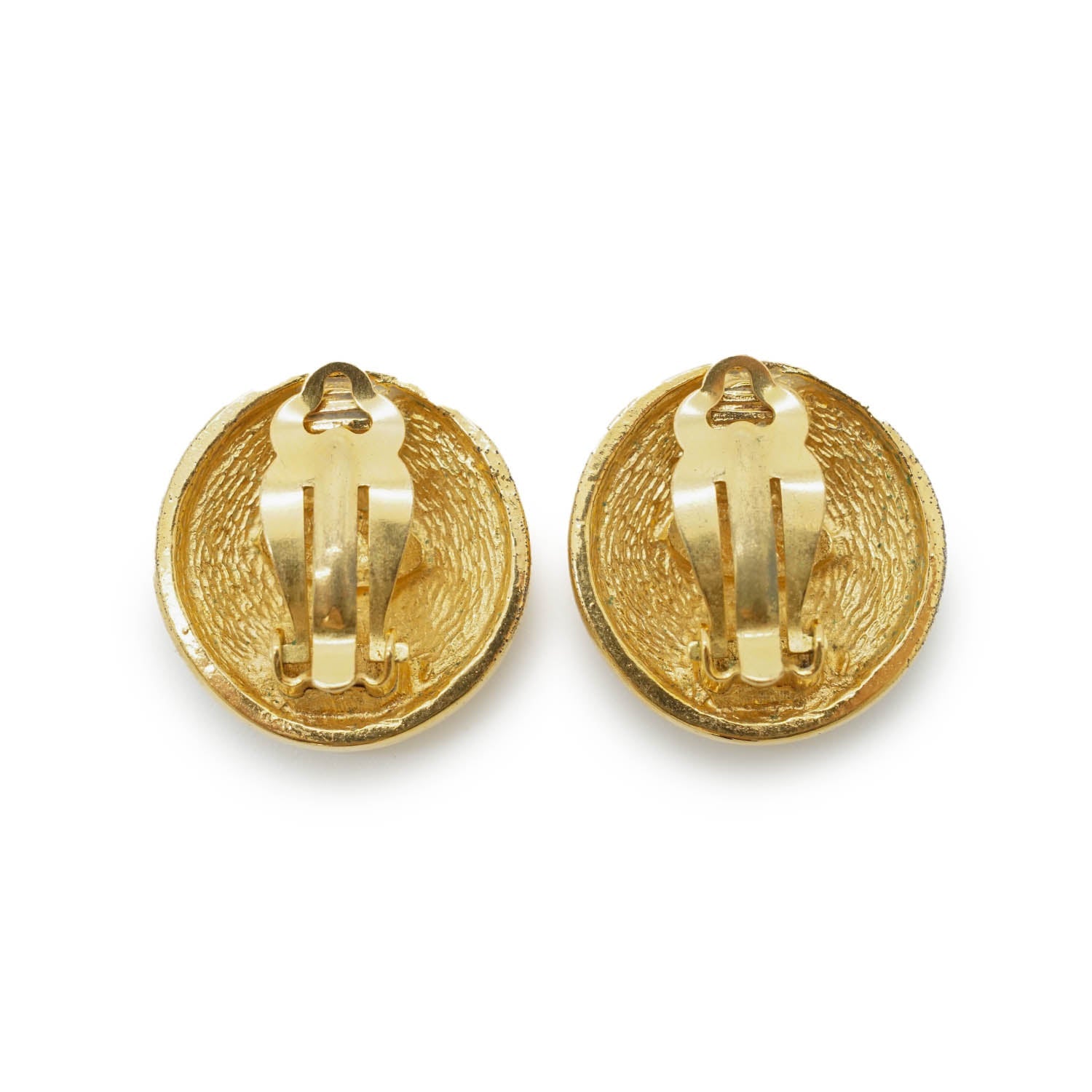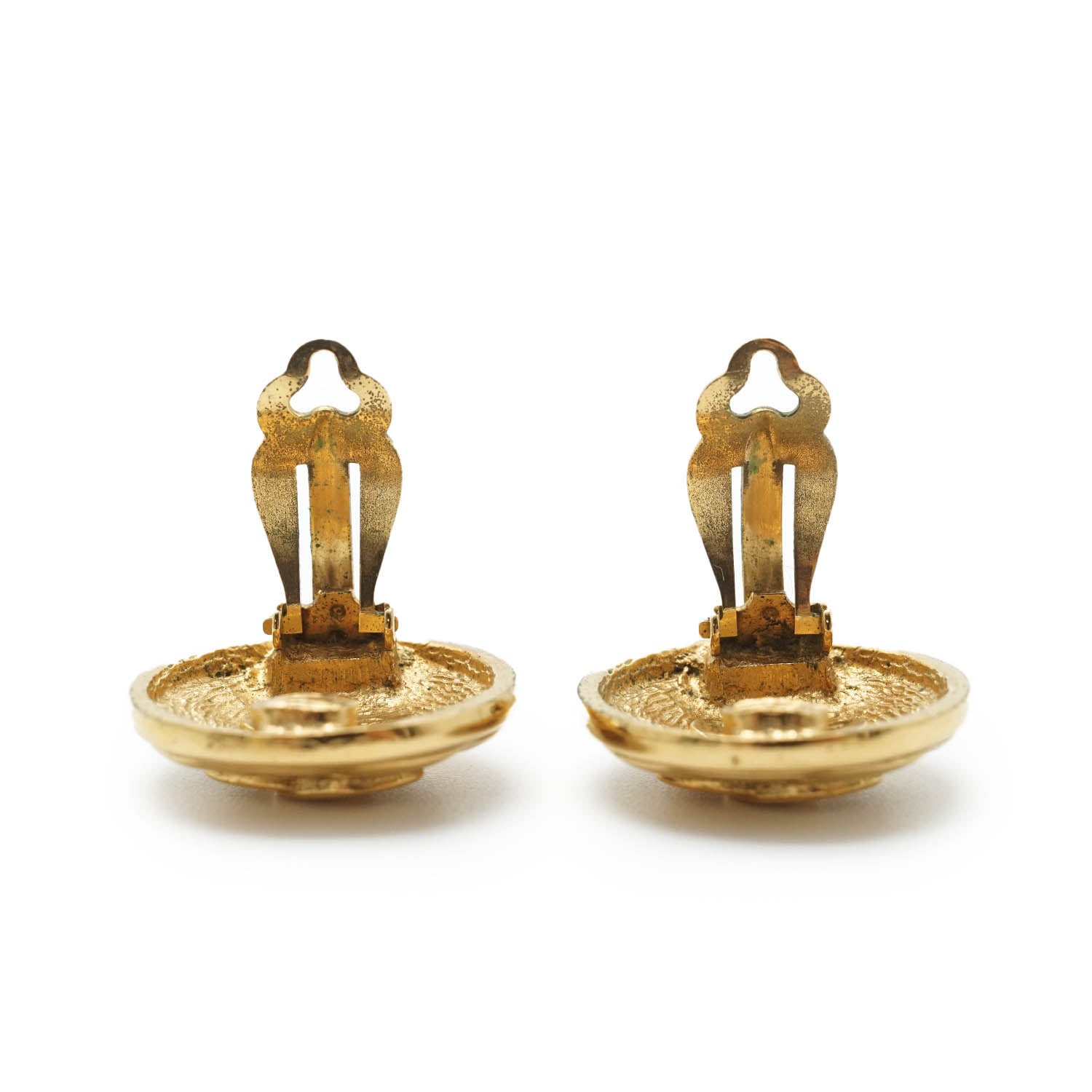 Chanel Coco Mark Matelasse Round Clip Earrings GP
