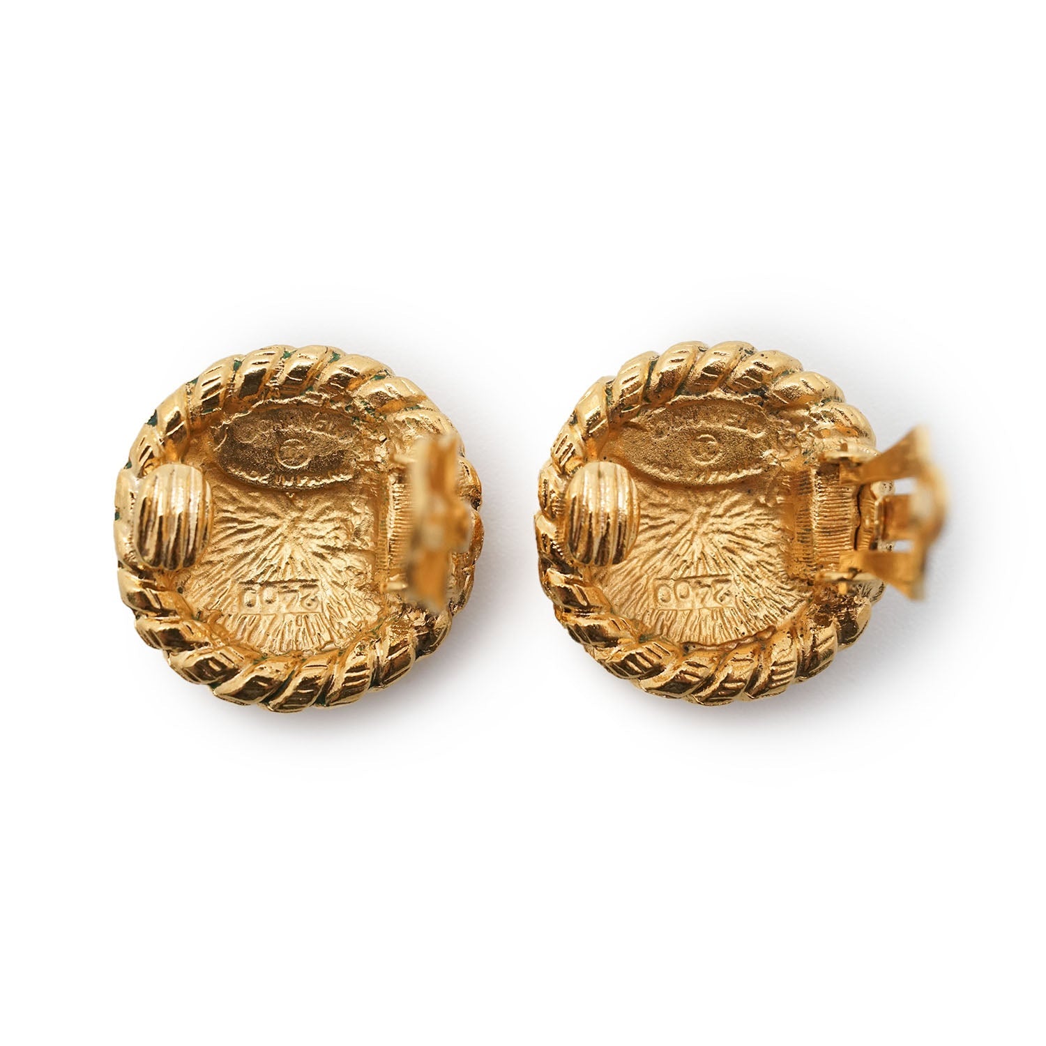 Coco Mark Round Clip Earrings GP Gold BrassDepth: 0.5cmHeight: 2cmWidth: 2cmDiscoloration: Slight tarnishWorn: Minor signs of wear on the back of both earringsComments: The back logo plates are slightly fadingSerial code: 2400SKU: 7060159