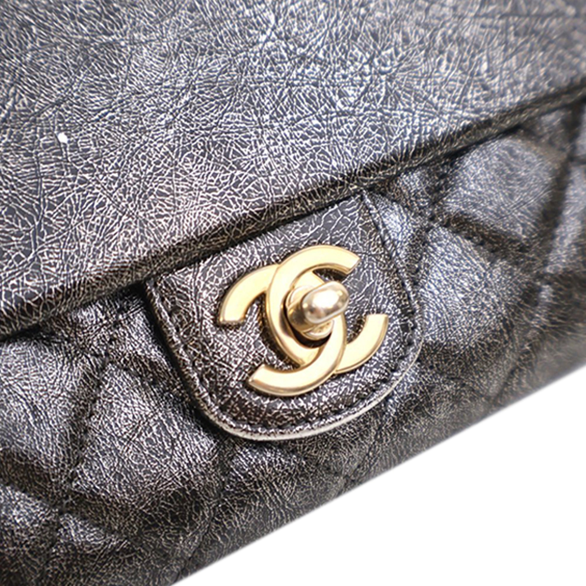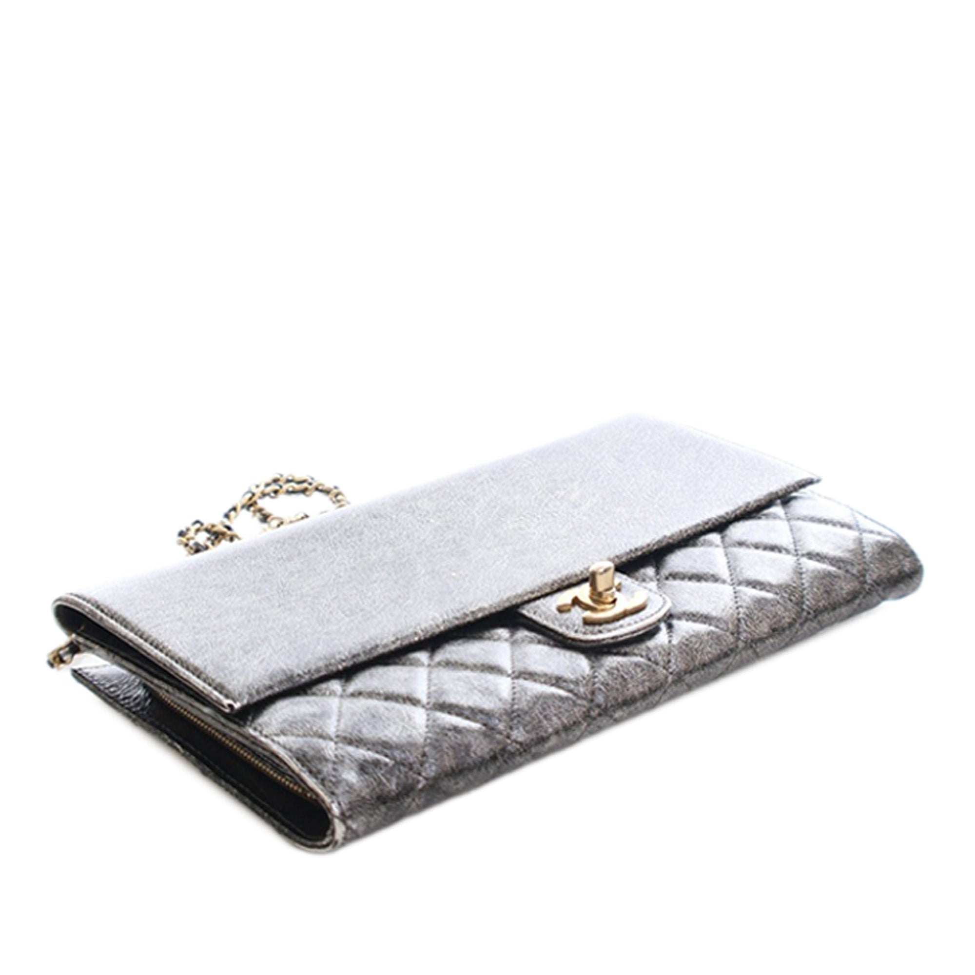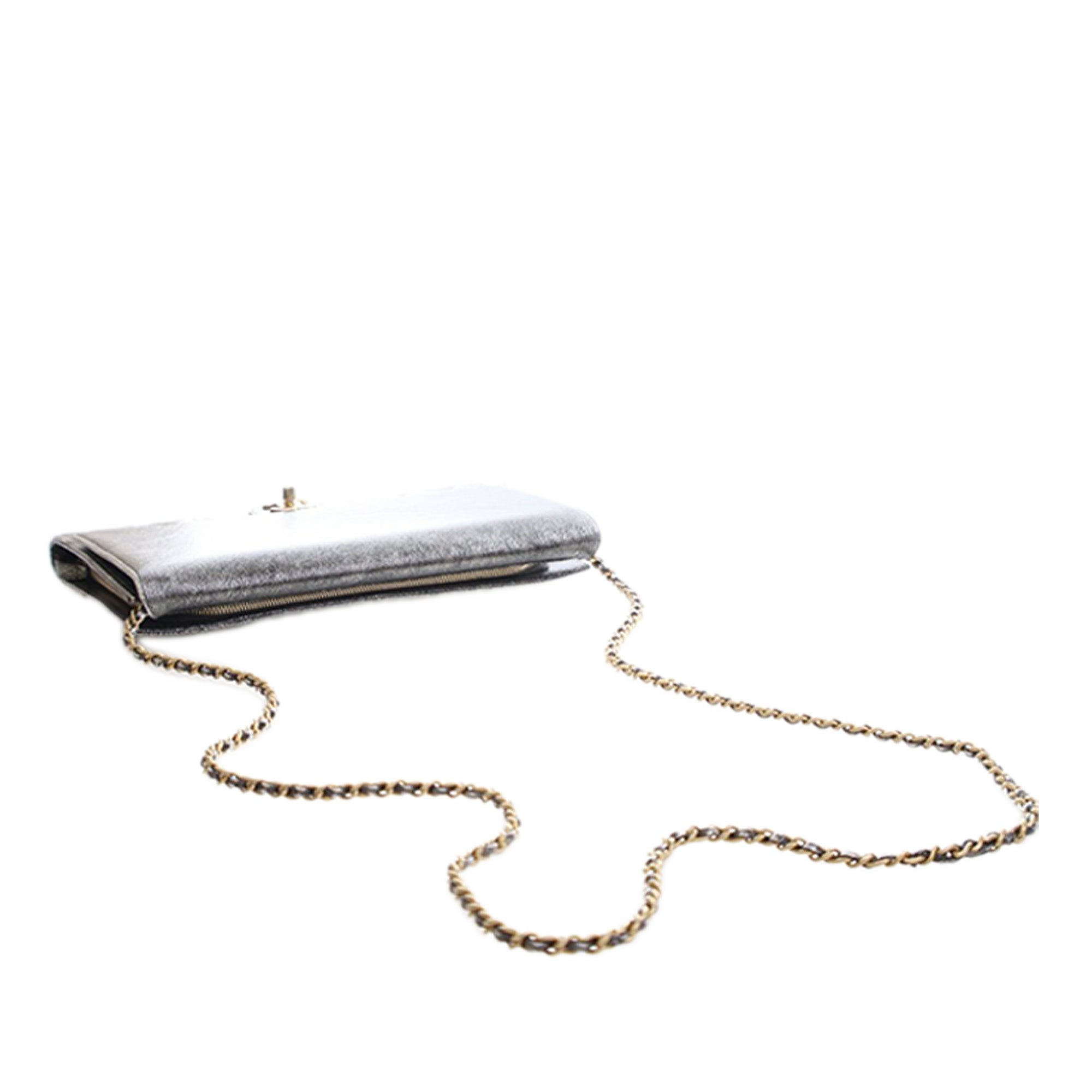 Chanel Cracked Metallic Calfskin Zip Away Chain Clutch