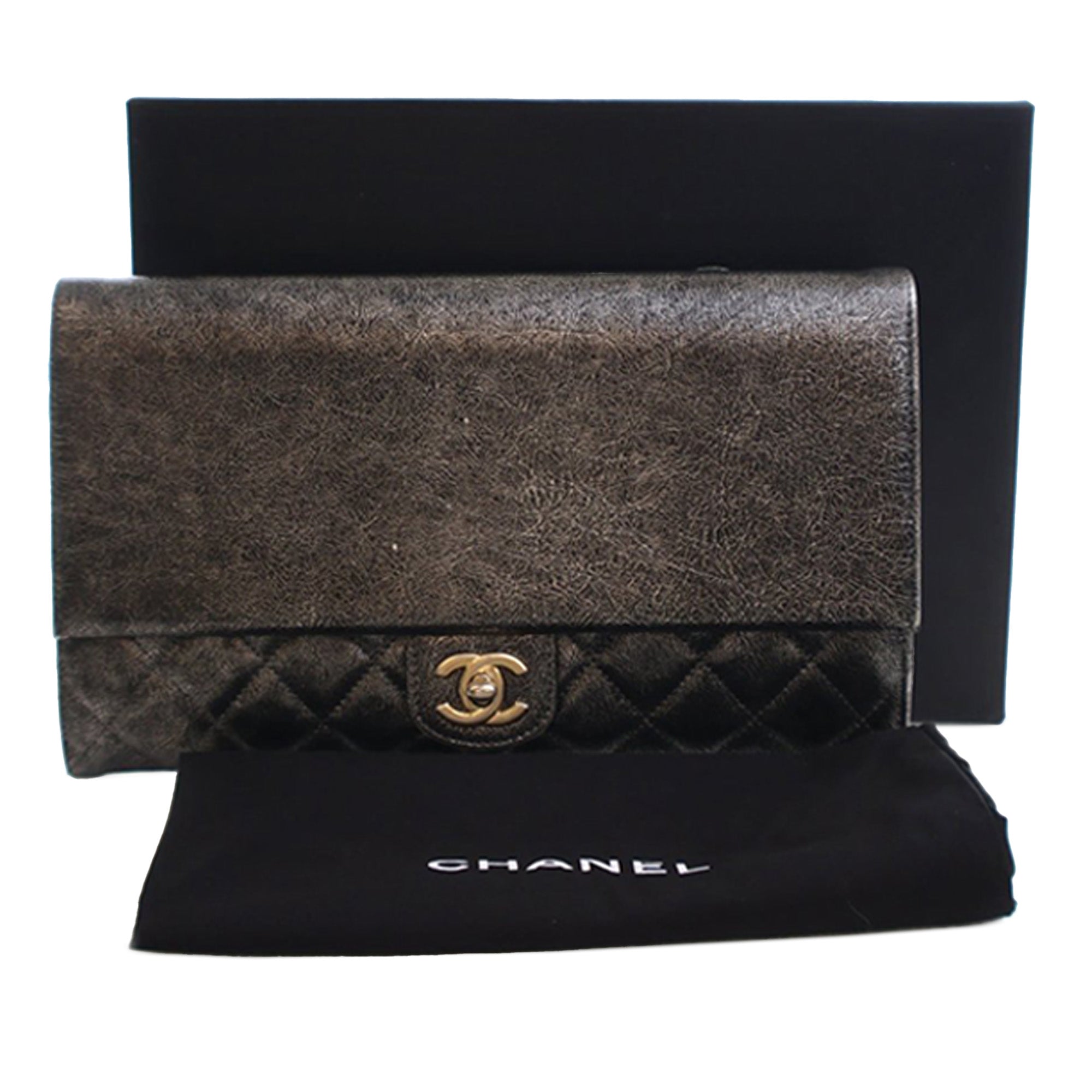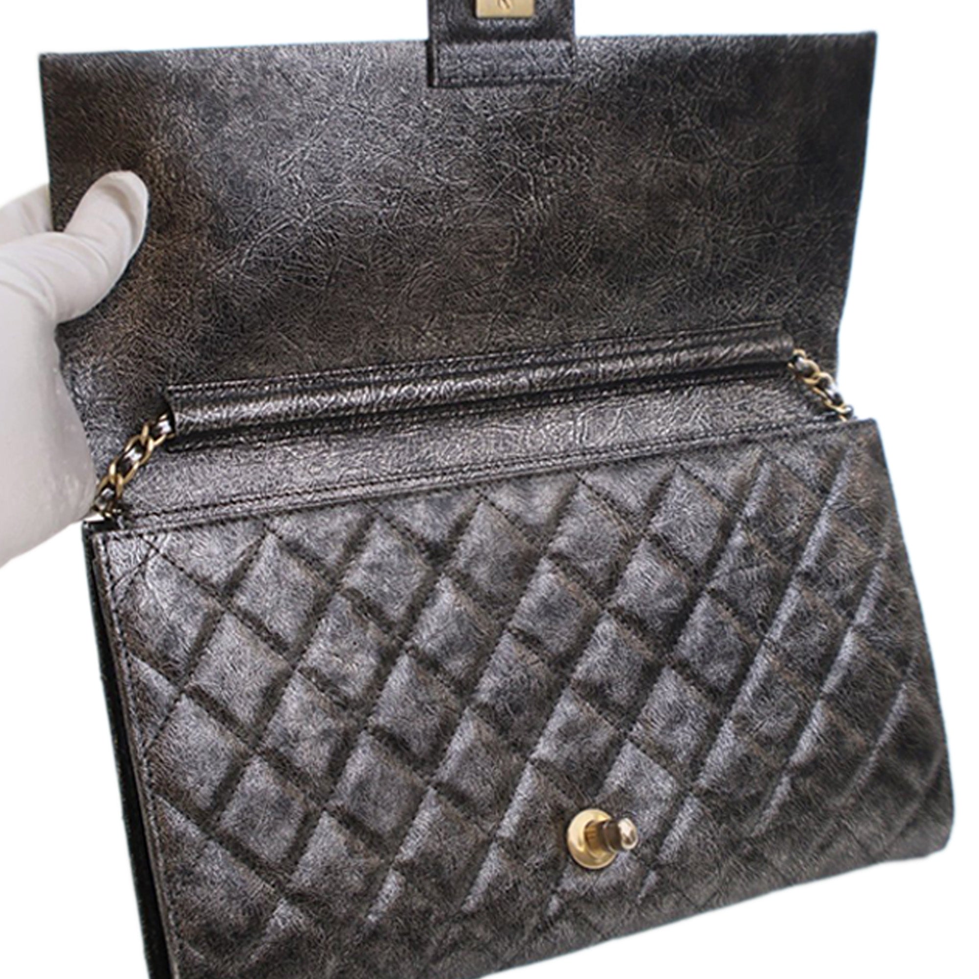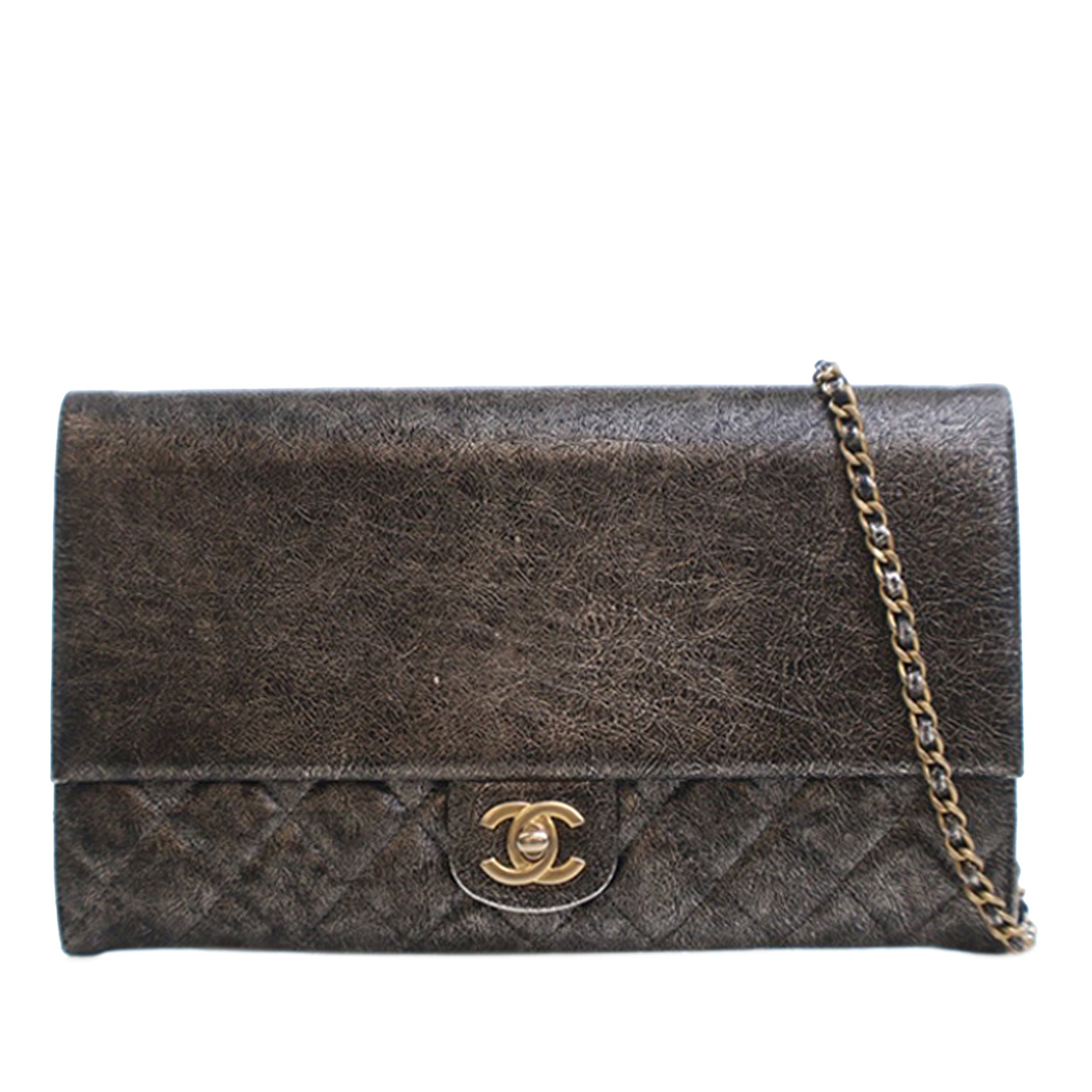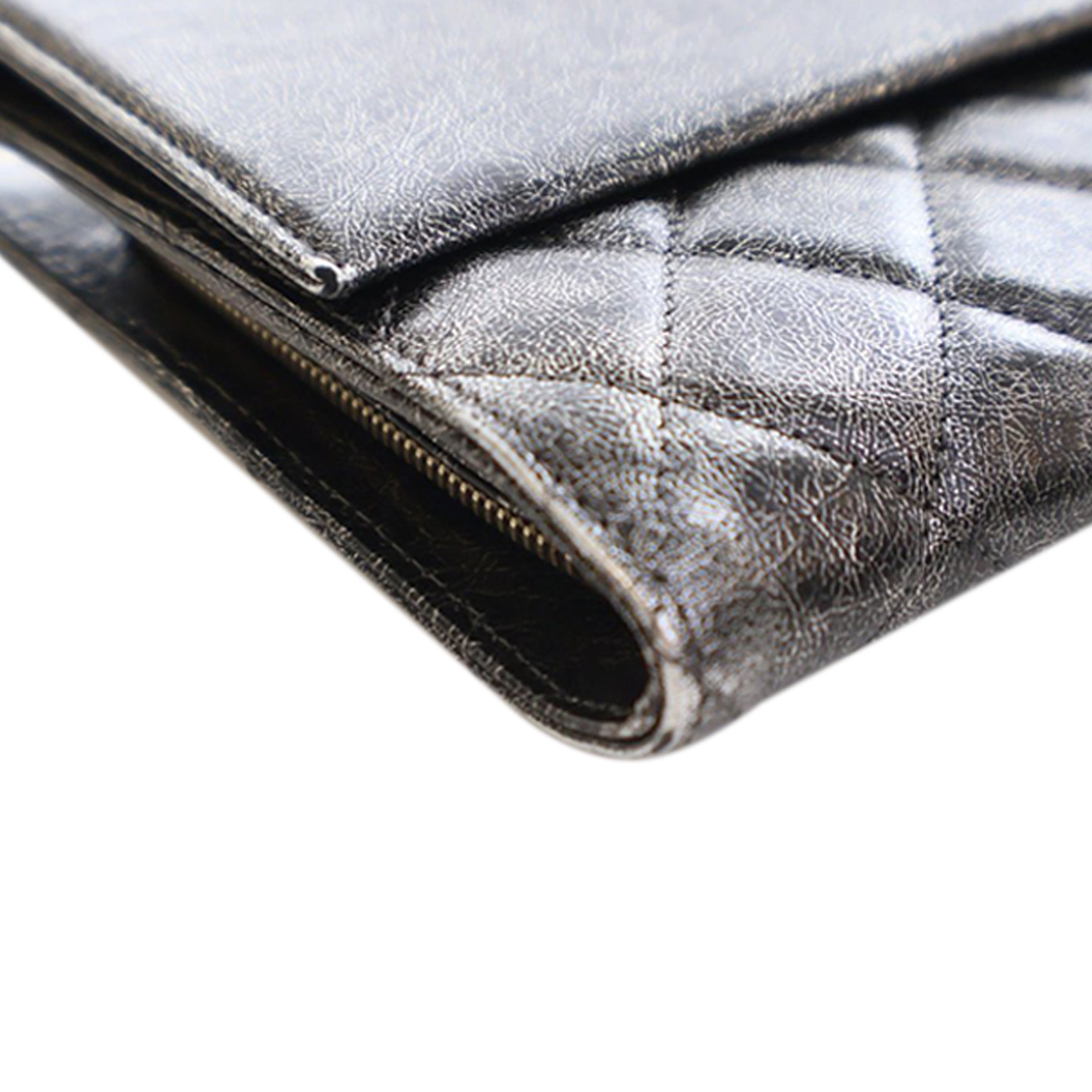 Chanel Cracked Metallic Calfskin Zip Away Chain Clutch