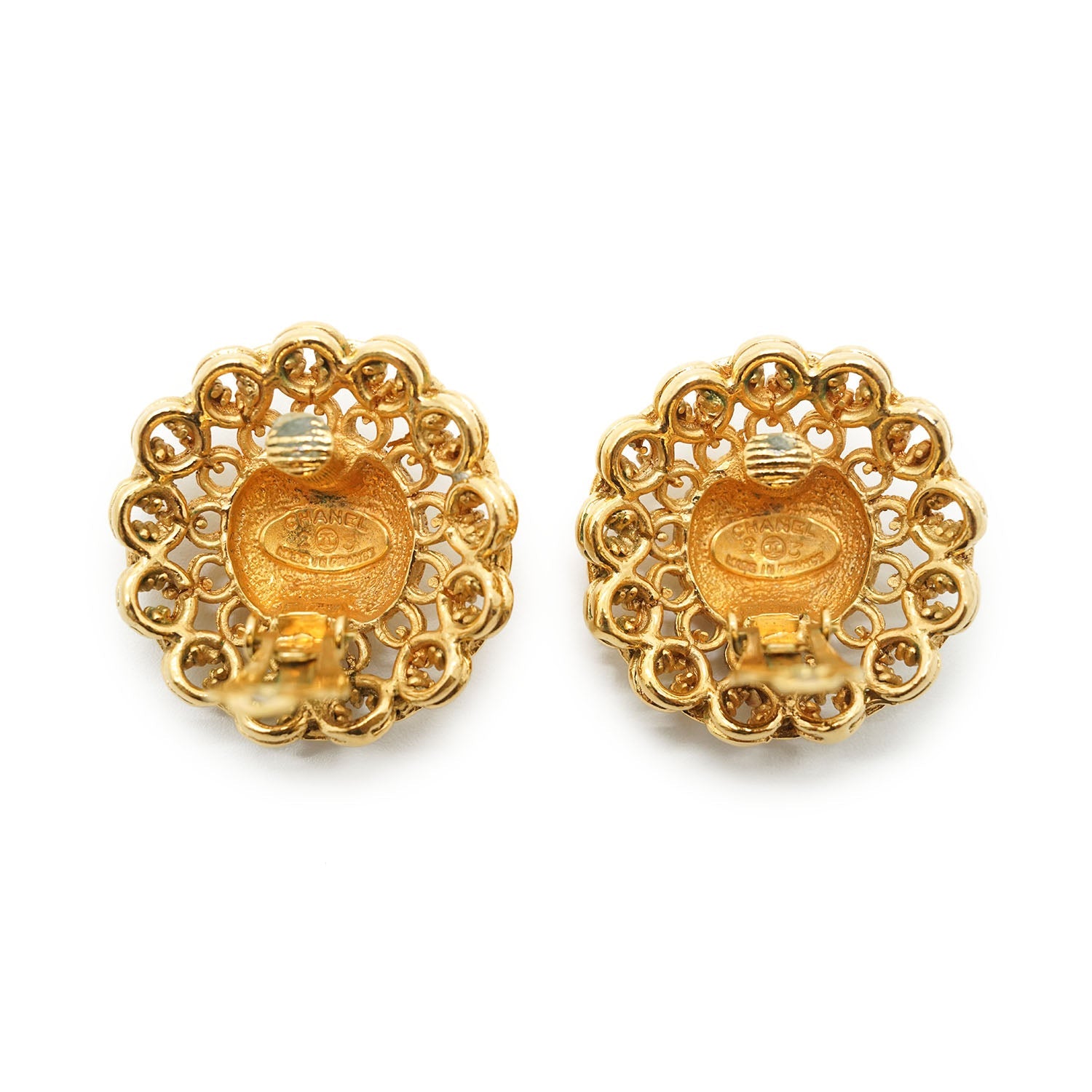 Chanel Cut-out Chain Detail Domed Round Clip-On Earrings GP