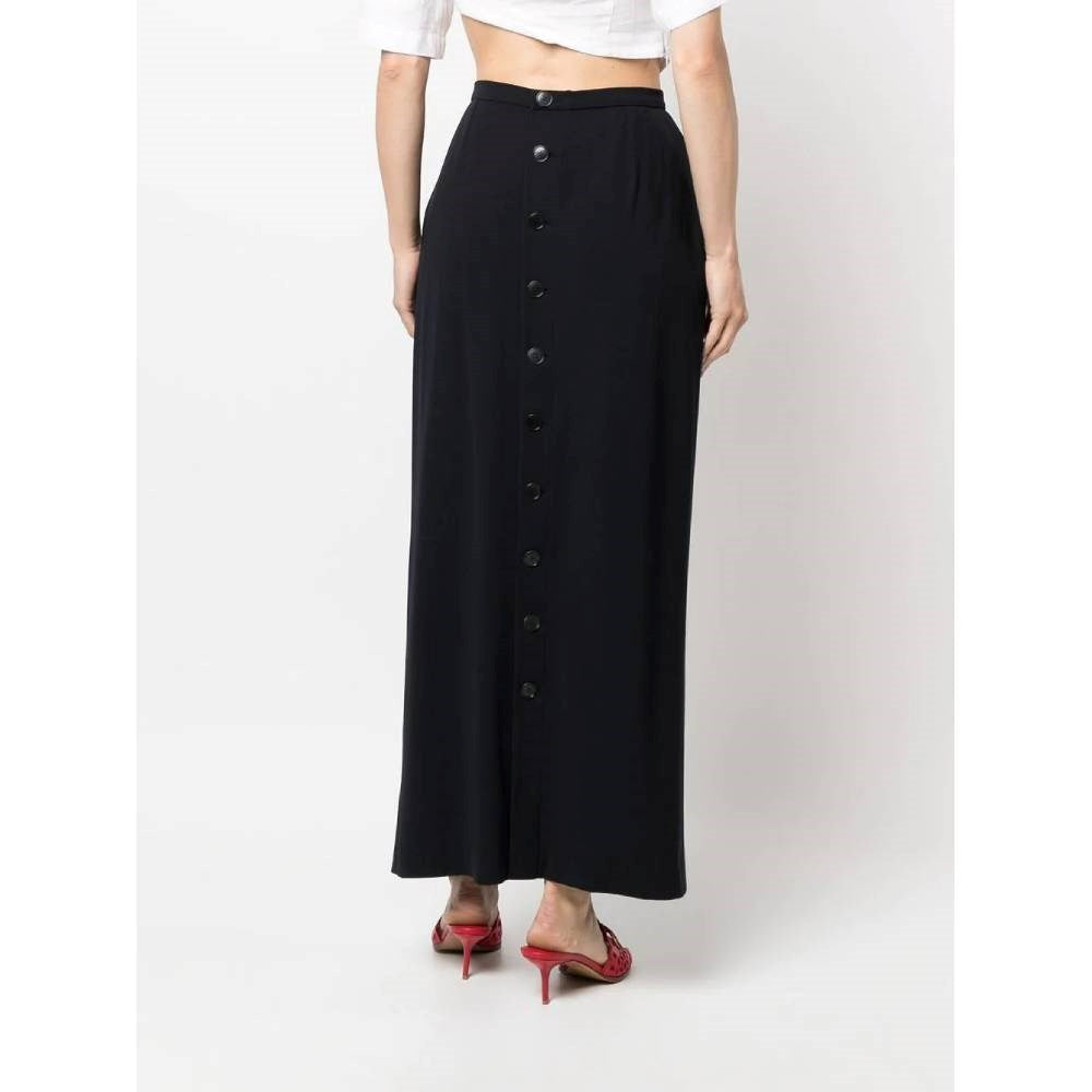 Chanel dark blue wool 2000s long skirt with side welt pockets and rear buttons fastening. - Year: 1998