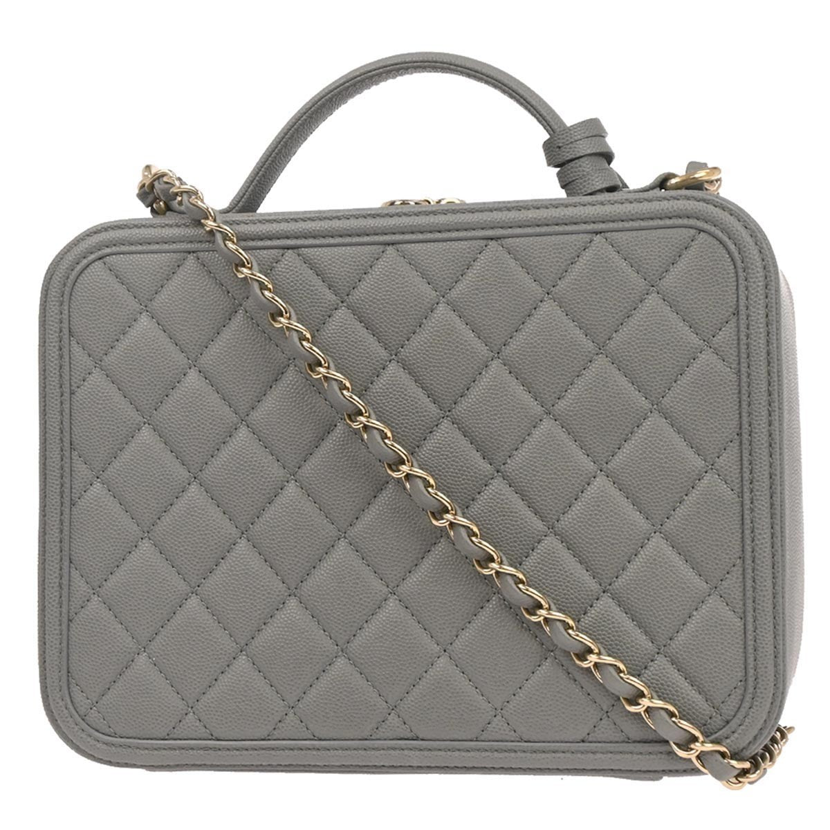 Chanel Filigree Vanity Case Quilted Caviar