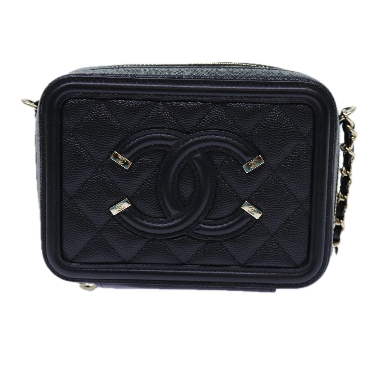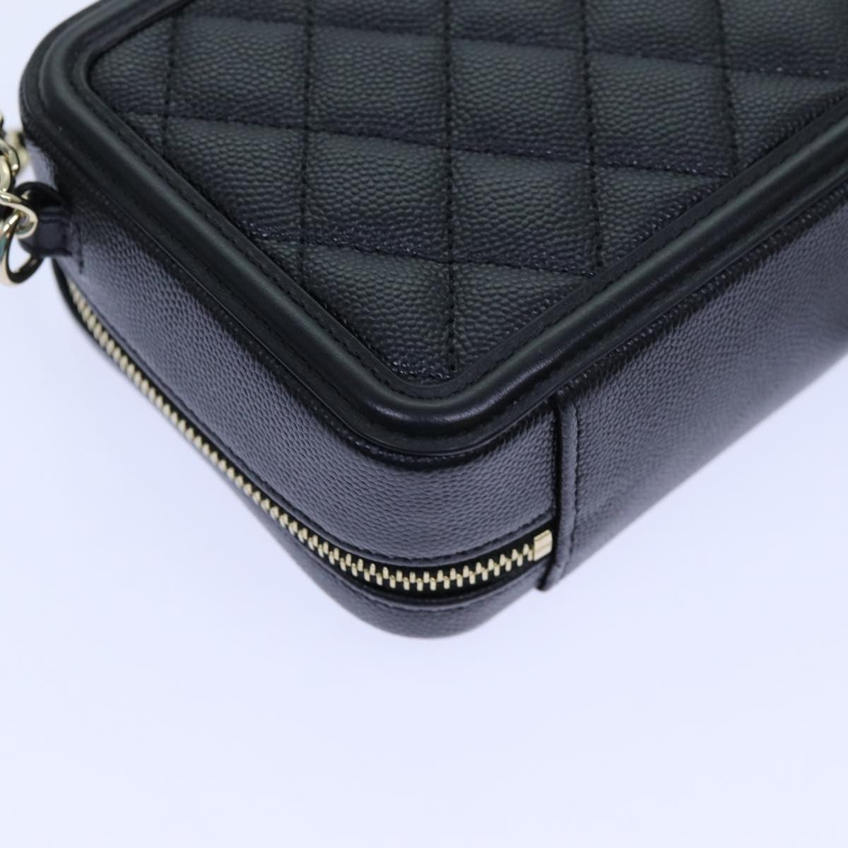 Chanel Filigree Vanity Clutch with Chain Quilted Caviar