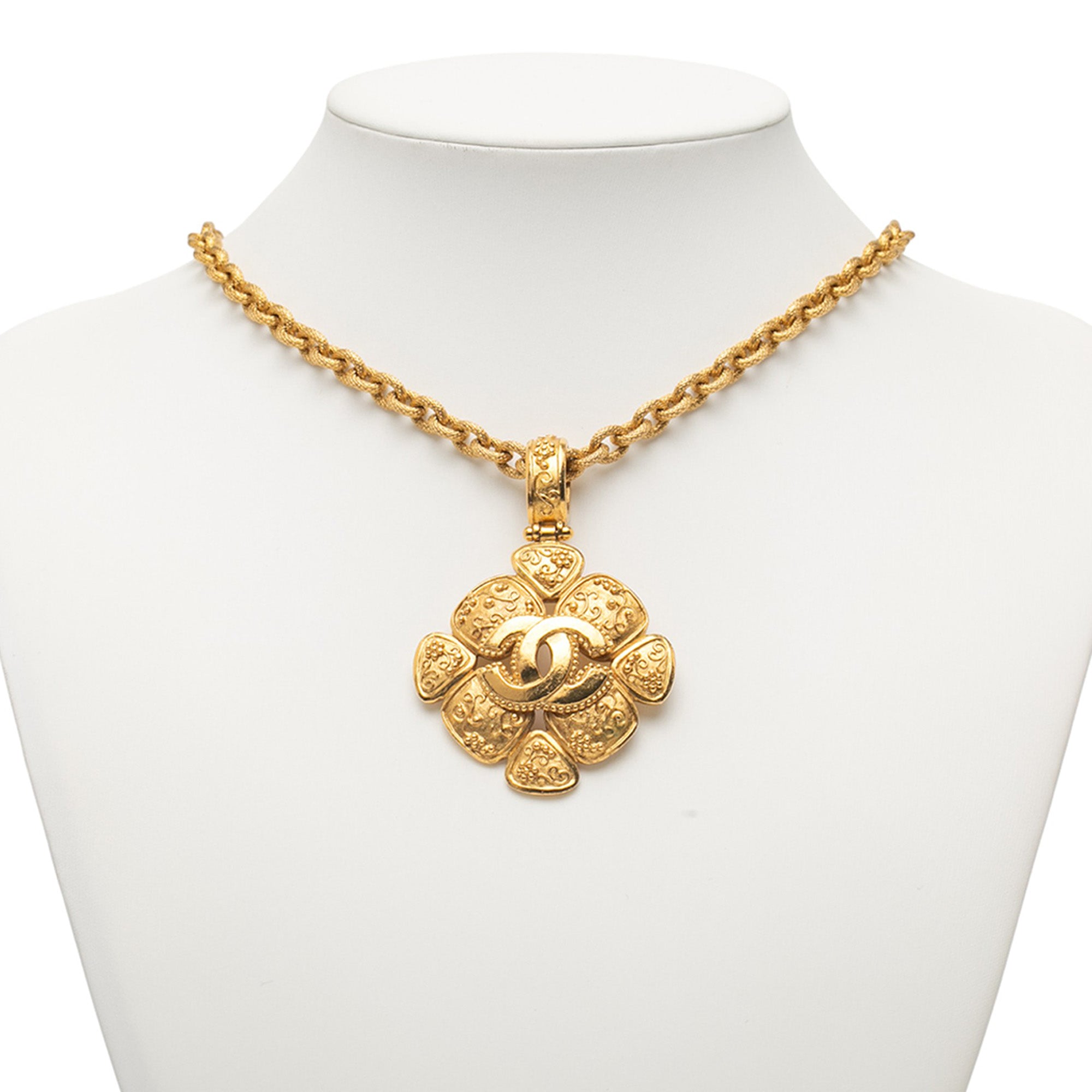 Chanel Gold Plated CC Arabesque Clover Pendant Necklace