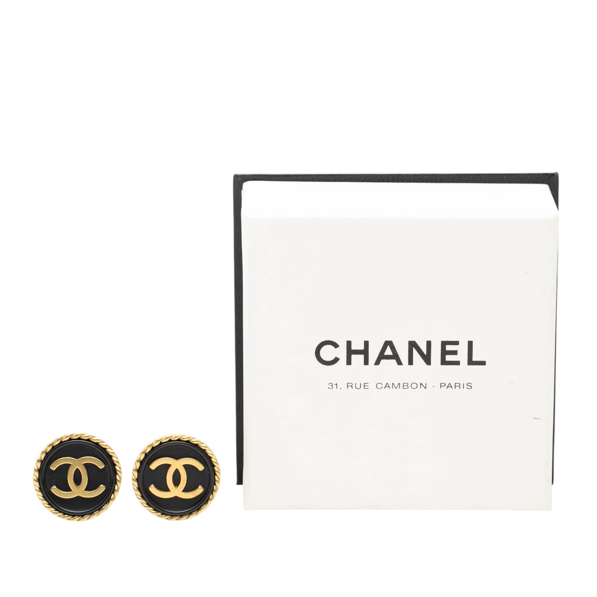Chanel Gold Plated CC Resin Round Clip On Earrings