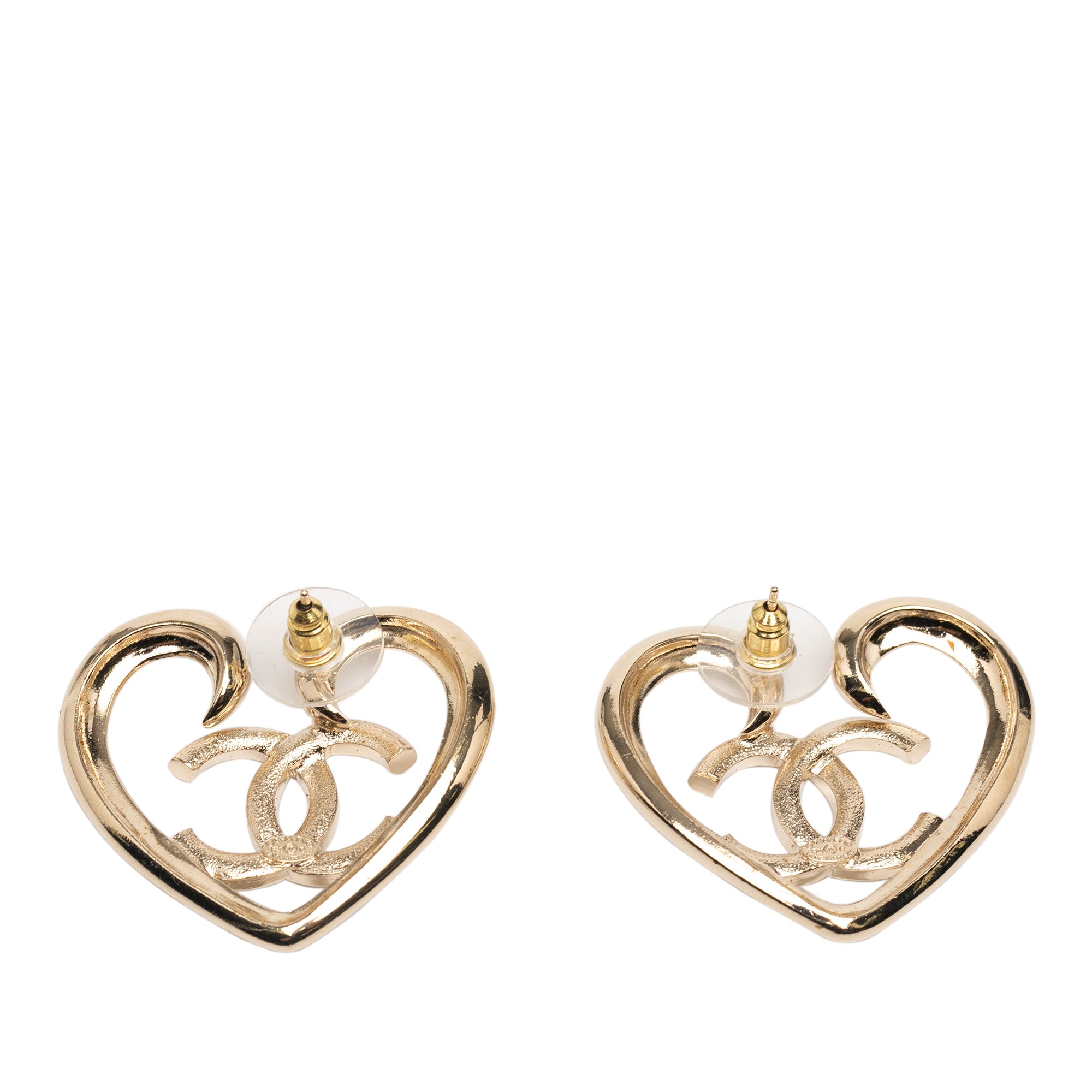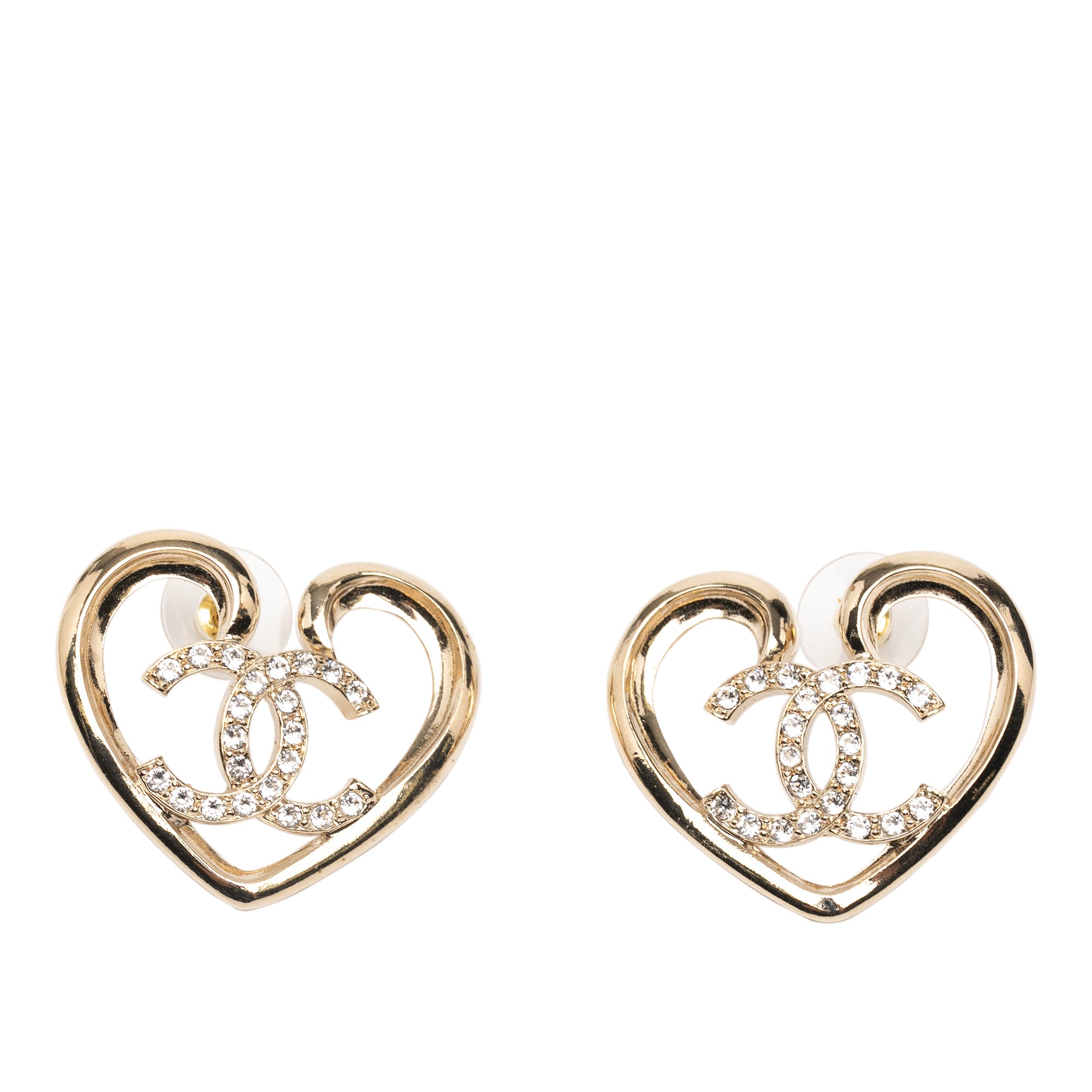 Chanel Gold Plated CC Rhinestone Heart Push Back Earrings