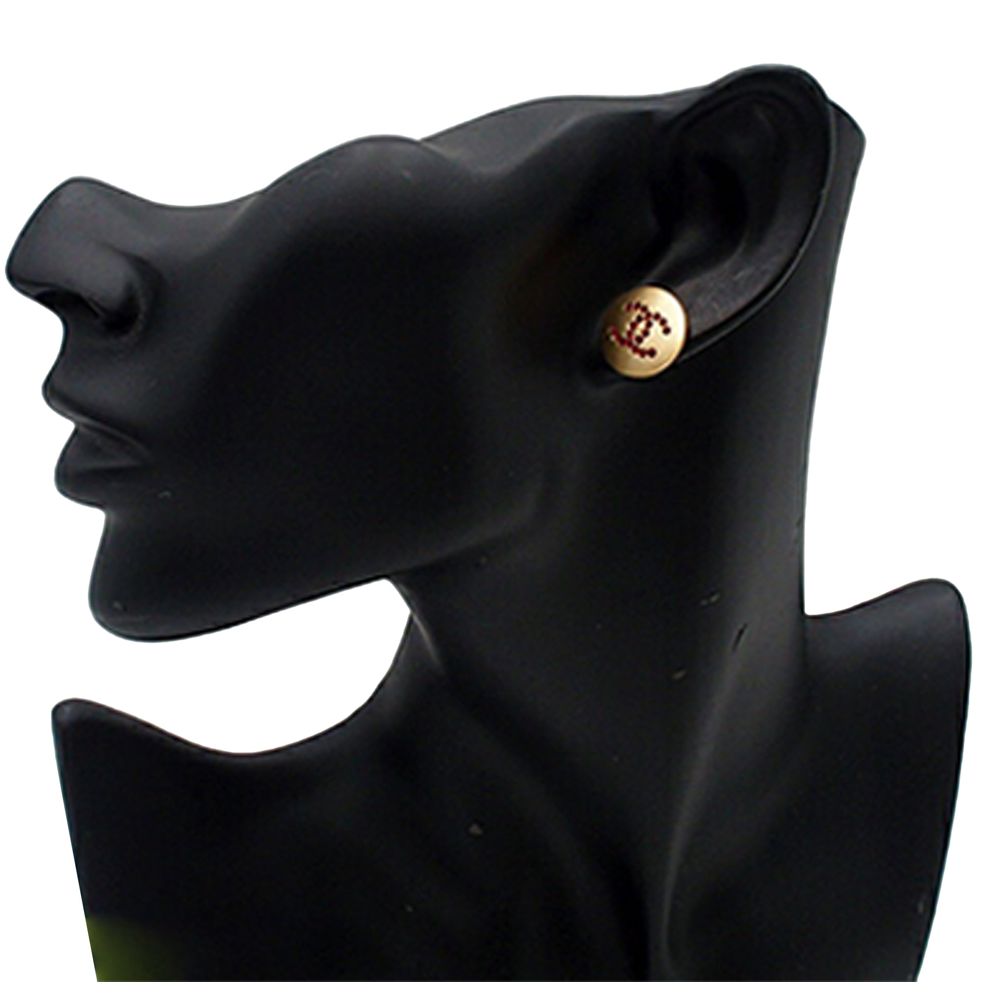 Chanel Gold Plated CC Rhinestone Round Push Back Earrings