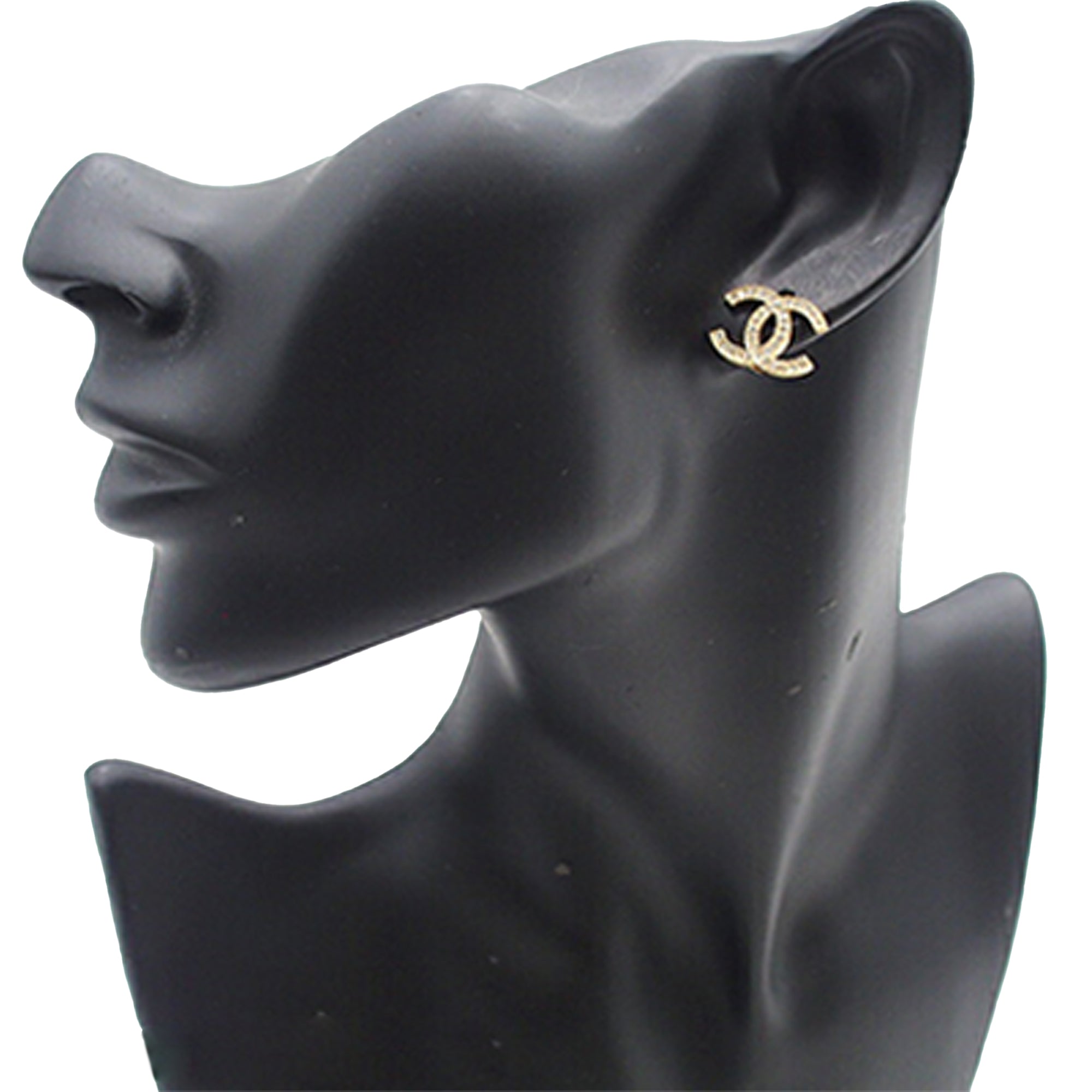 Chanel Gold Plated CC Rhinestones Push Back Earrings