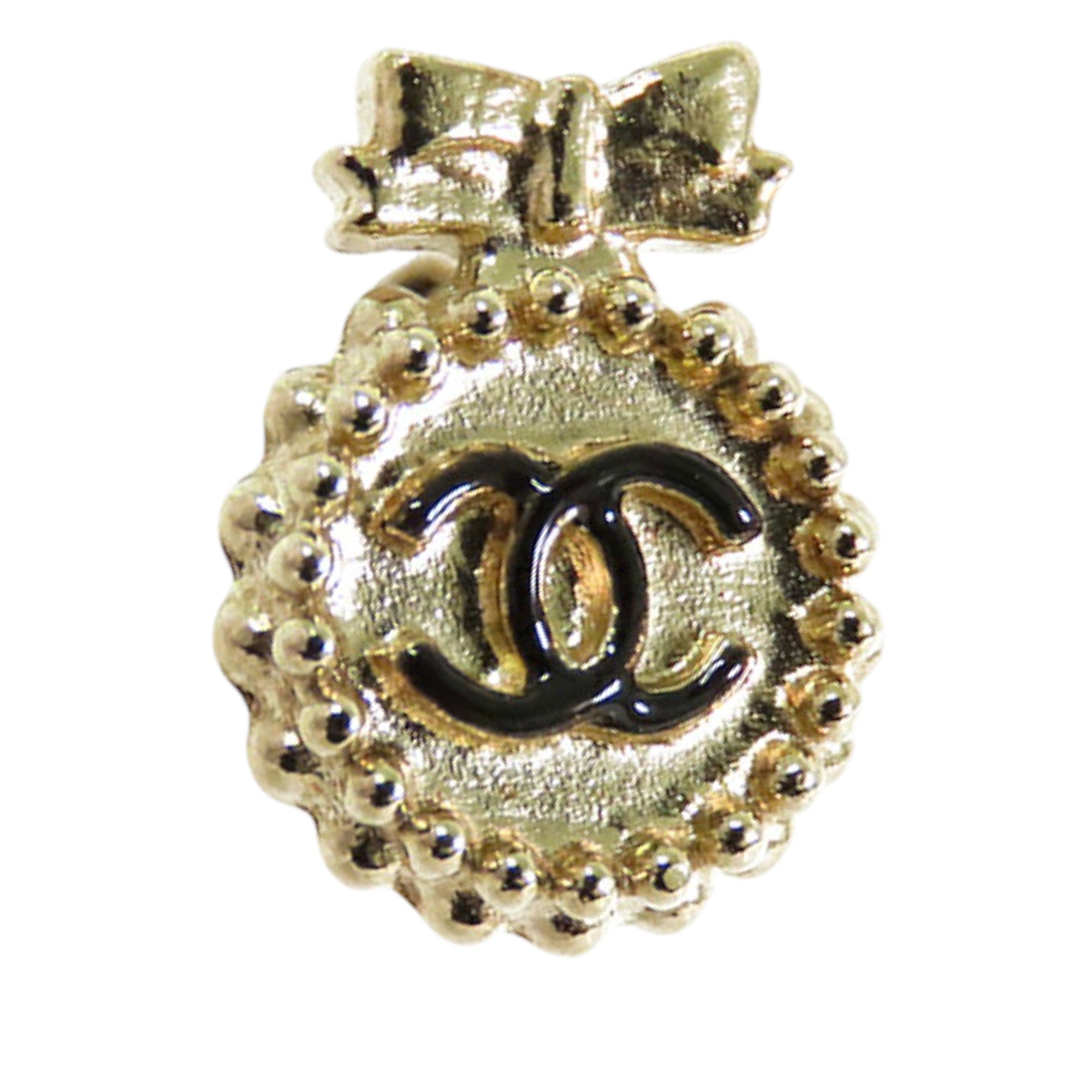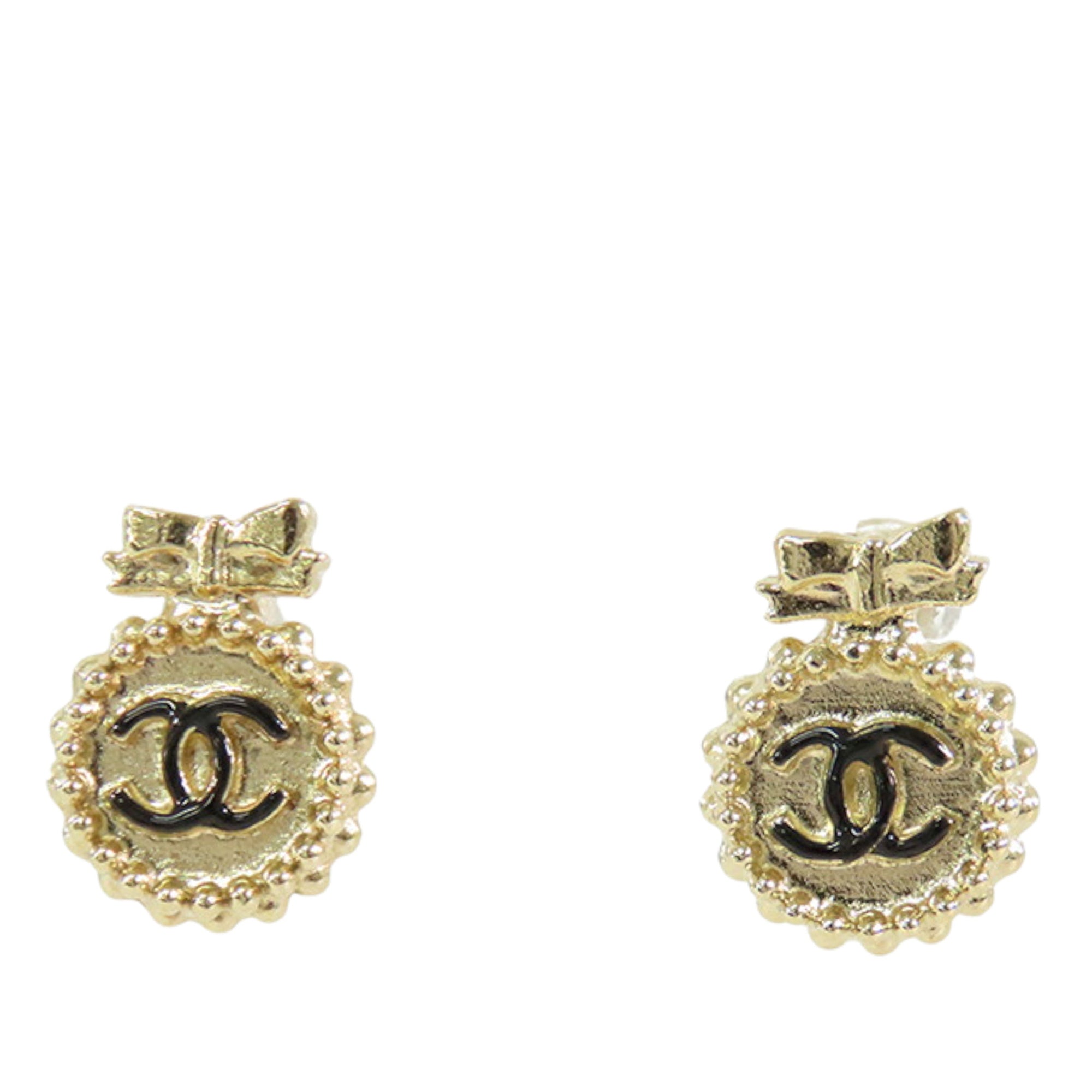 Chanel Gold Plated CC Ribbon Drop Bullet Backs Earrings