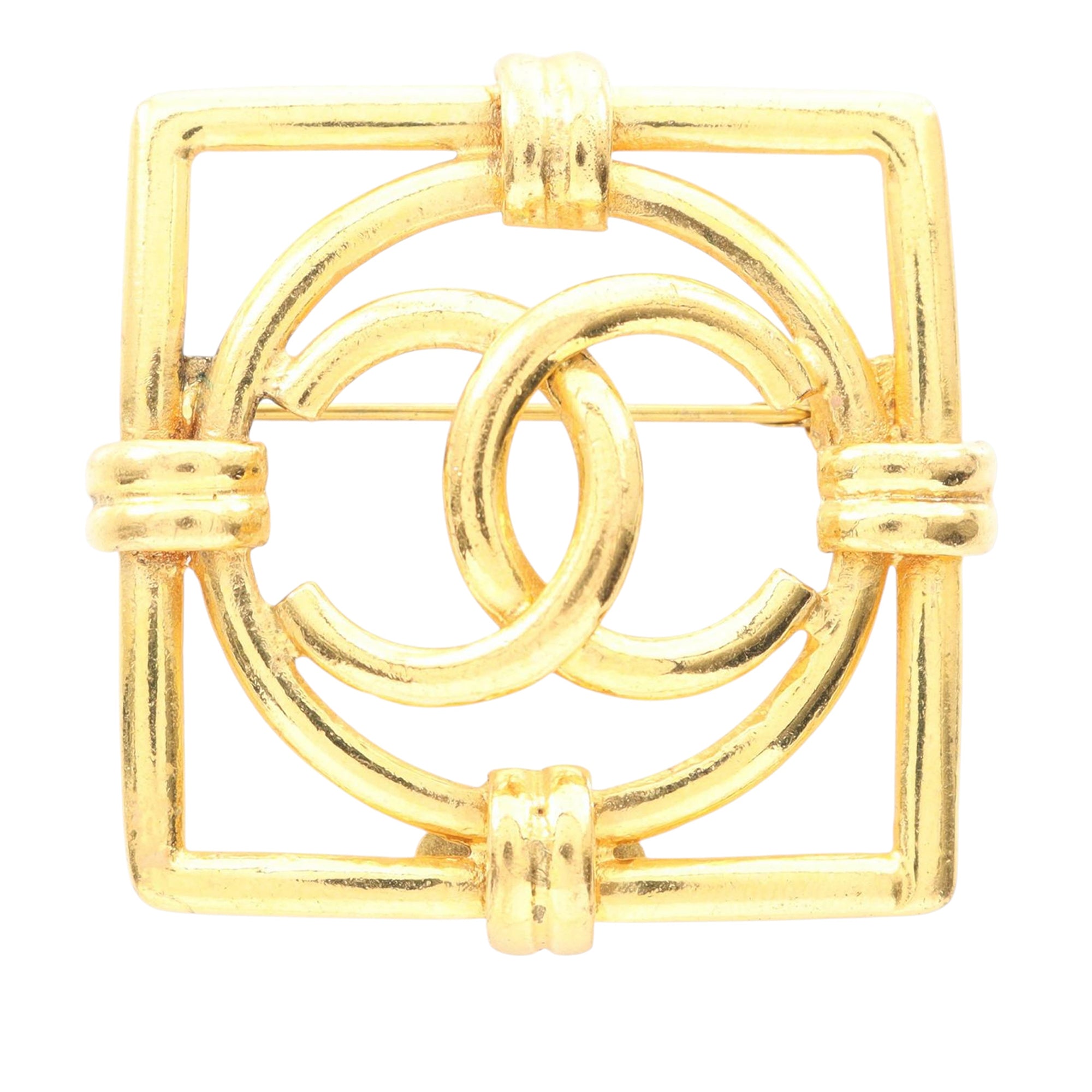 Chanel Gold Plated CC Square Brooch